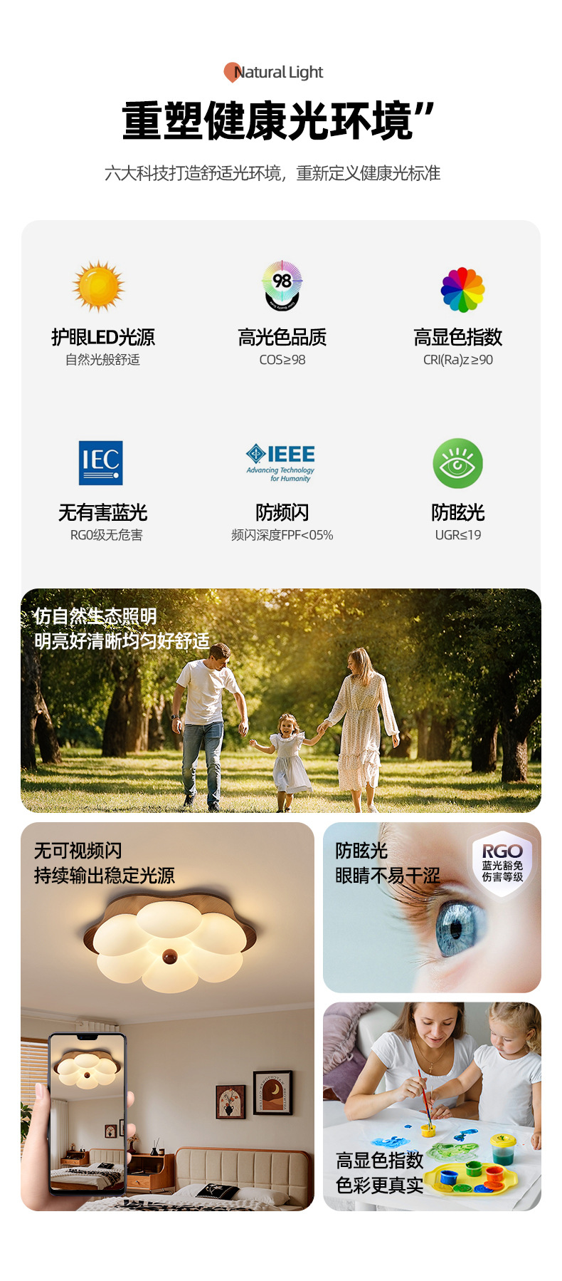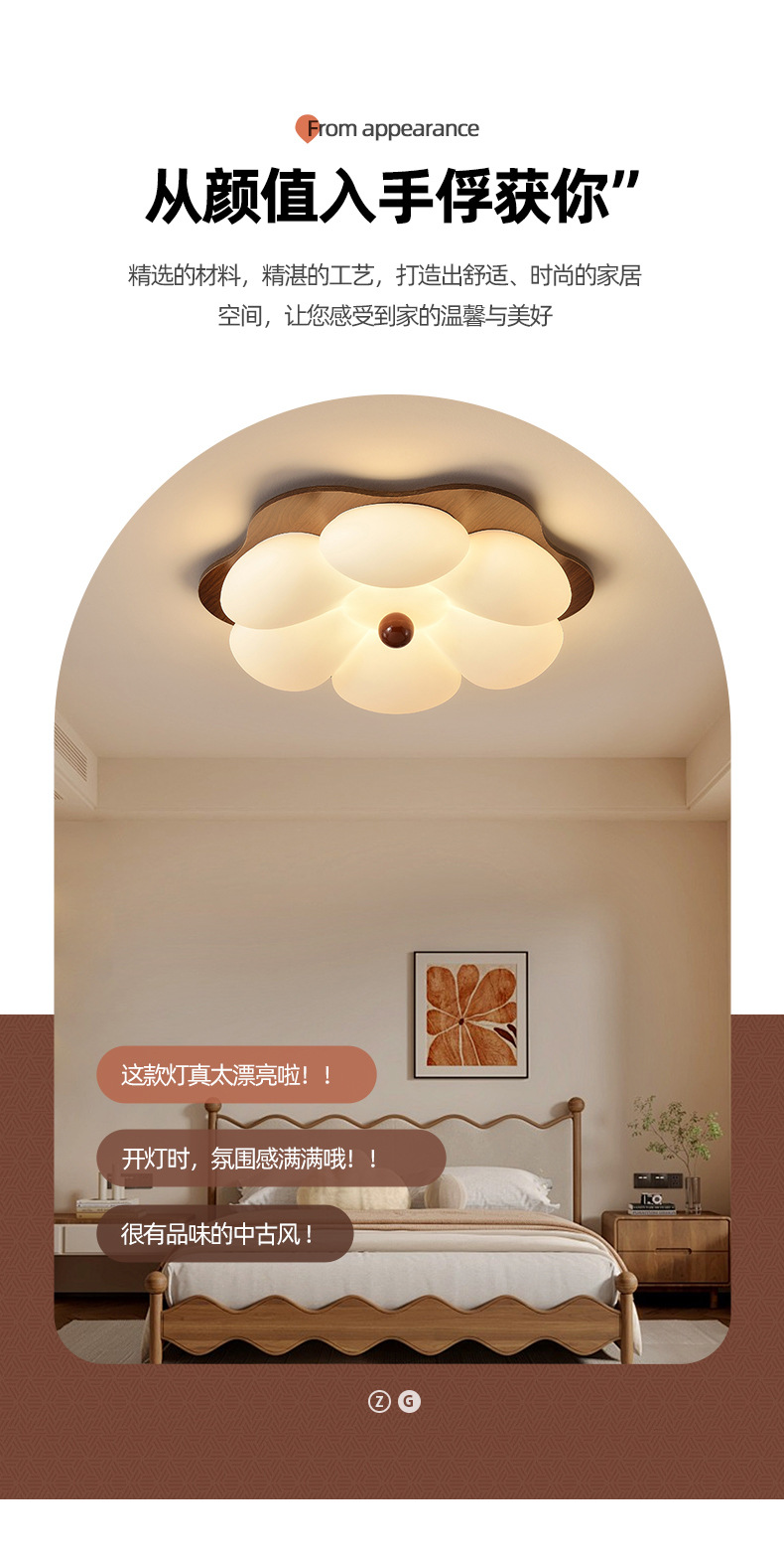 Lámpara de sala de estar de estilo antiguo, dormitorio italiano minimalista moderno, estilo crema, lámpara de techo de habitación cálida, lámpara de protección ocular de espectro completo