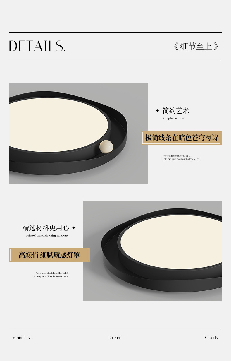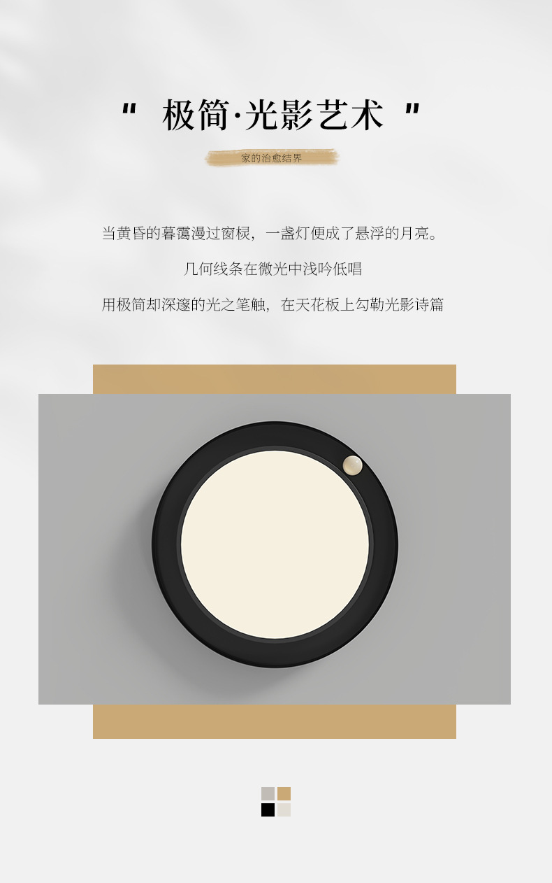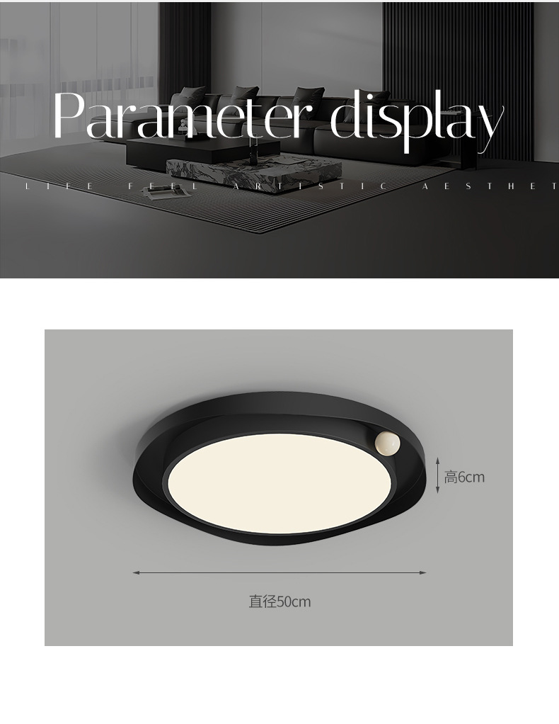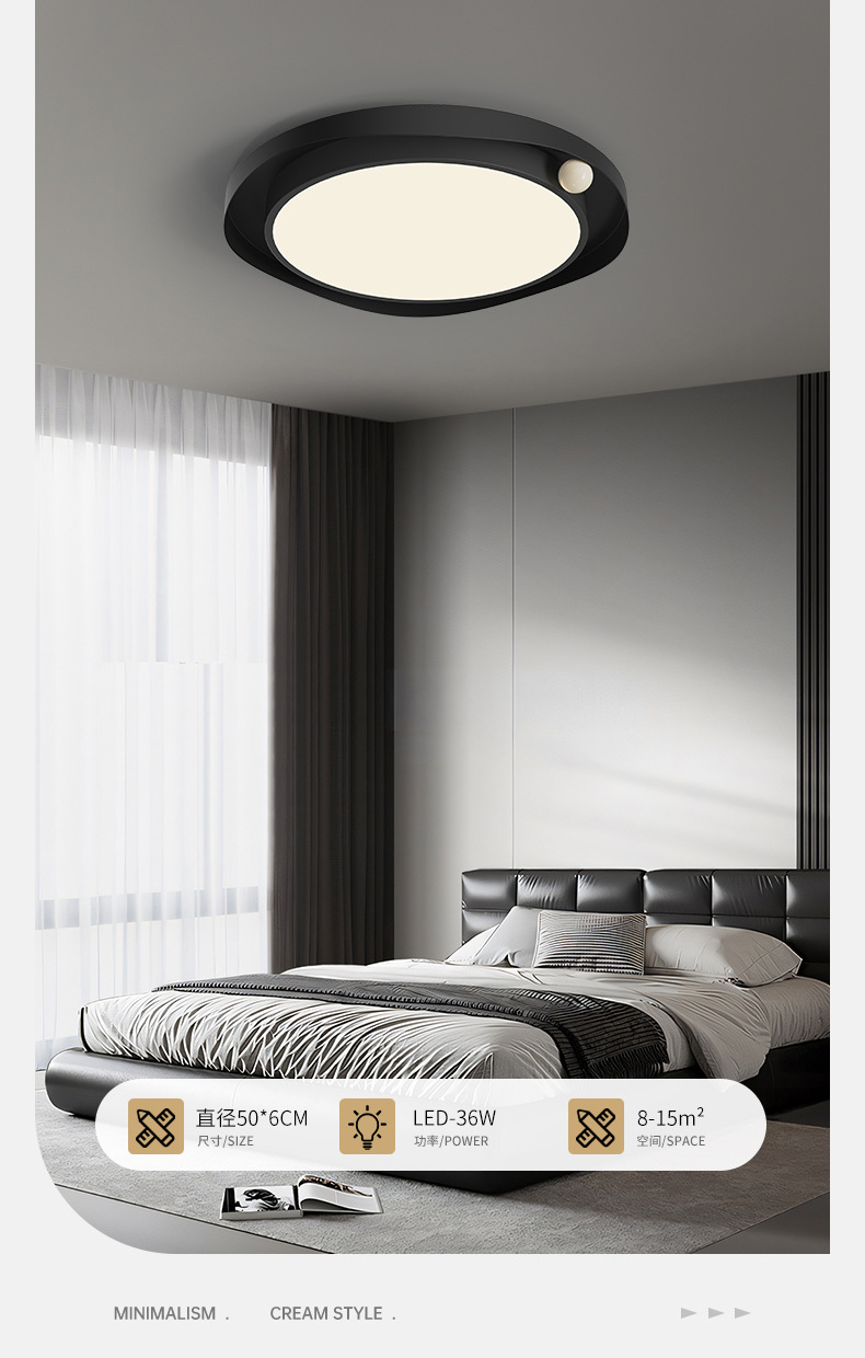 Lámpara de techo minimalista de estilo italiano, luz principal de la sala de estar, luz de la habitación del dormitorio principal de la atmósfera negra, creativa simple y creativa creativa