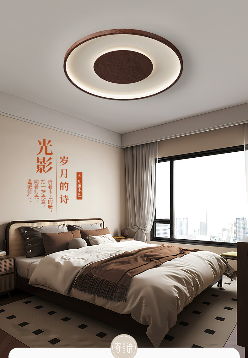 Lámpara de dormitorio de color nogal retro Lámpara de techo de estilo antiguo americano Lámpara de protección ocular de habitación cálida de espectro completo Zhongshan