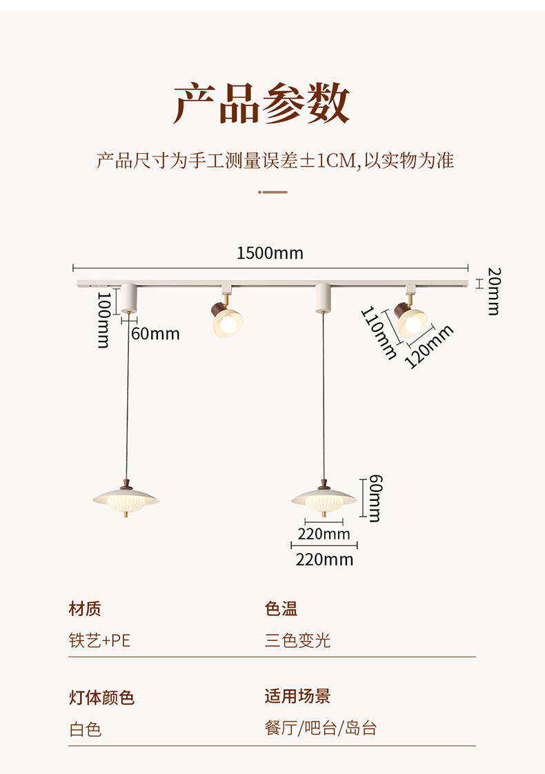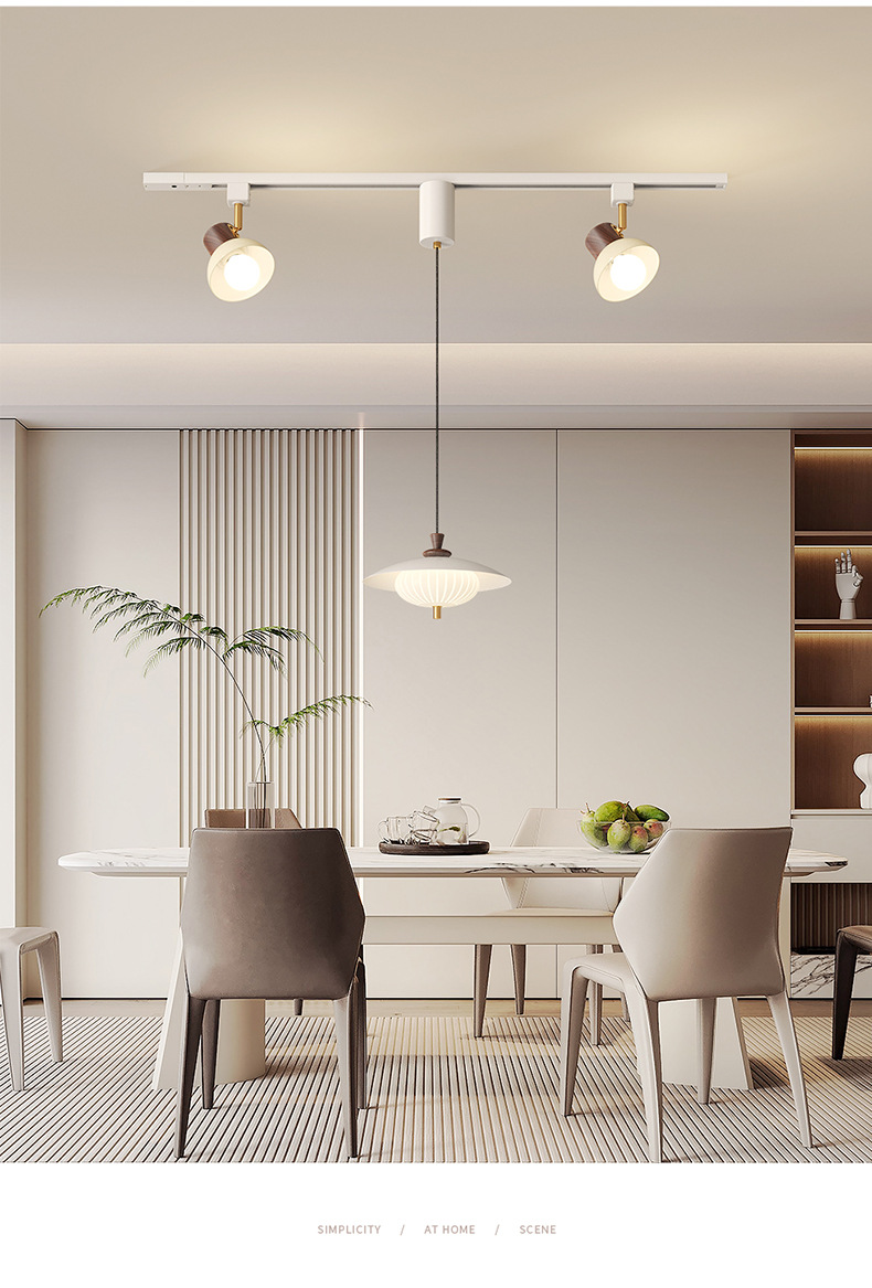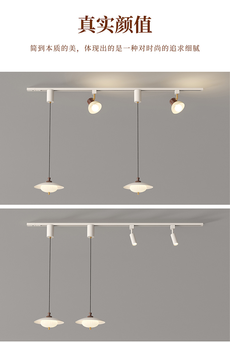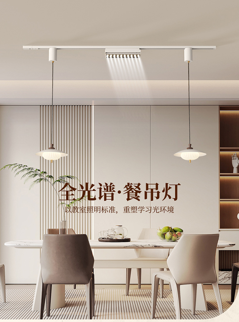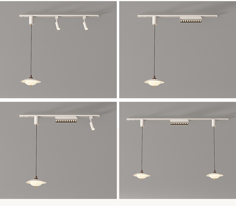Lámpara colgante de restaurante de rejilla de pista larga de múltiples cabezales de viento crema, lámpara de bar de comedor móvil creativa 2025 nuevo