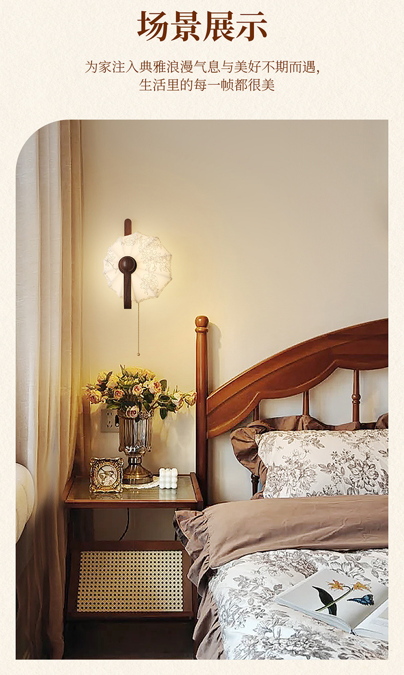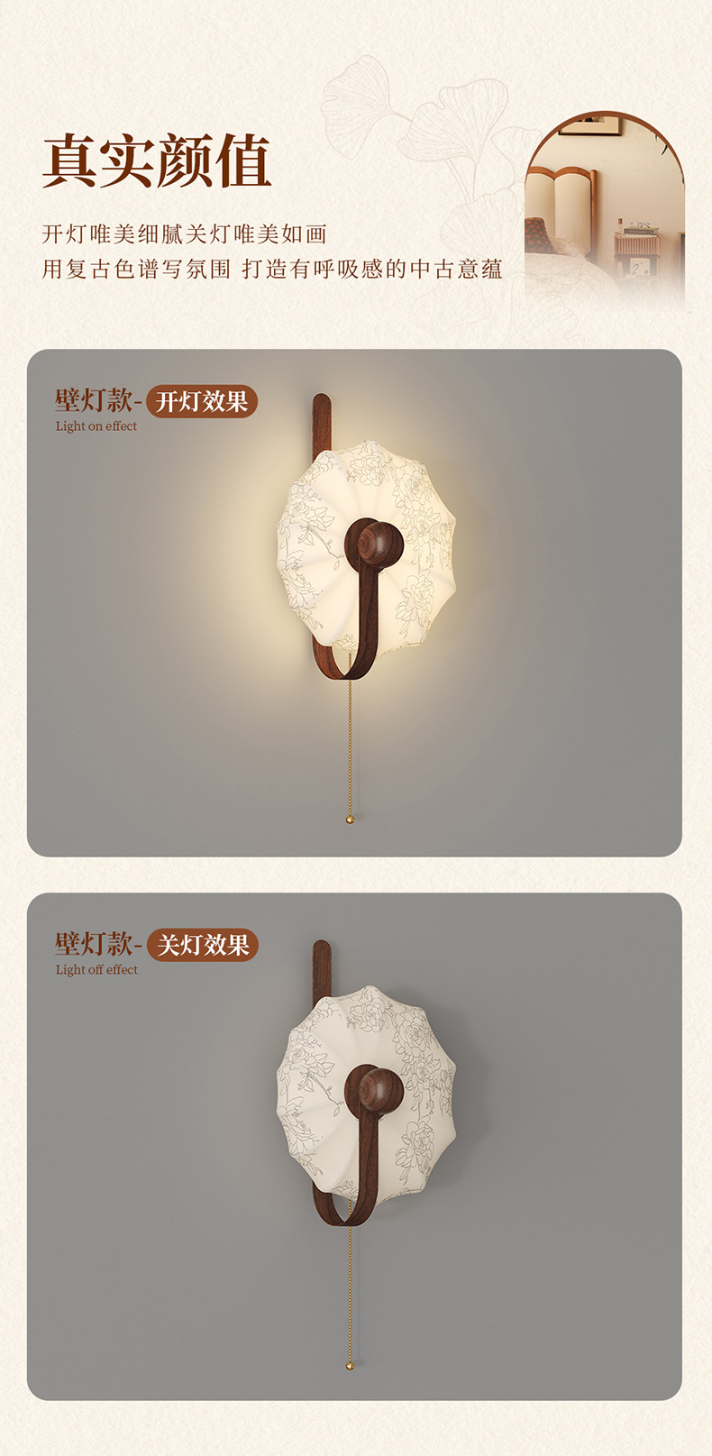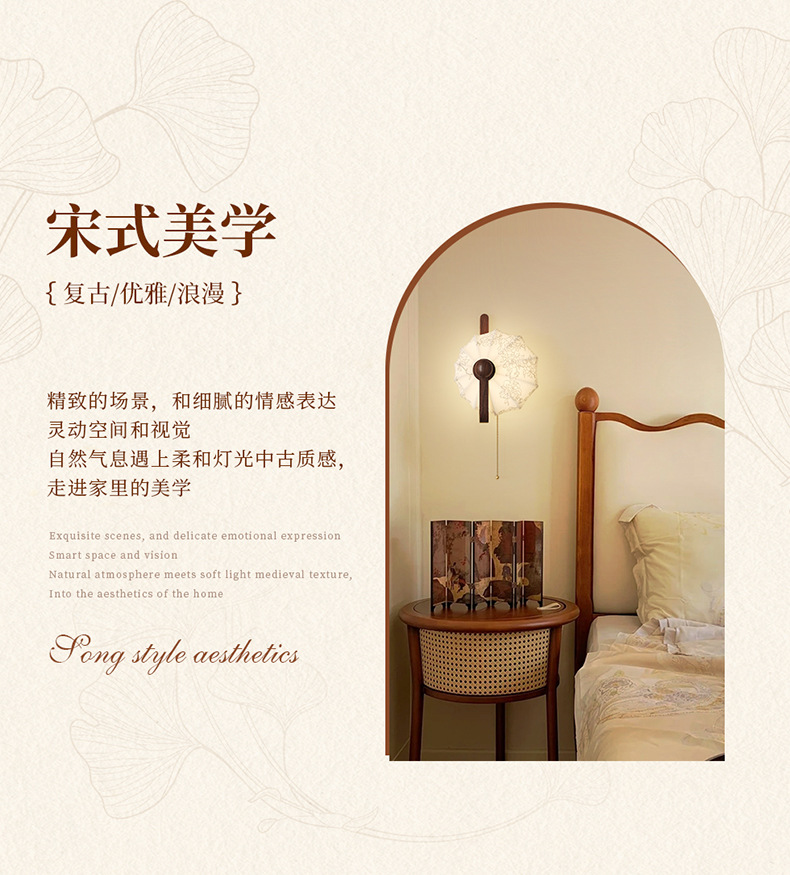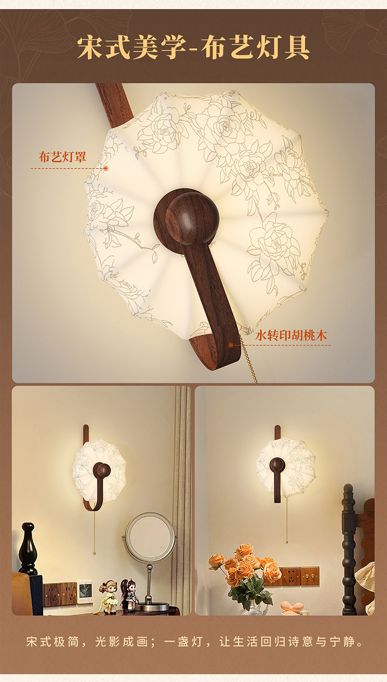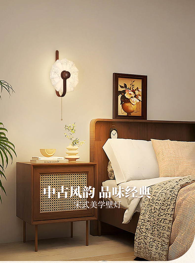 Estilo antiguo, dinastía Song, estética, lámpara de pared con cabecera de cama retro, tela impresa, sala de estar, dormitorio, fondo, lámpara de pared, 2025 nuevo