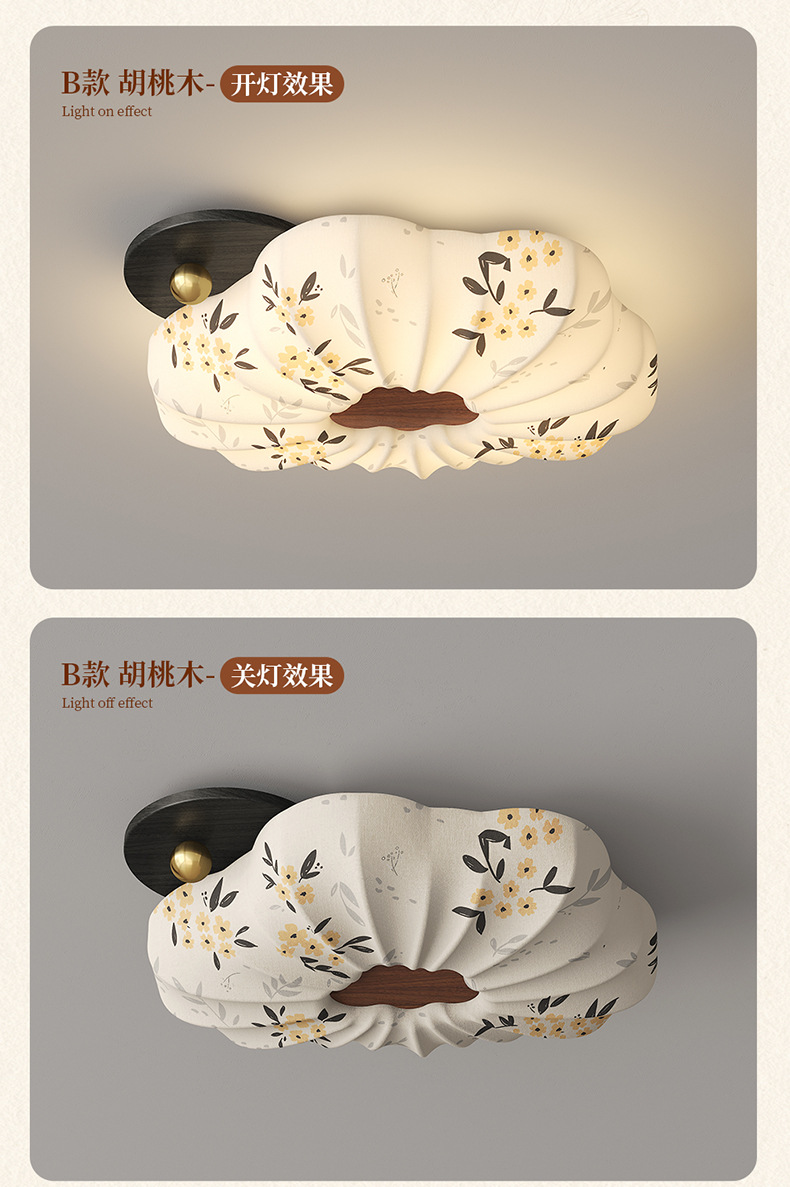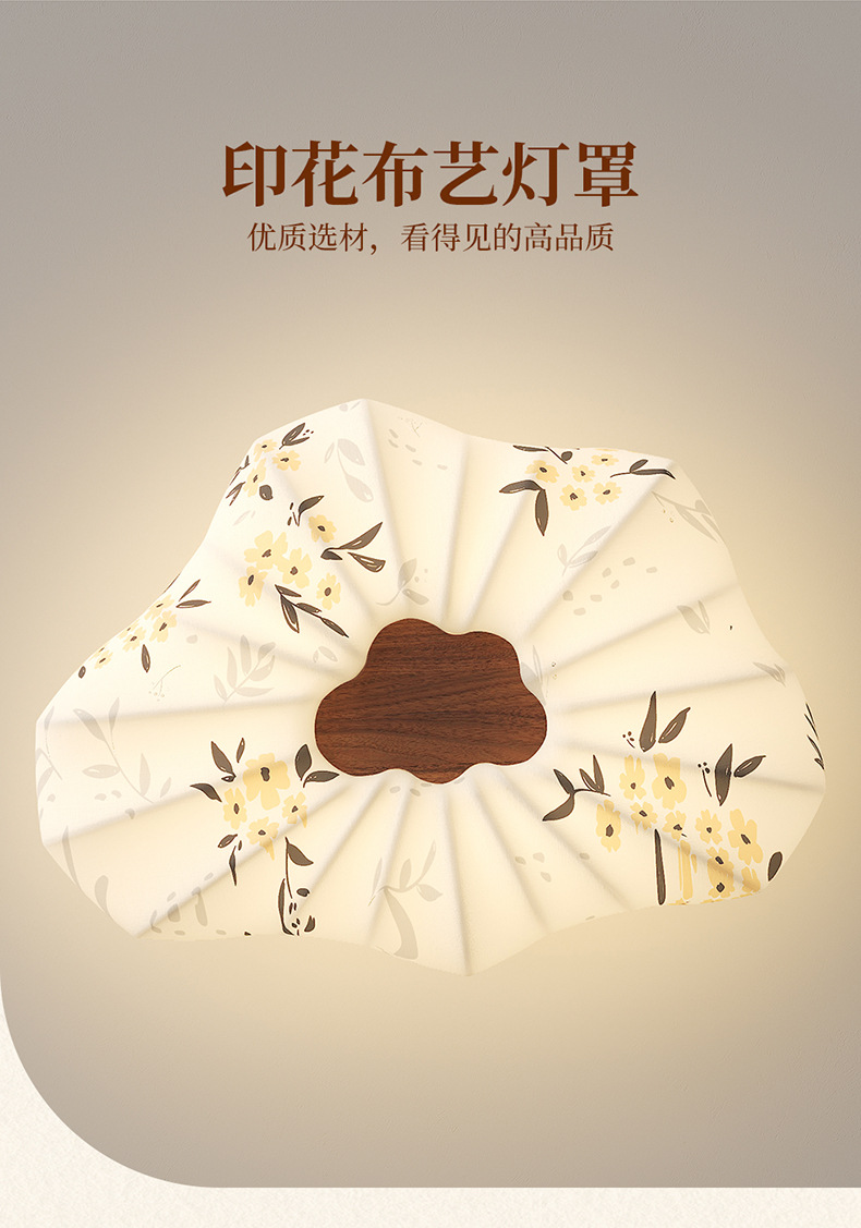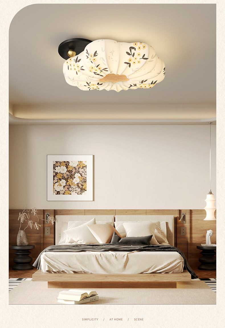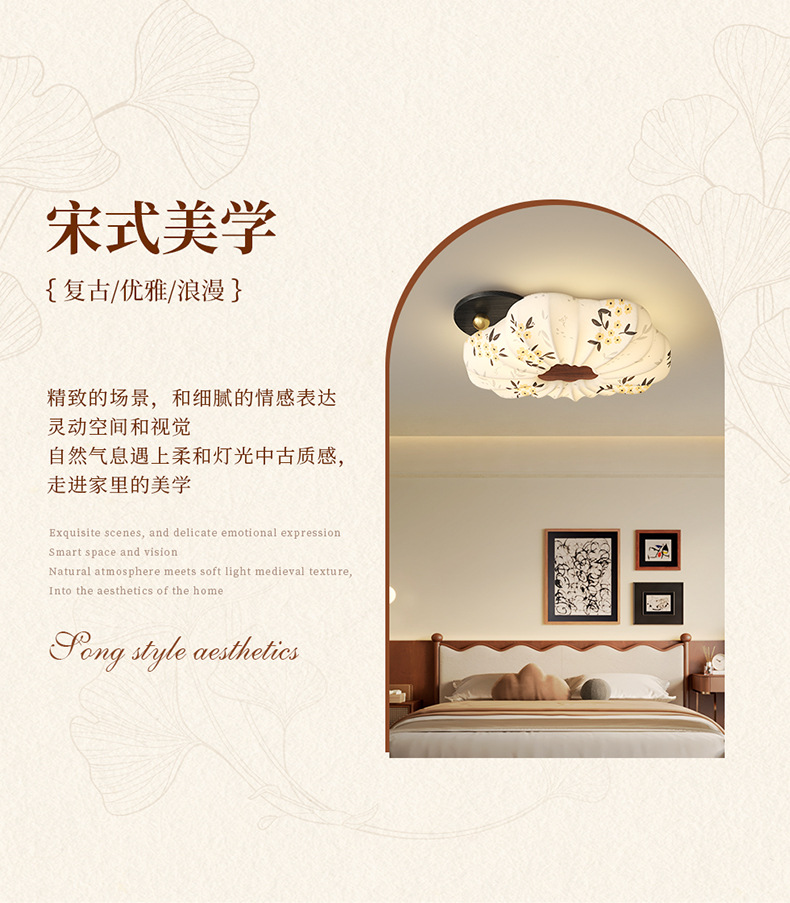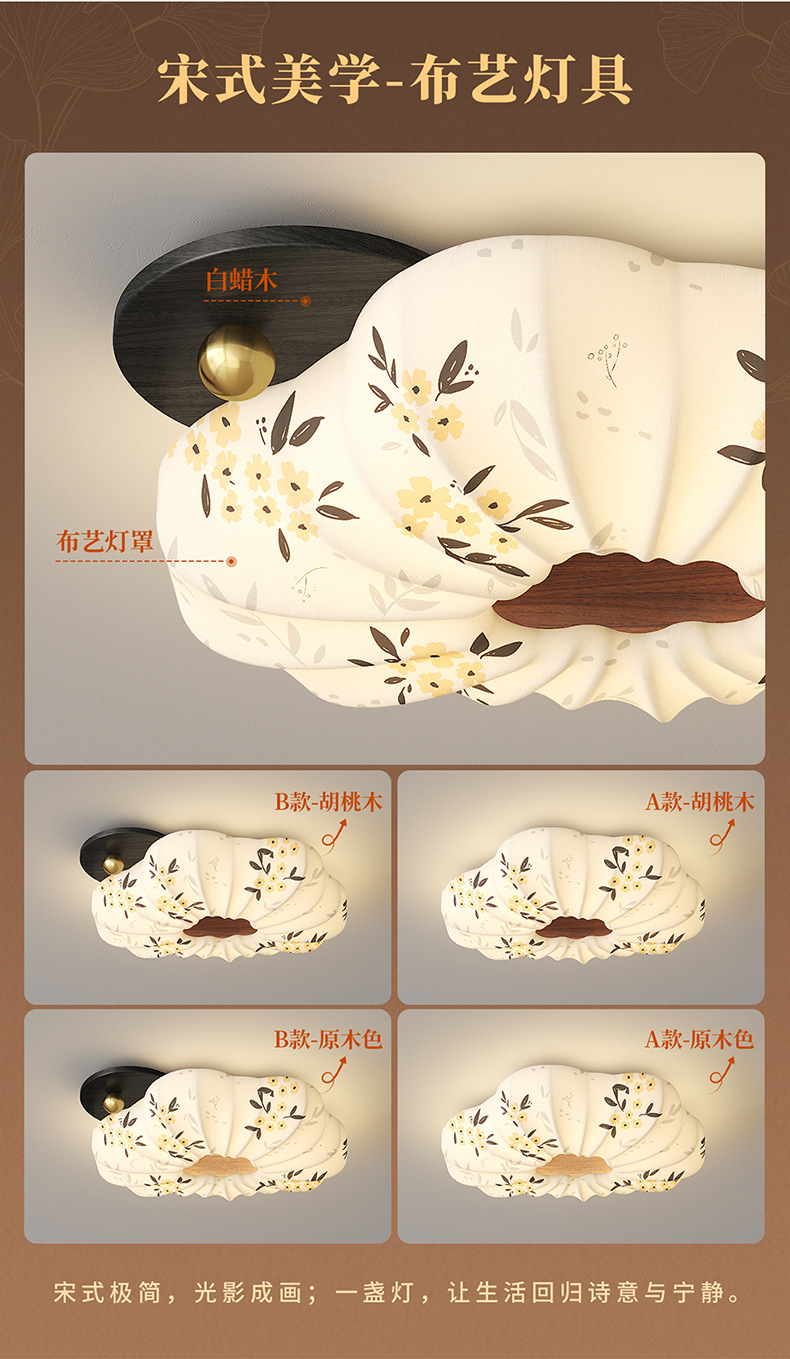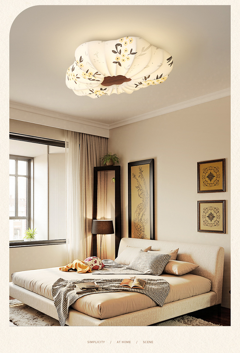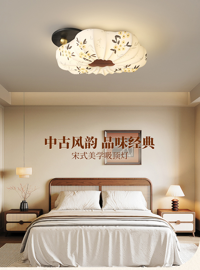 Lámpara de dormitorio 2025 nuevo estilo de protección ocular de espectro completo estilo Song cubierta de tela estética restaurante arte lámpara de techo lámpara Zhongshan