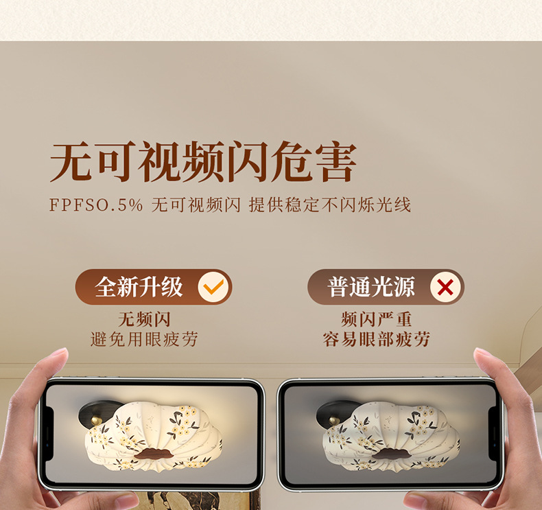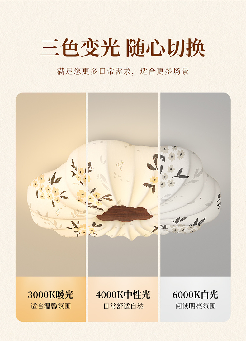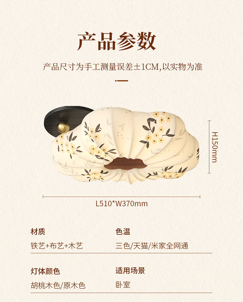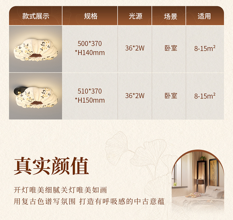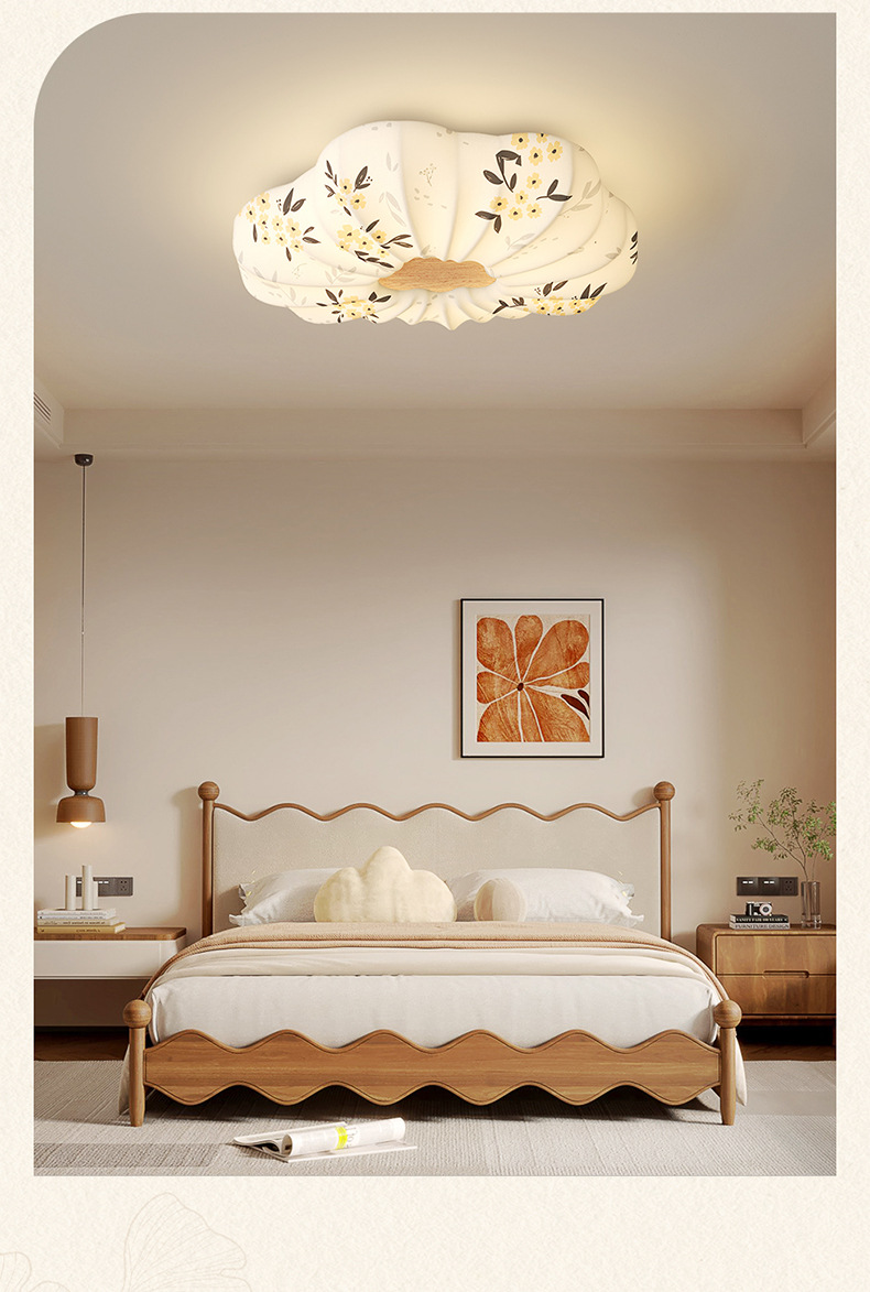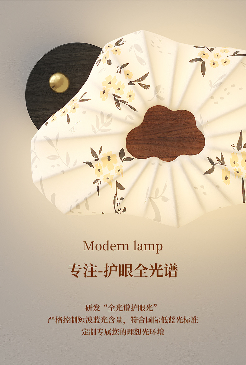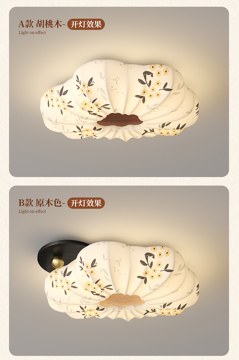 Lámpara de dormitorio 2025 nuevo estilo de protección ocular de espectro completo estilo Song cubierta de tela estética restaurante arte lámpara de techo lámpara Zhongshan