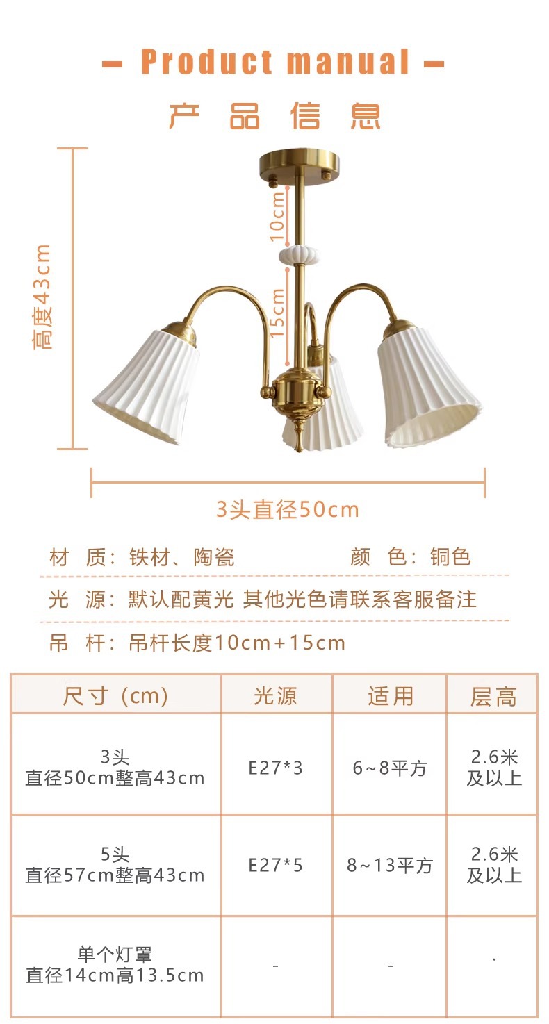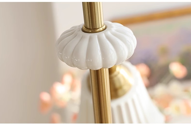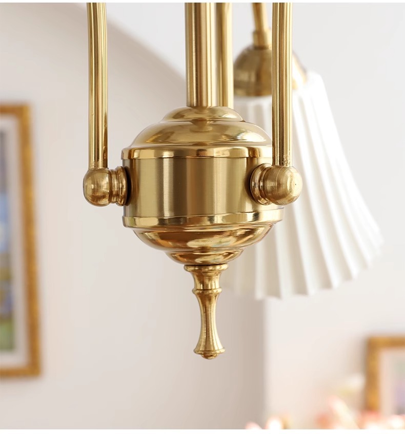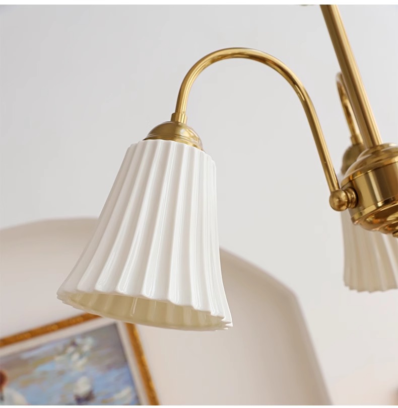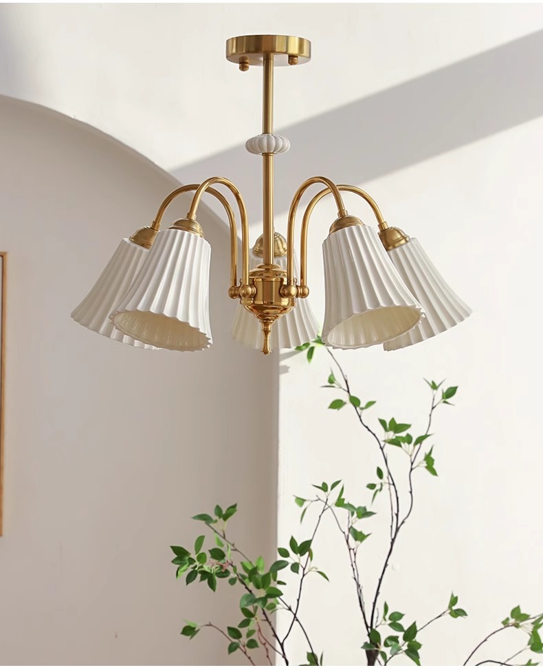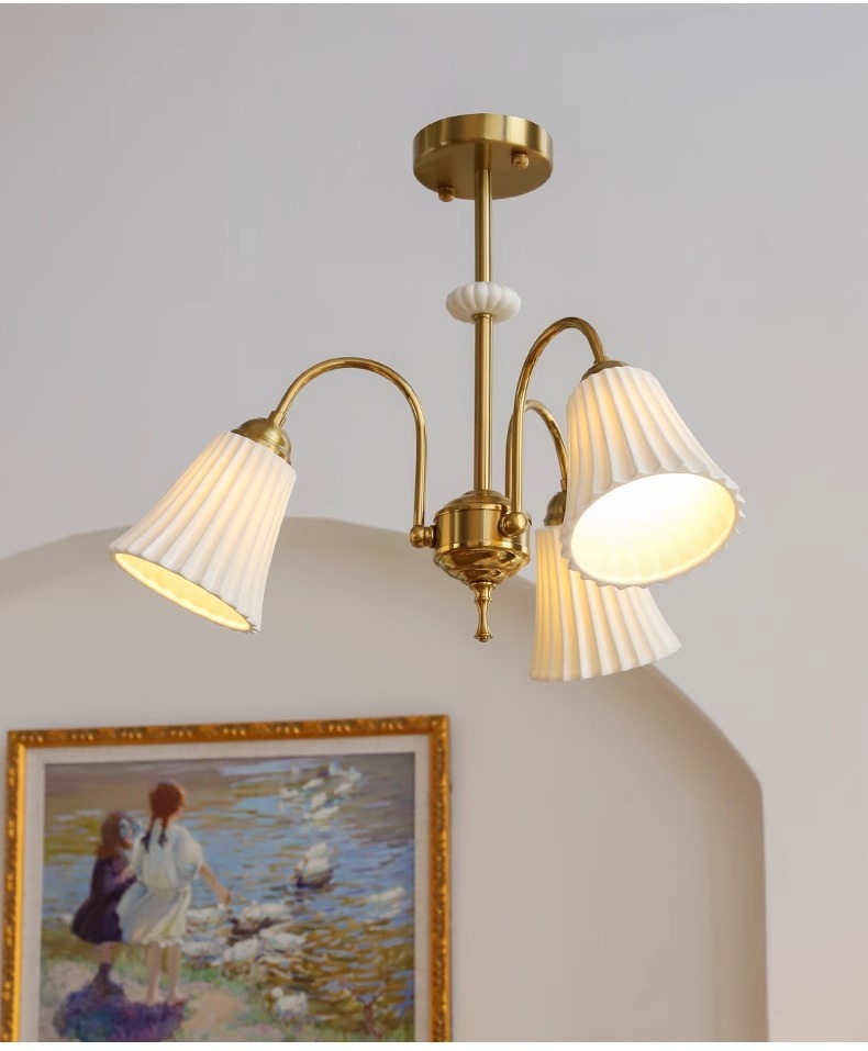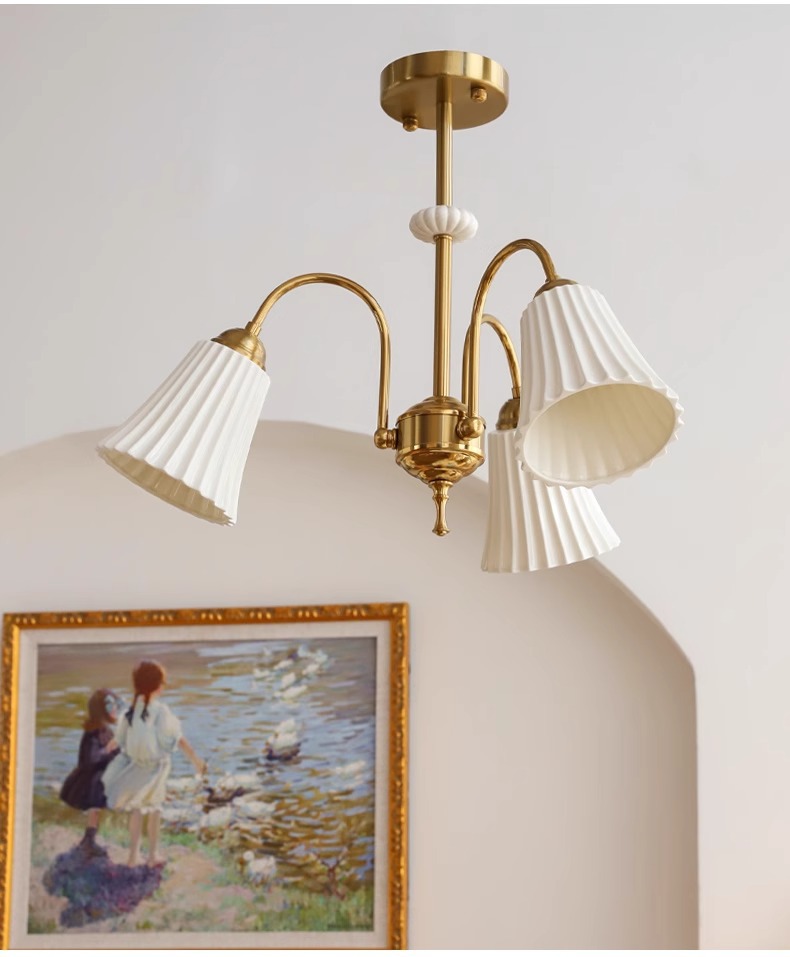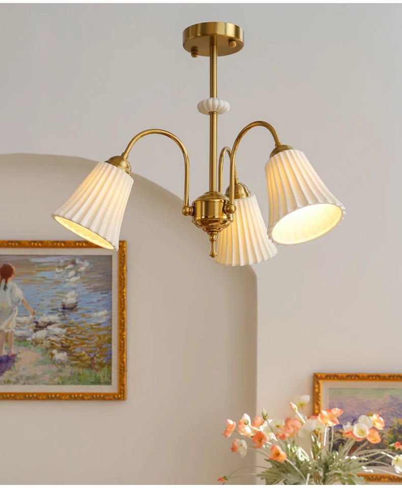 Araña de cerámica blanca retro francesa, lámpara de dormitorio principal de cobre americano, diseño de sala de estar de comedor, lámpara de vidrio de estudio