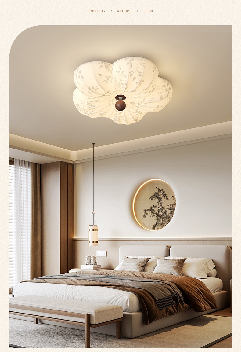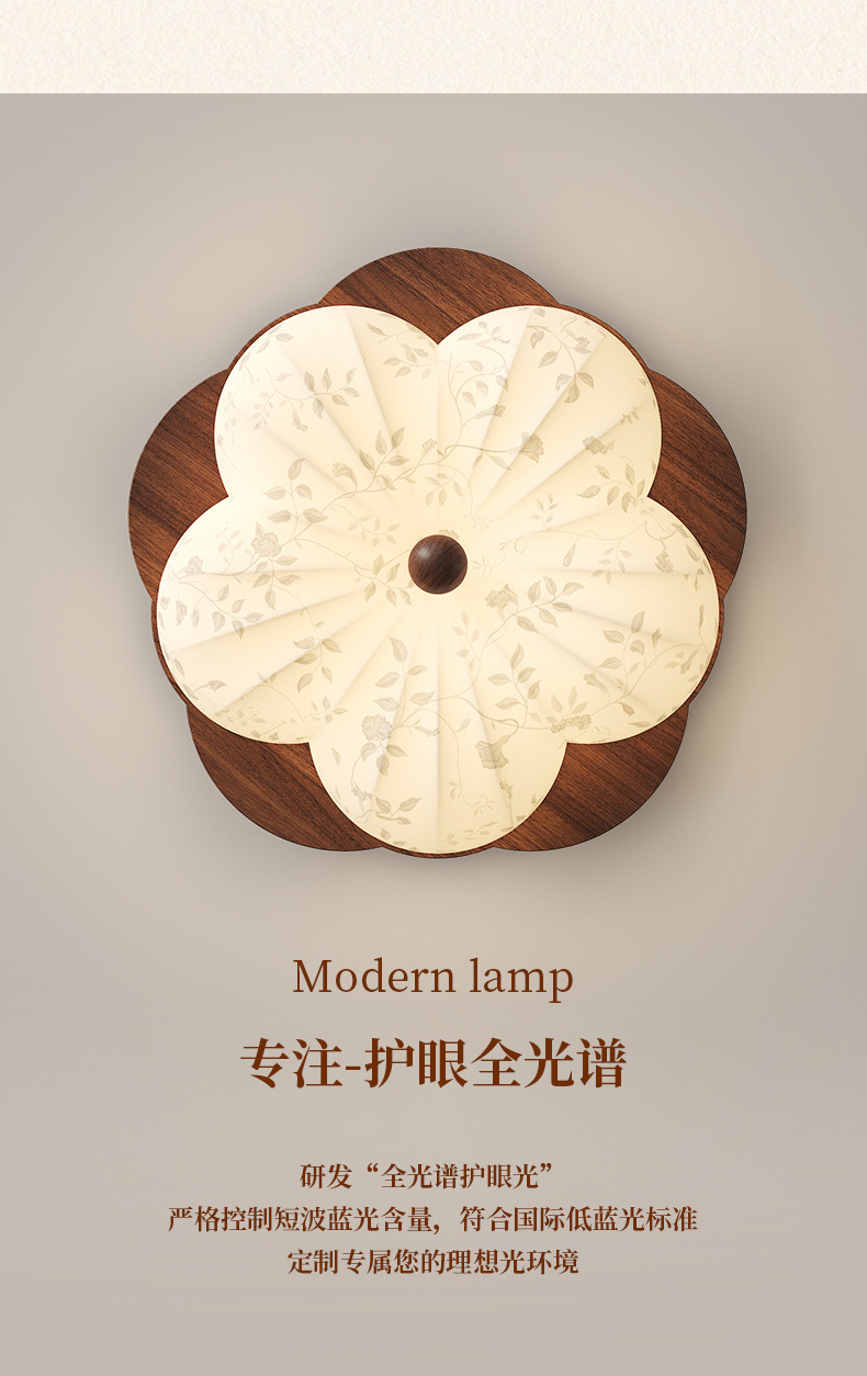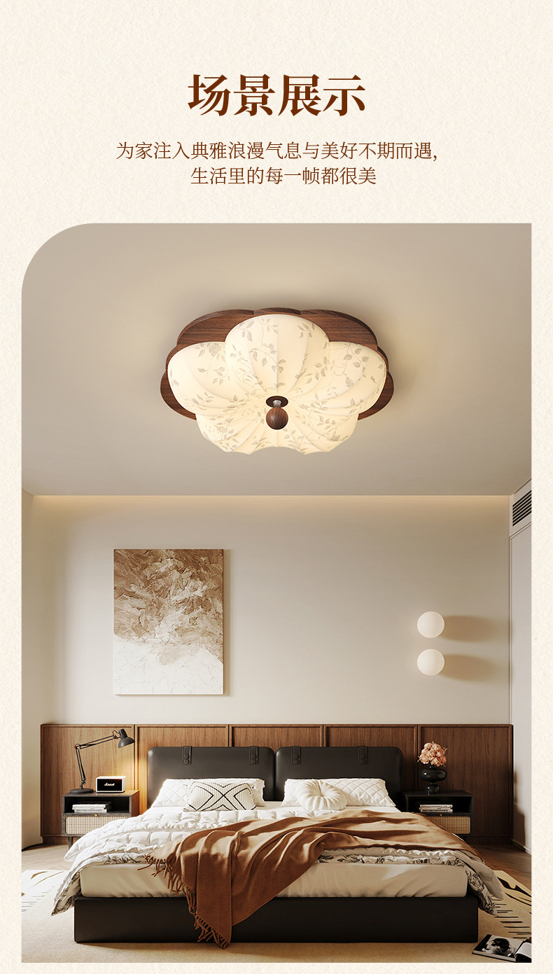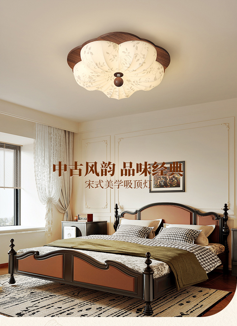 Lámpara de techo de dormitorio retro francés, tela de madera maciza antigua, protección ocular, sala de estudio del dormitorio principal, lámpara de flores