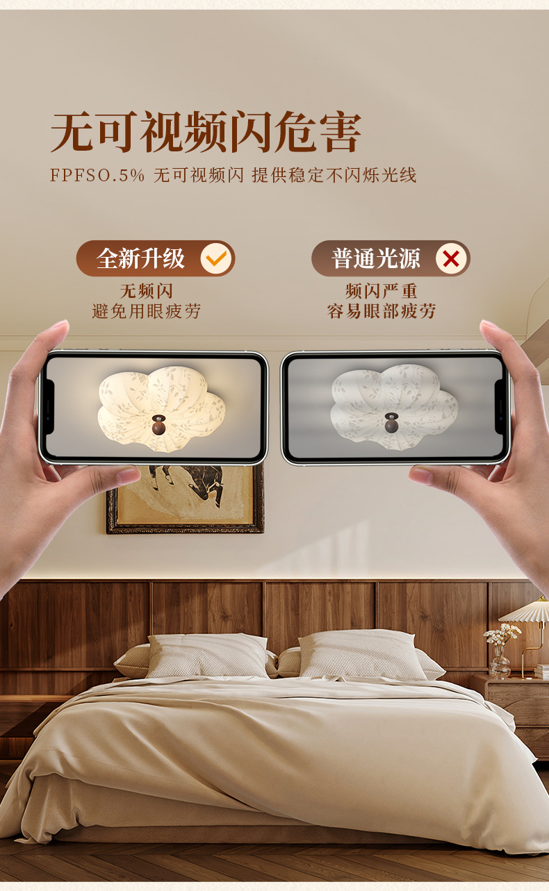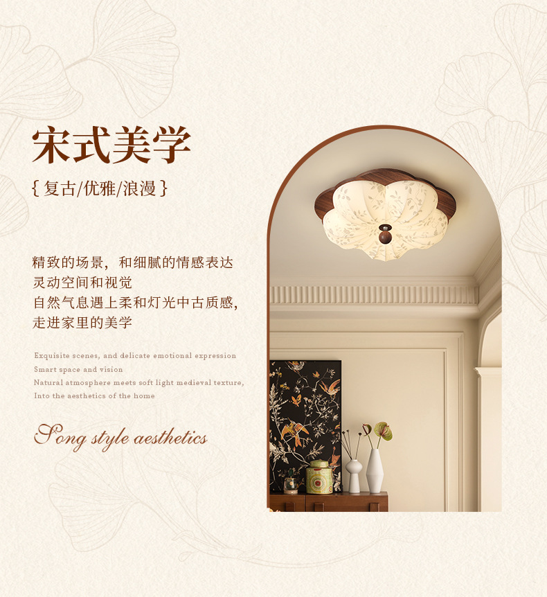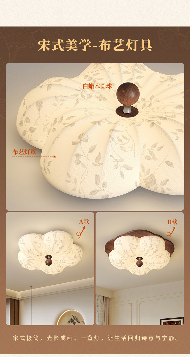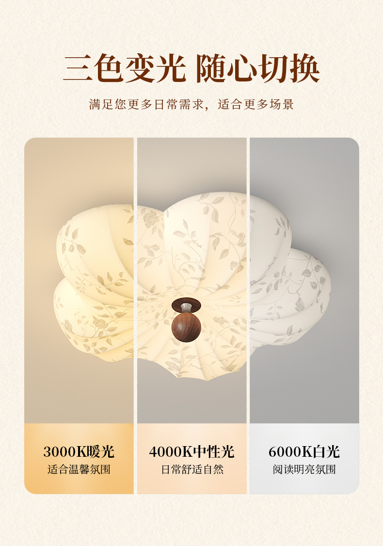 Lámpara de techo de dormitorio retro francés, tela de madera maciza antigua, protección ocular, sala de estudio del dormitorio principal, lámpara de flores
