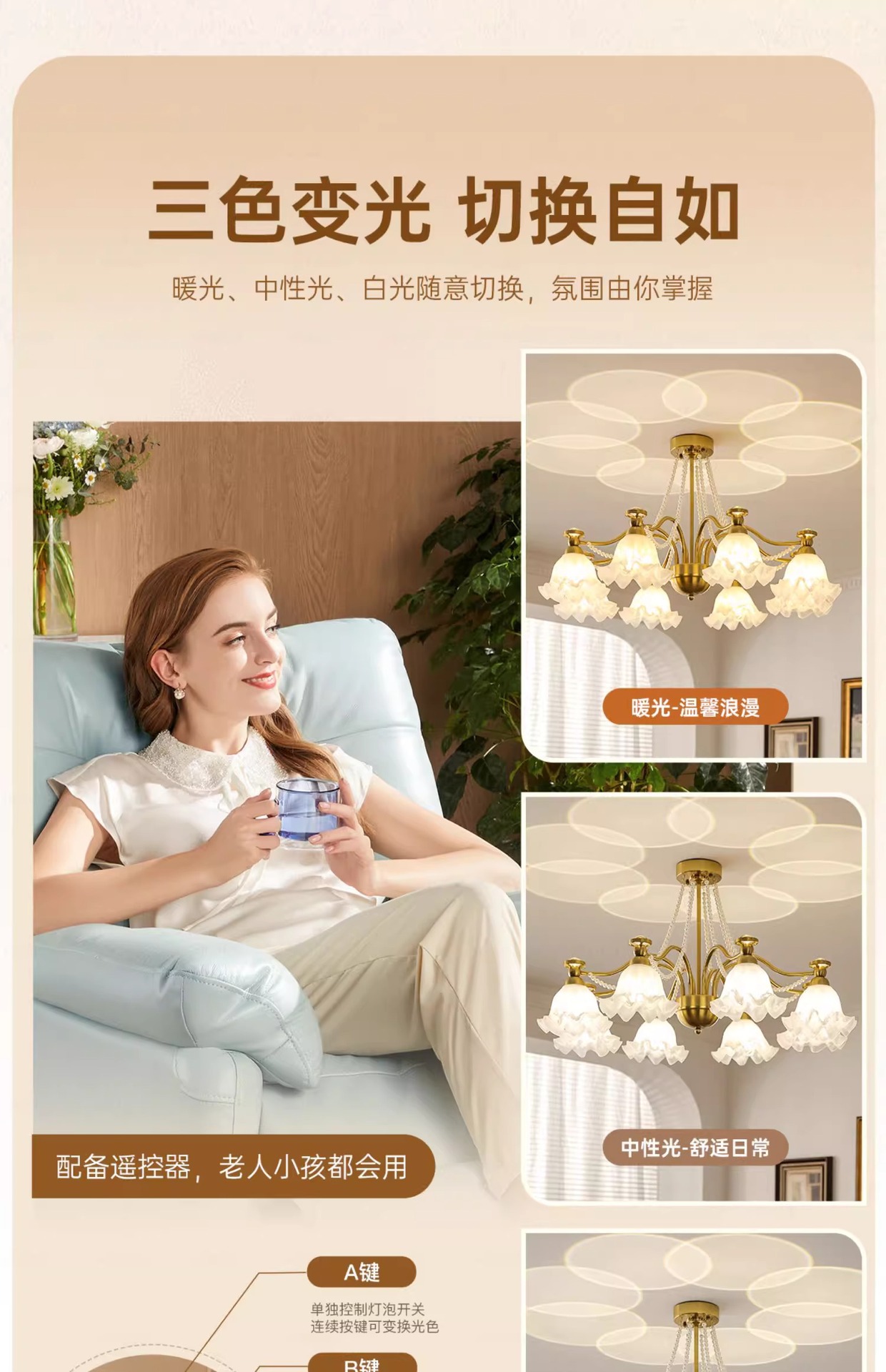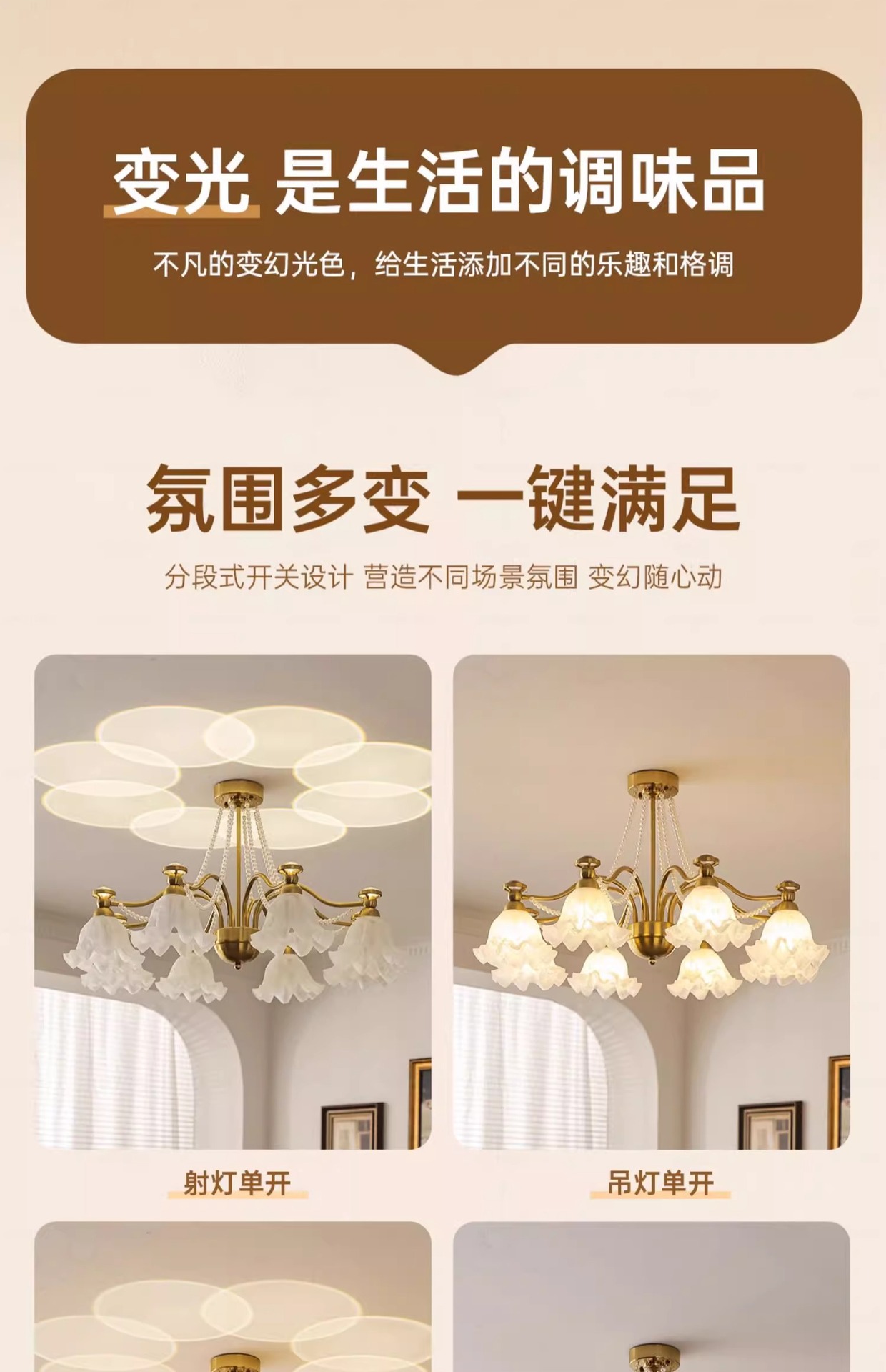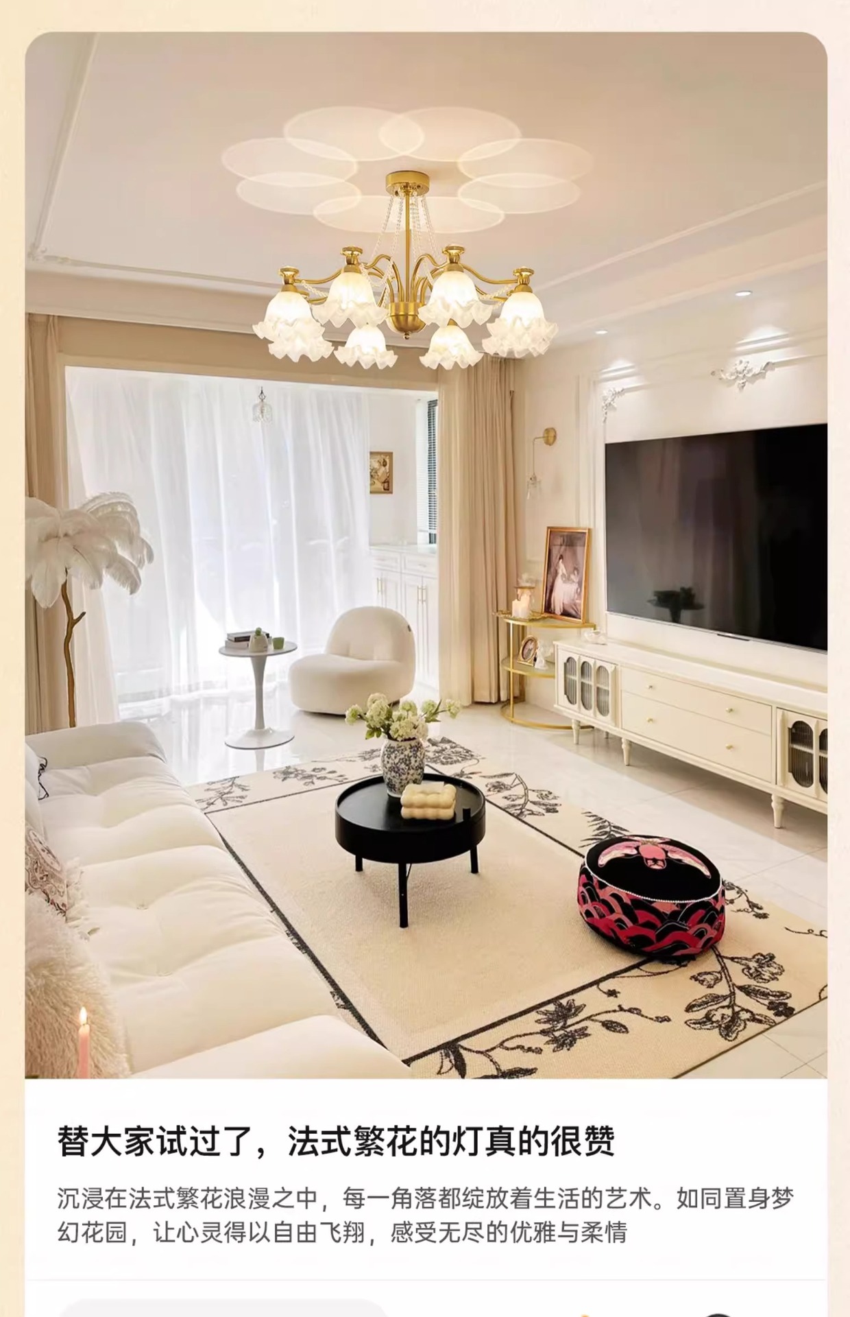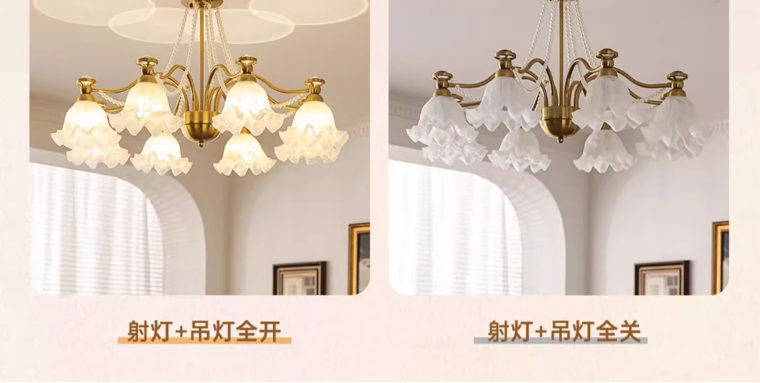 Araña de sala de estar francesa, creatividad personalizada, crema medieval, lámpara de flor cálida, lámpara de protección ocular de proyección de espectro completo para dormitorio