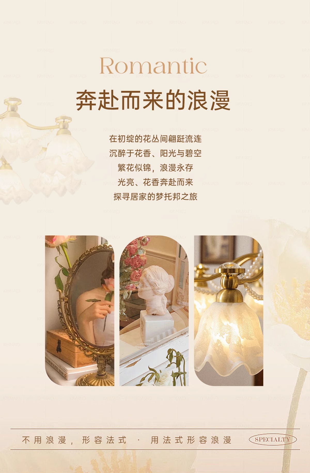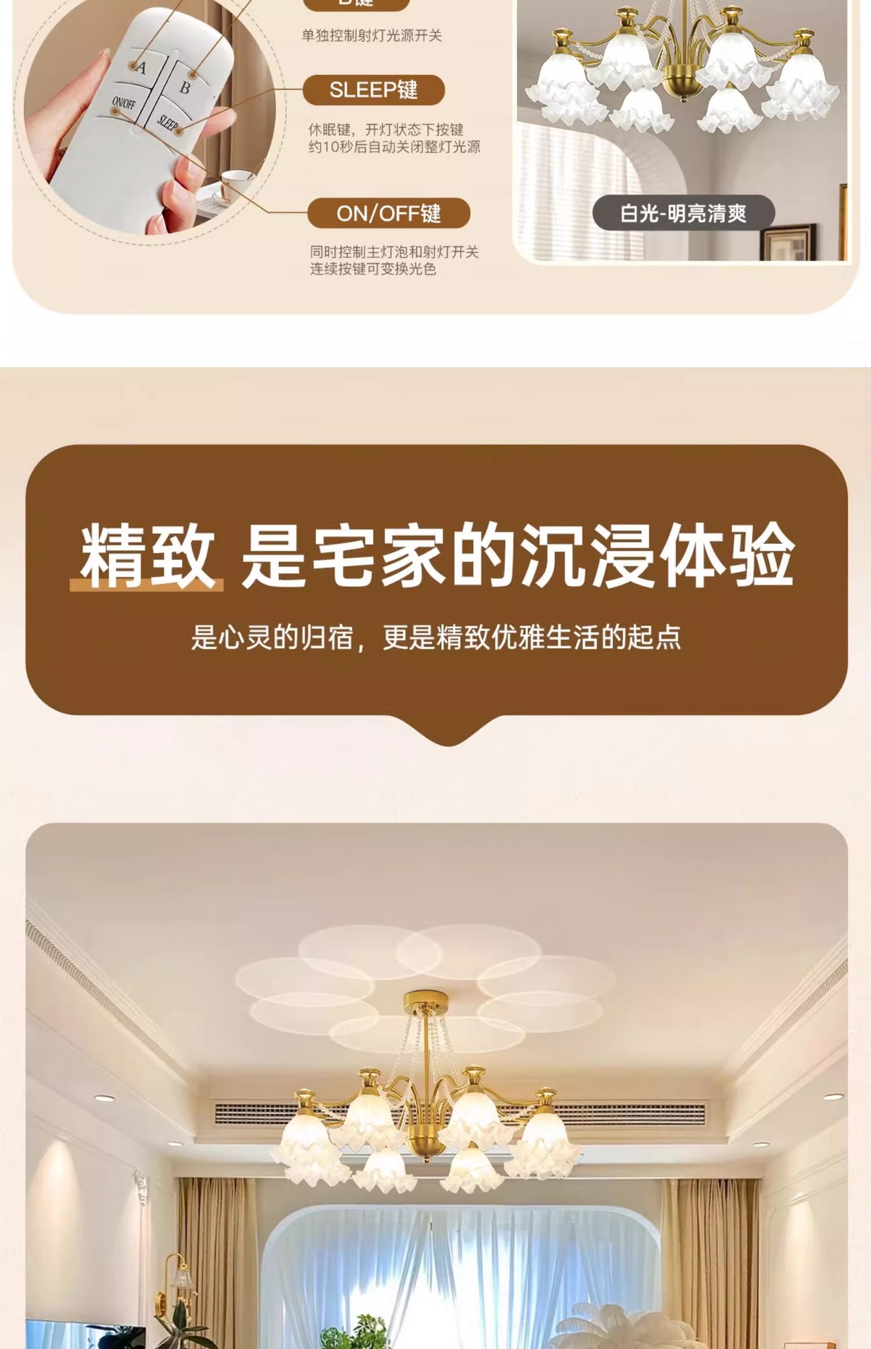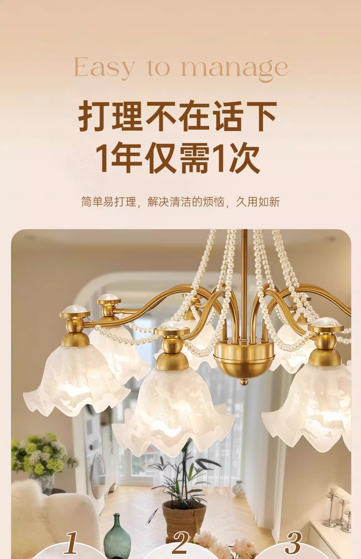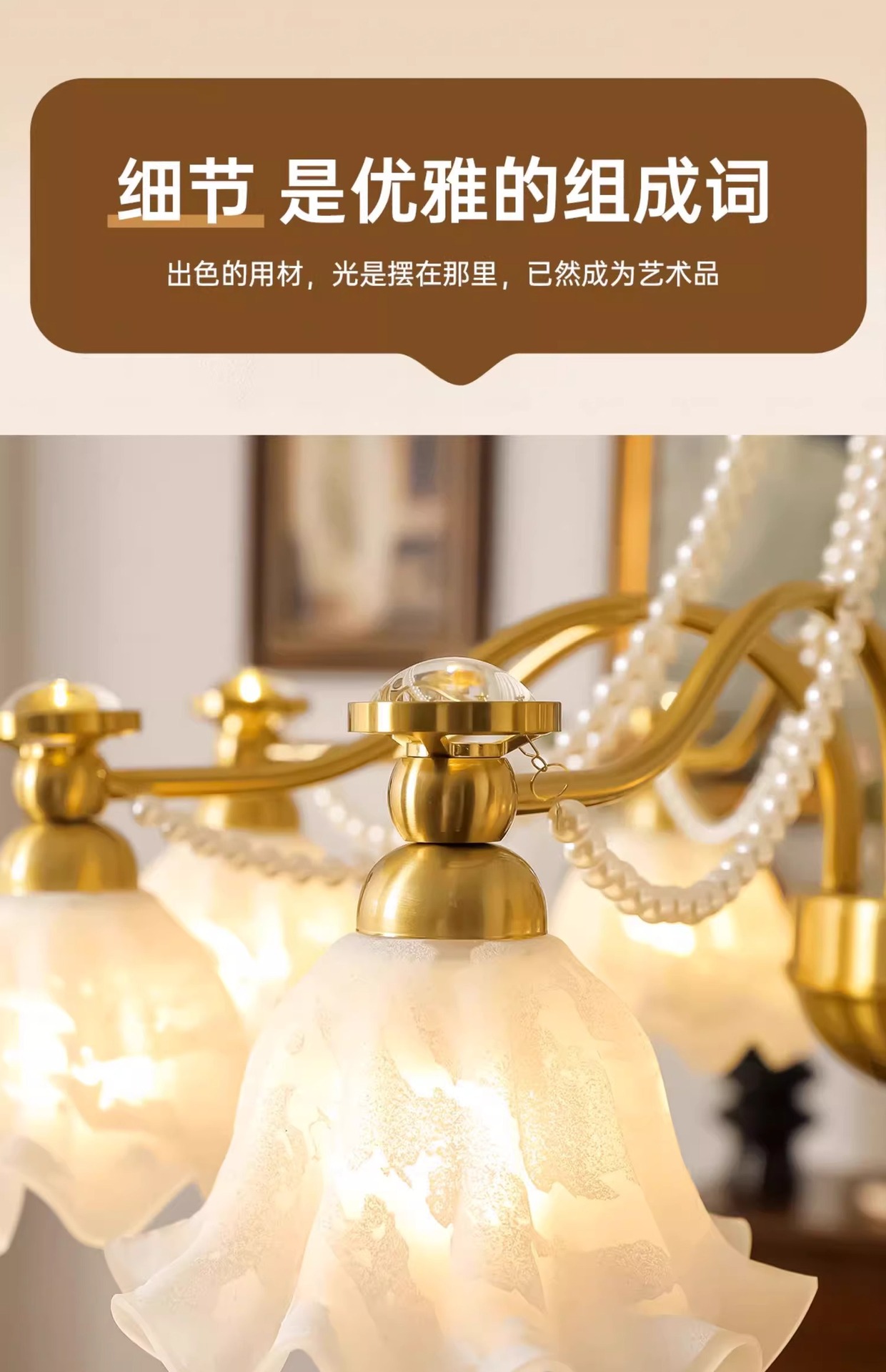 Araña de sala de estar francesa, creatividad personalizada, crema medieval, lámpara de flor cálida, lámpara de protección ocular de proyección de espectro completo para dormitorio