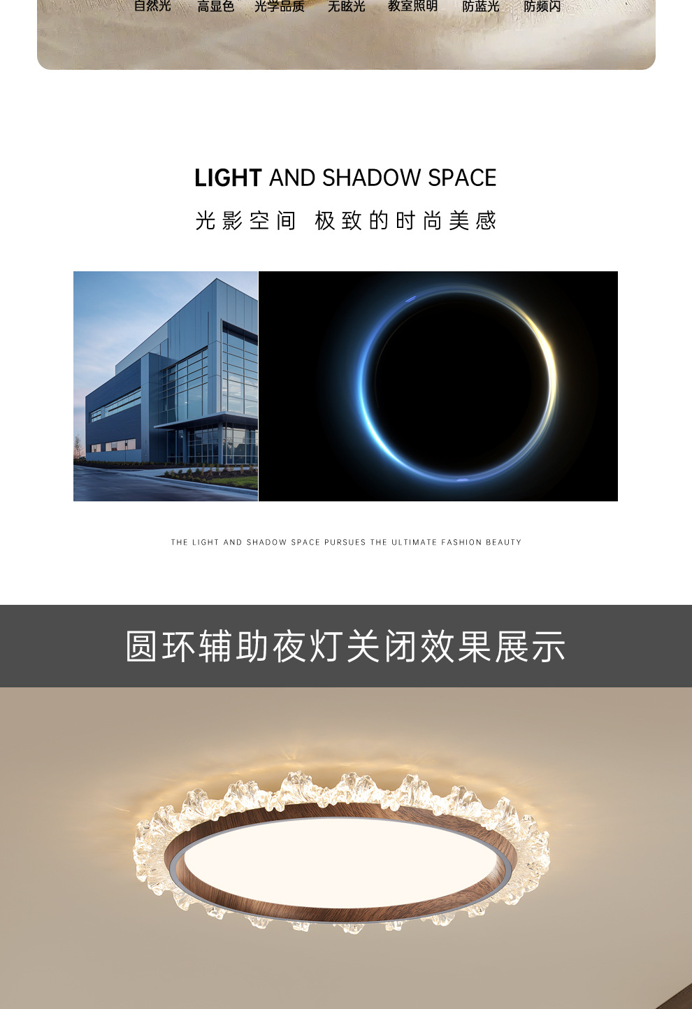 Lámpara de dormitorio de espectro completo 2025 Lámpara de cristal de lujo joven, simple moderna, protección ocular, luz de habitación atmosférica, lámpara de techo del dormitorio principal