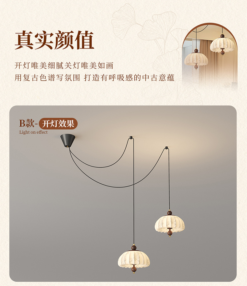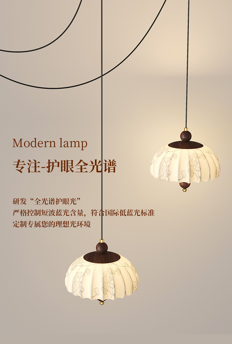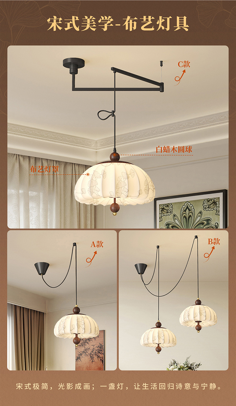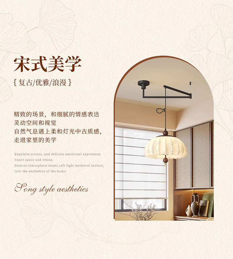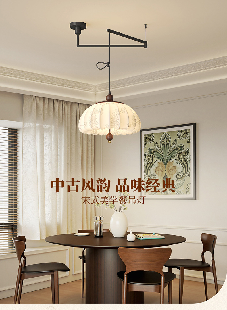 Iluminación de sala de estudio de dormitorio de estilo medio, sentido de la estética de Song, estilo de silencio de alta gama, protección ocular de espectro completo, candelabro de balancín de restaurante