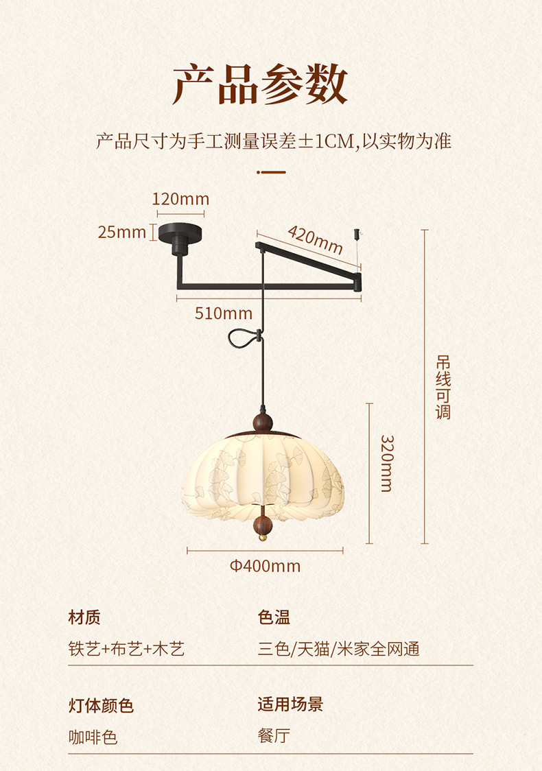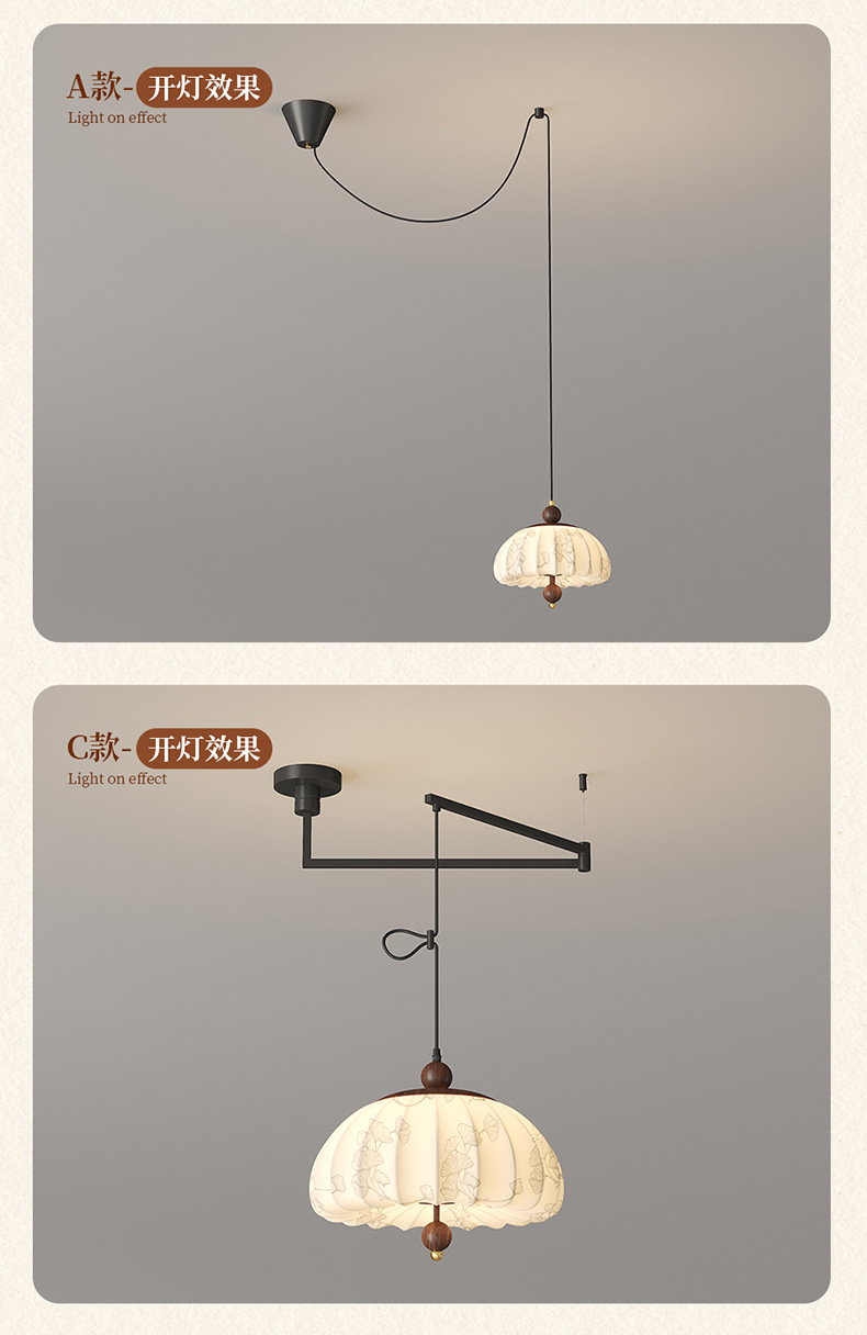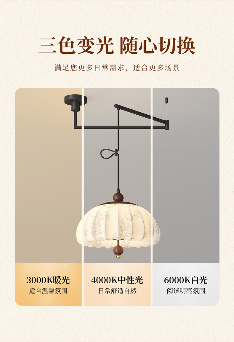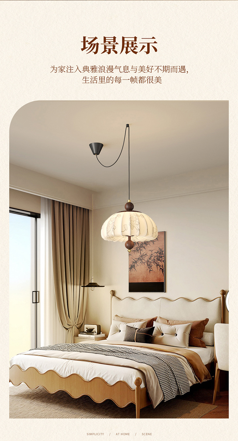 Iluminación de sala de estudio de dormitorio de estilo medio, sentido de la estética de Song, estilo de silencio de alta gama, protección ocular de espectro completo, candelabro de balancín de restaurante