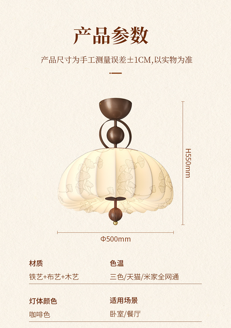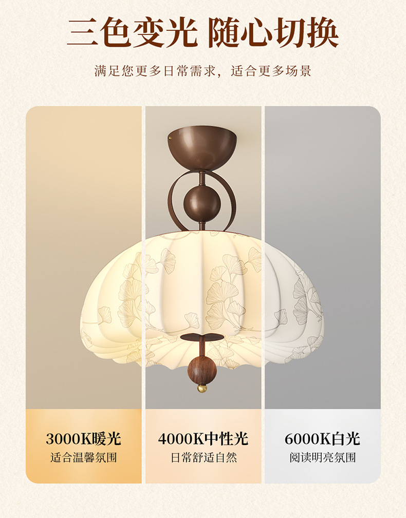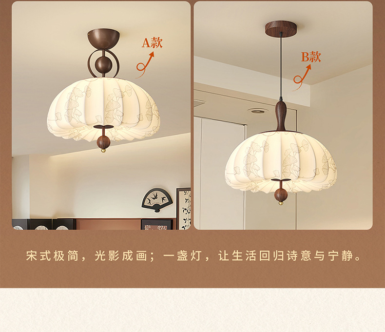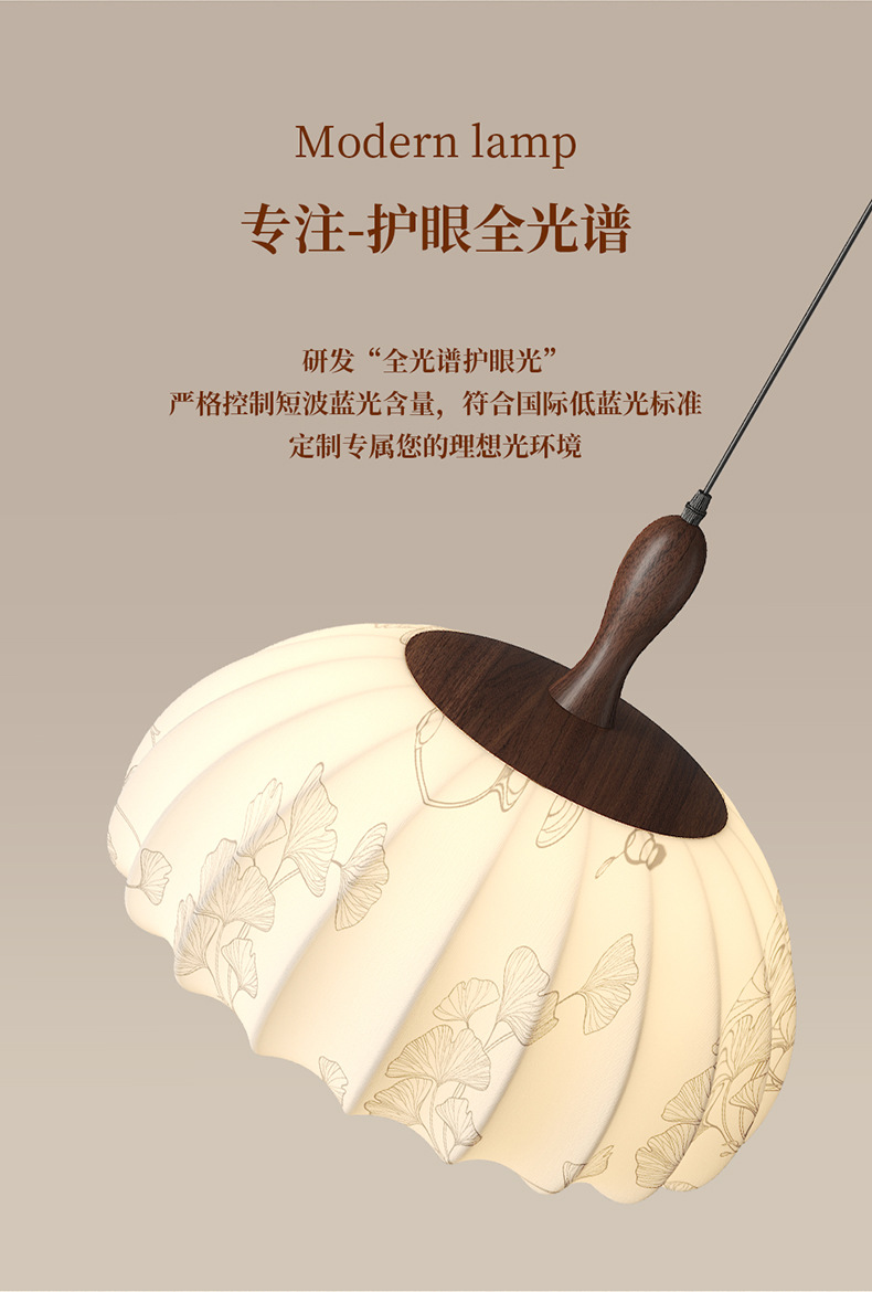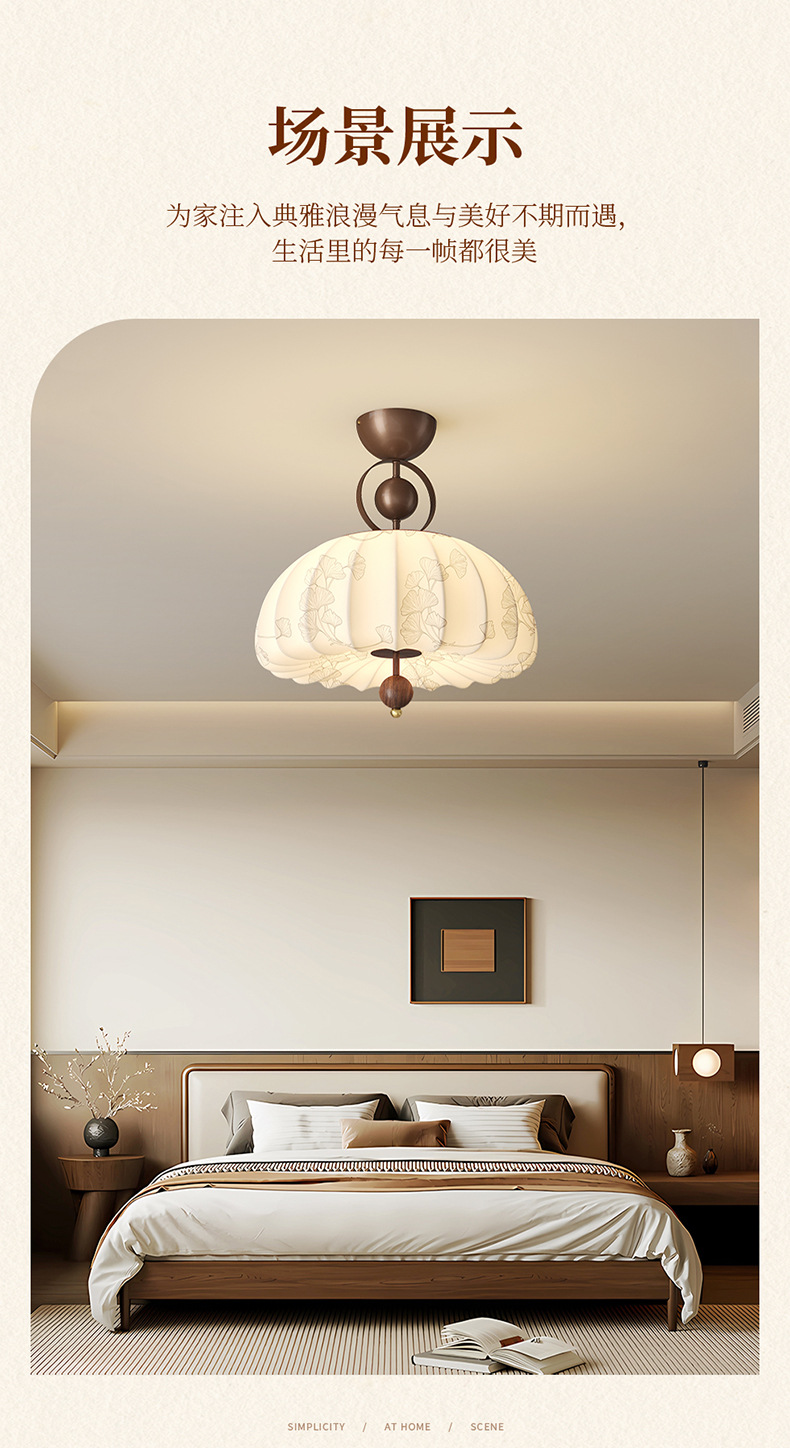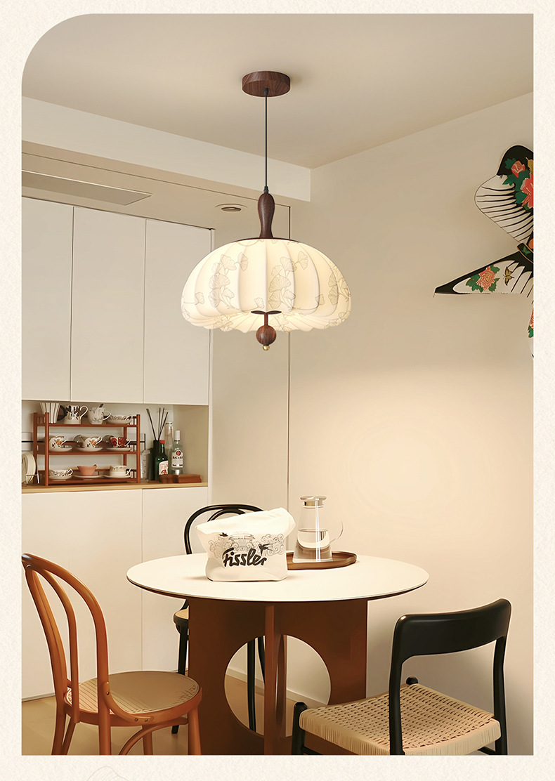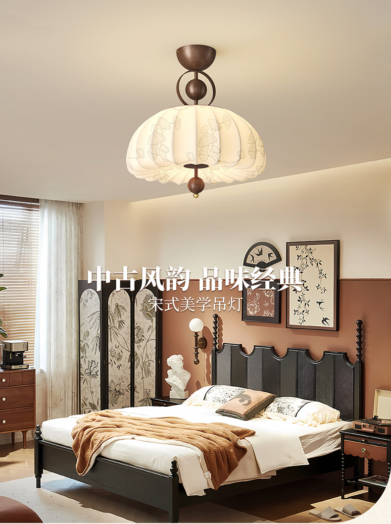 Araña de dormitorio principal de tela impresa de estilo medio 2025 nueva luz de habitación de restaurante de protección ocular de espectro completo retro de Song