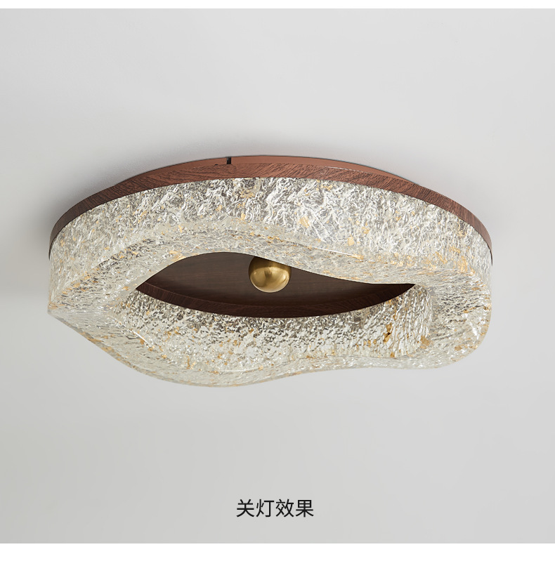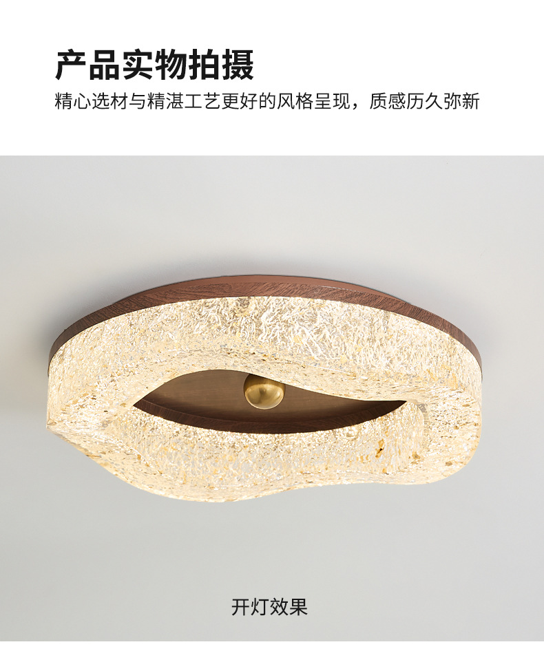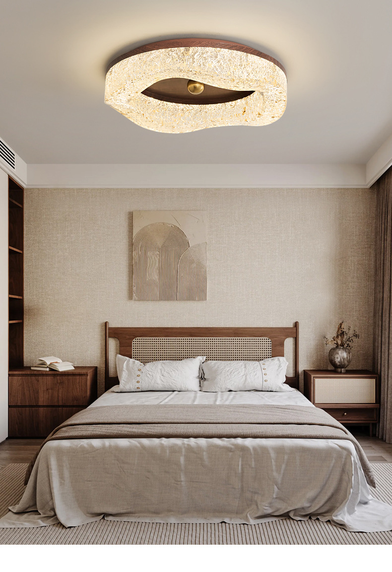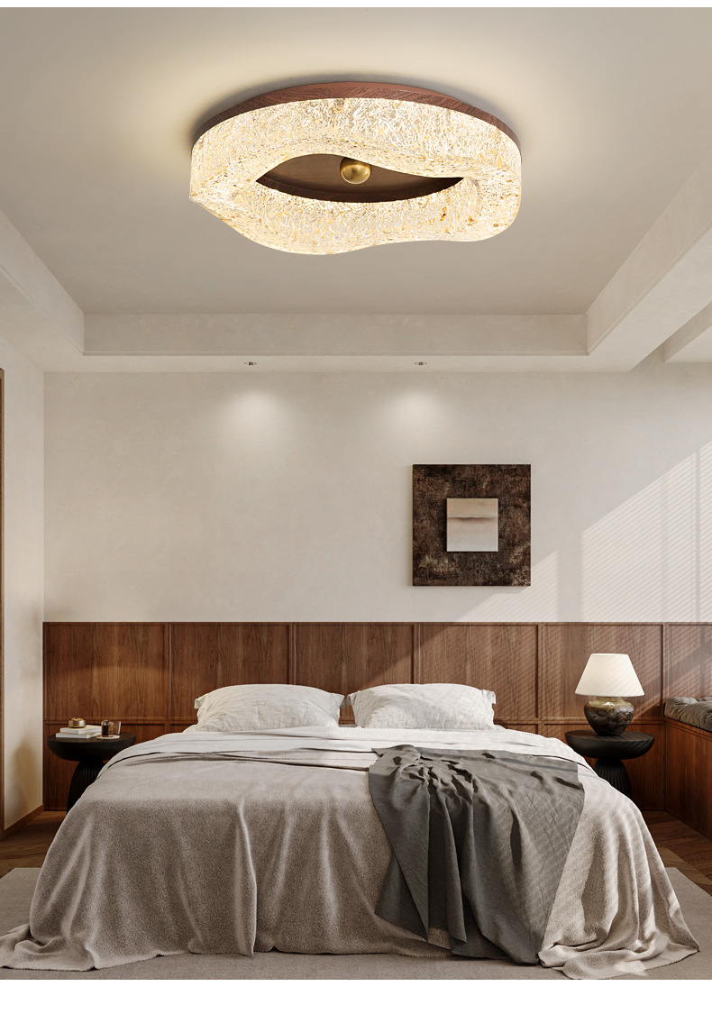 Lámpara de techo de dormitorio medieval de estilo italiano Lámpara de techo de resina de lámina de oro de lujo ligero Lámpara de habitación de protección ocular de grano de madera de nogal de alta calidad
