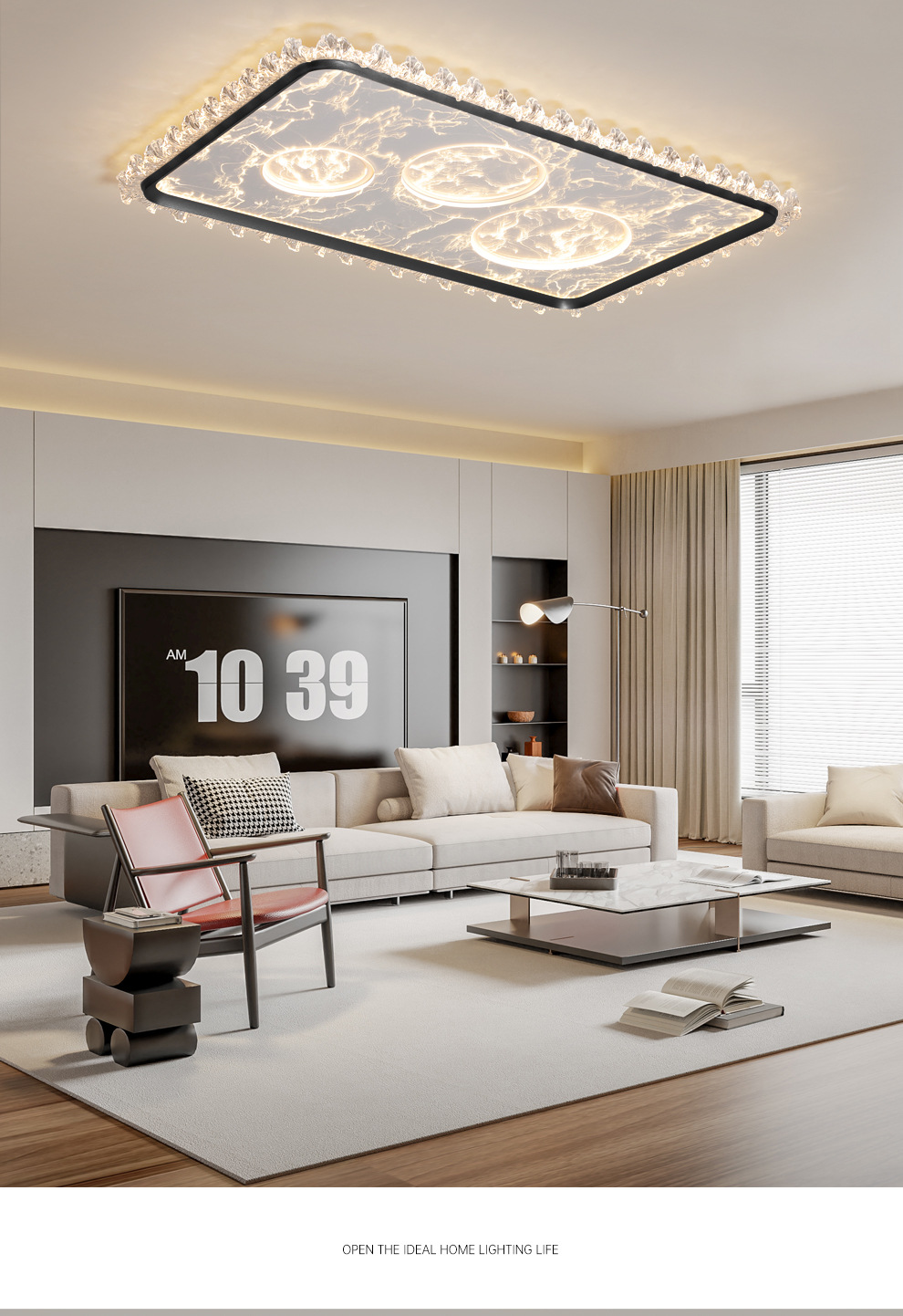Lámpara de techo de sala de estar de lujo ligero de estilo italiano, sensación de lujo ligero, atmósfera simple moderna 2025 nueva luz principal de sala de estar