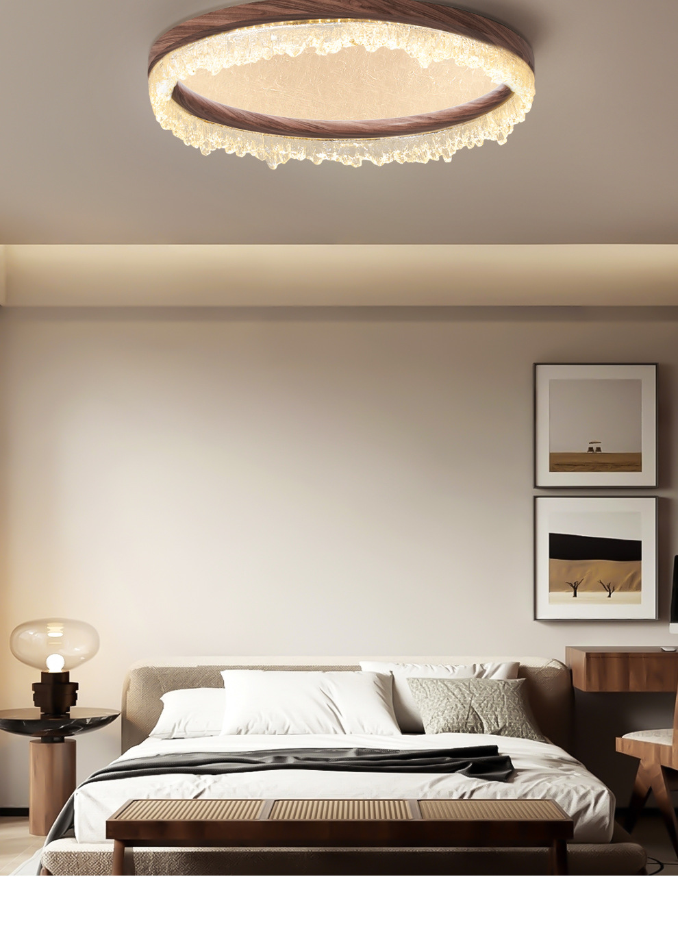 Lámpara de dormitorio de estilo medio, lámpara de techo, protección para los ojos de nube y niebla, estilo japonés, retro, wabi-ji, nogal, grano de madera, restaurante, libro, lámpara de habitación