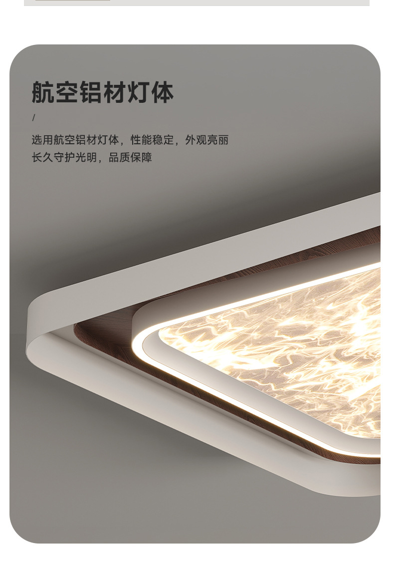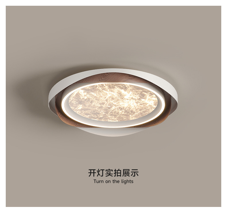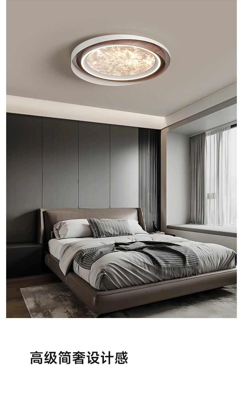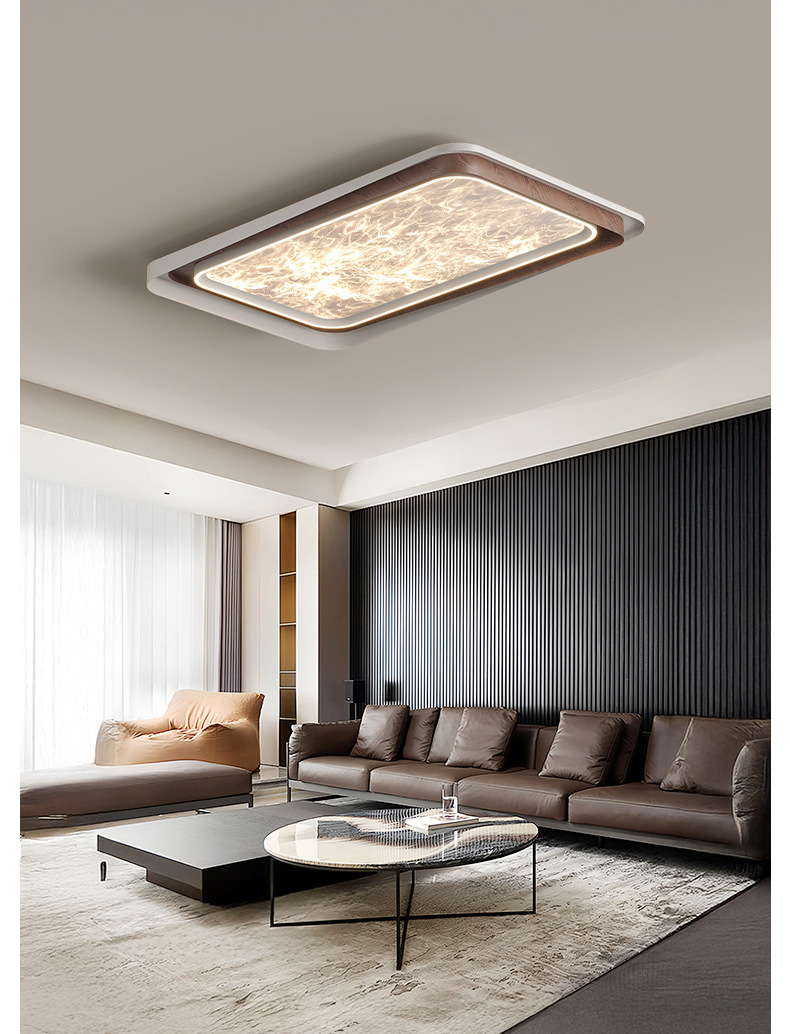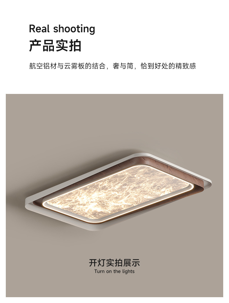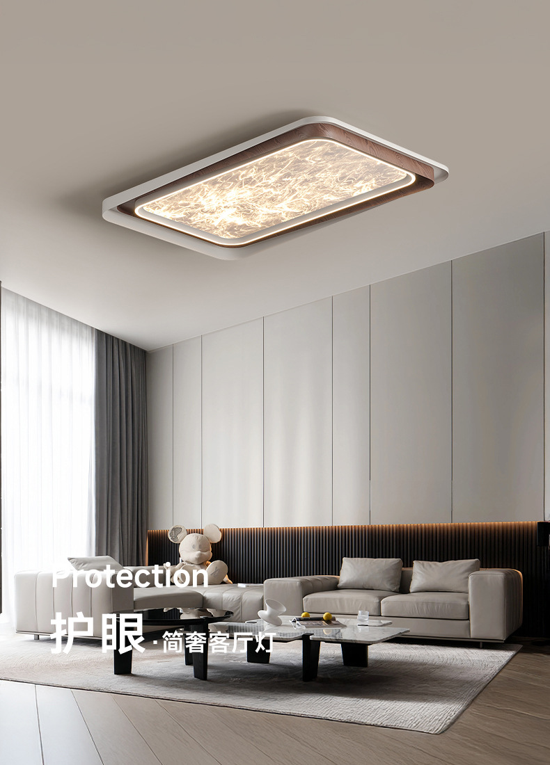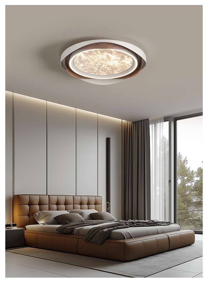 Lámpara de dormitorio de sala de estar de lujo ligero de estilo italiano, grano de madera, nube, acrílico, luz de techo anti-azul de espectro completo de alta gama