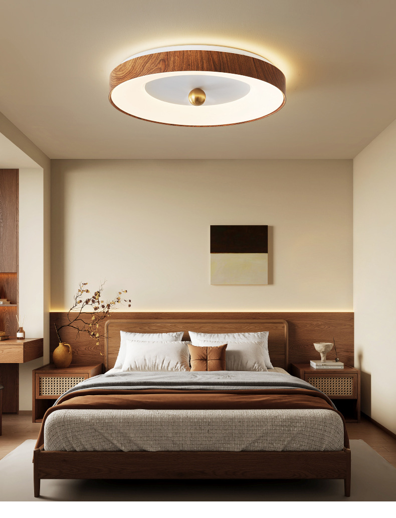 Nueva lámpara de dormitorio de color de madera de nogal de estilo chino simple y moderno estilo japonés nuevo estilo Wabi-Jifeng protección ocular dormitorio principal lámpara de estudio