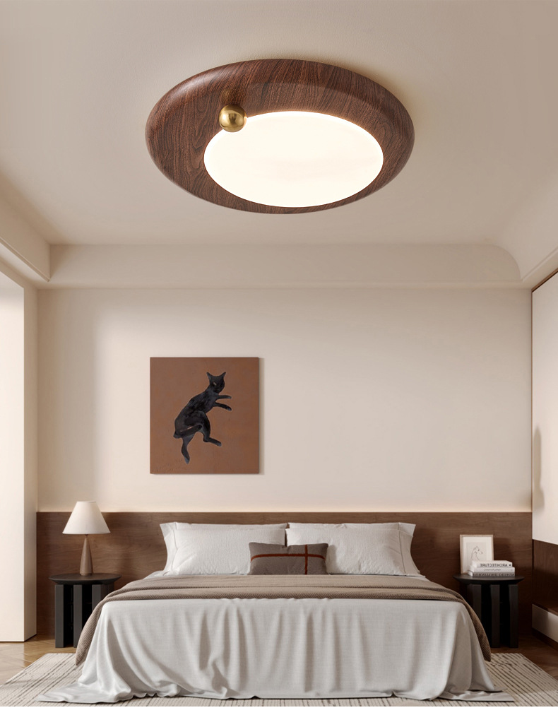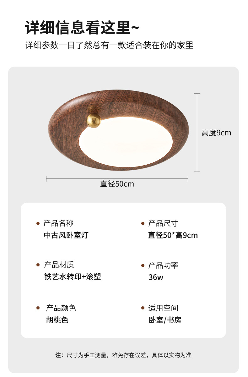 Lámpara de techo de dormitorio, estilo crema de color nogal retro, frijol dorado pequeño, lámpara de estudio de dormitorio principal, lámpara de estilo antiguo de Guangdong Zhongshan