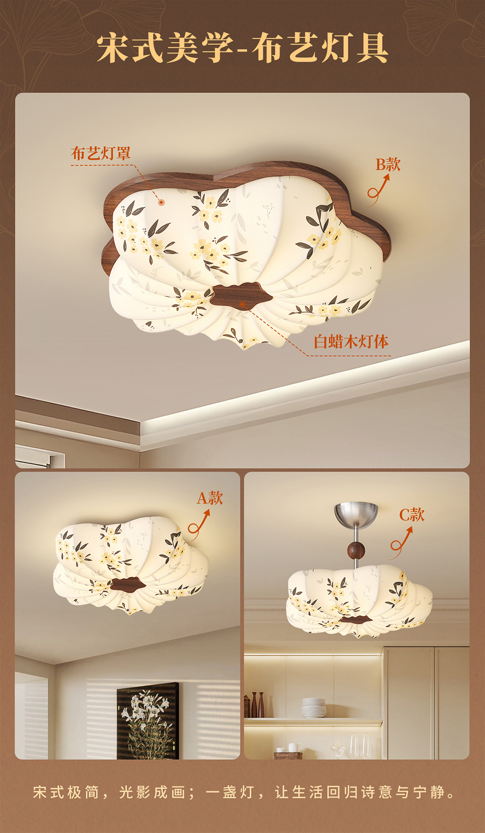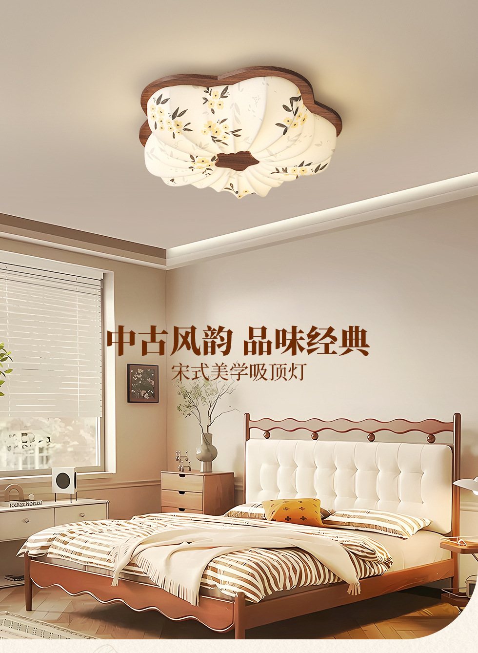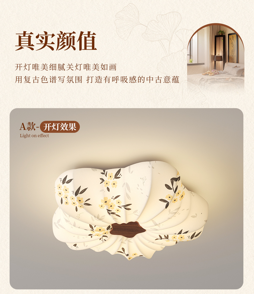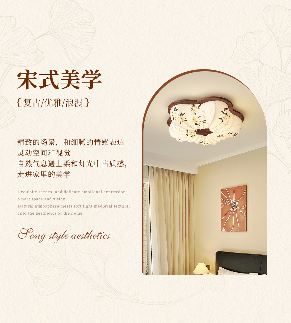 Estética de la dinastía Song, tela, lámpara de dormitorio, lámpara de techo de estilo antiguo, sala de estar, nueva lámpara de sala de estudio de estilo chino de alta gama floral
