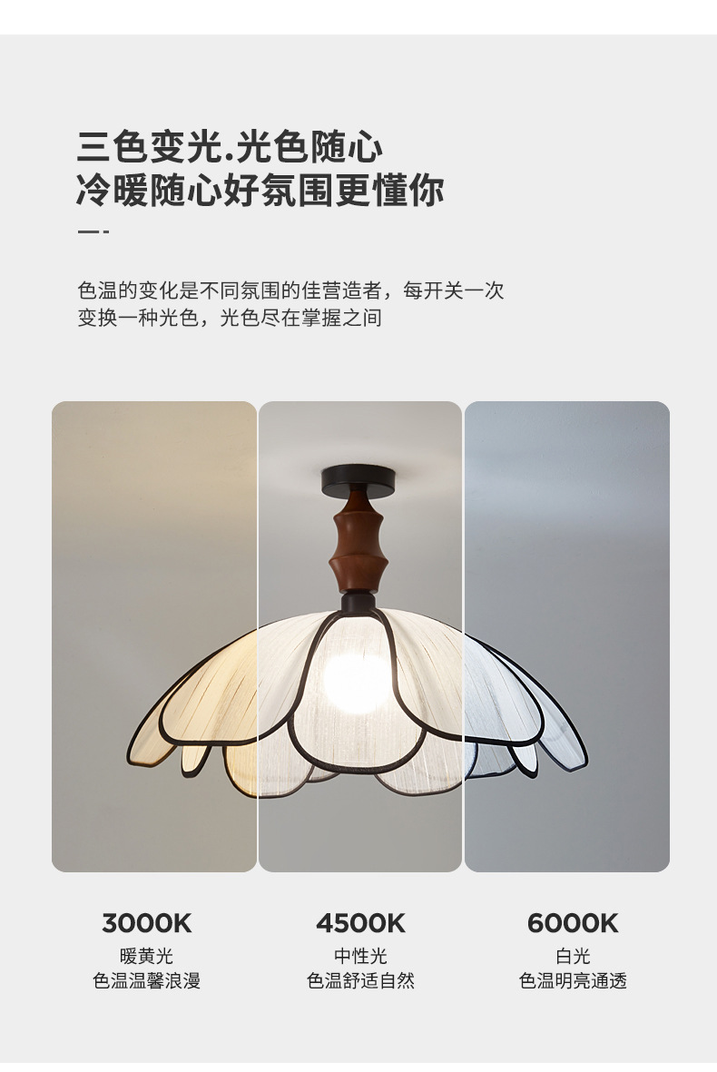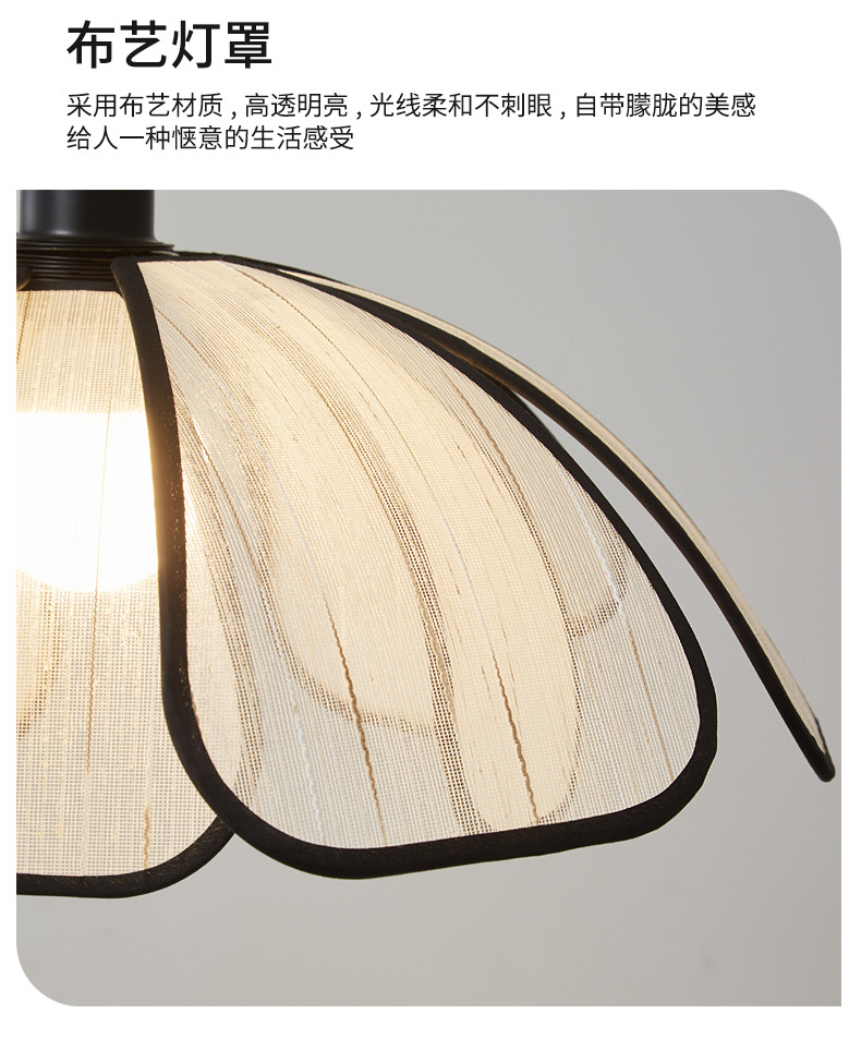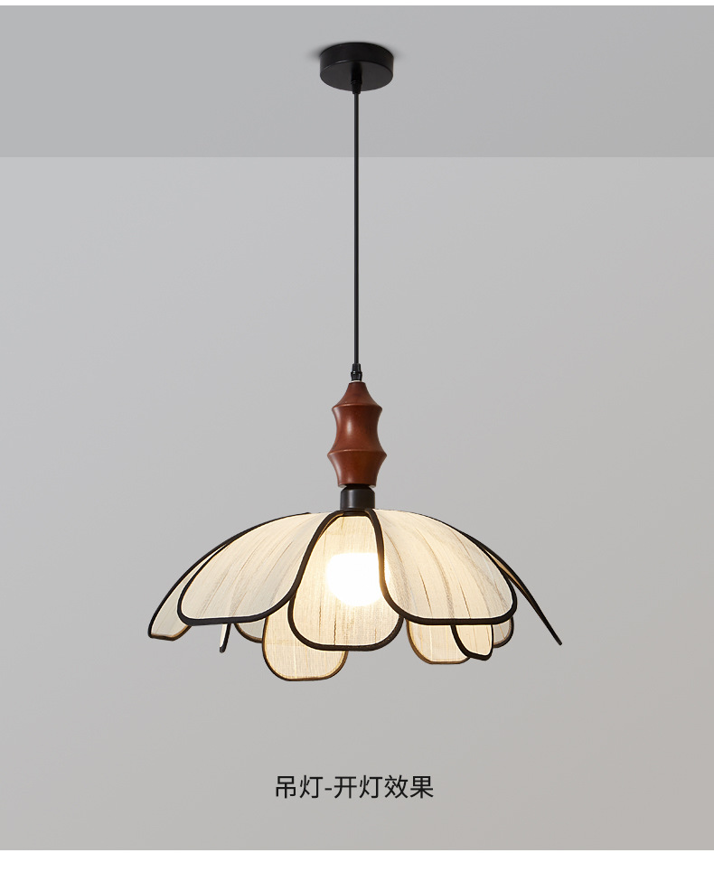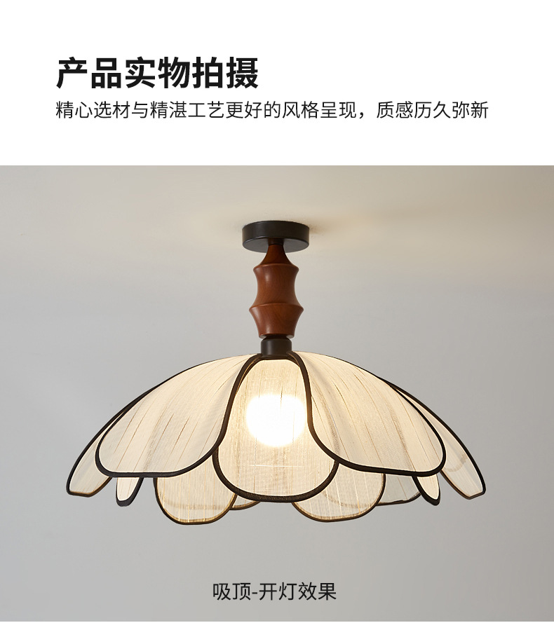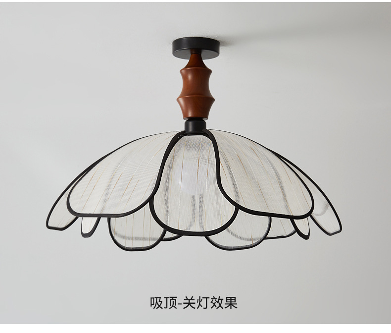 Techo de pétalo Estilo antiguo francés Arte avanzado Lámparas de habitación Lámparas de dormitorio de tela de madera maciza retro japonesa