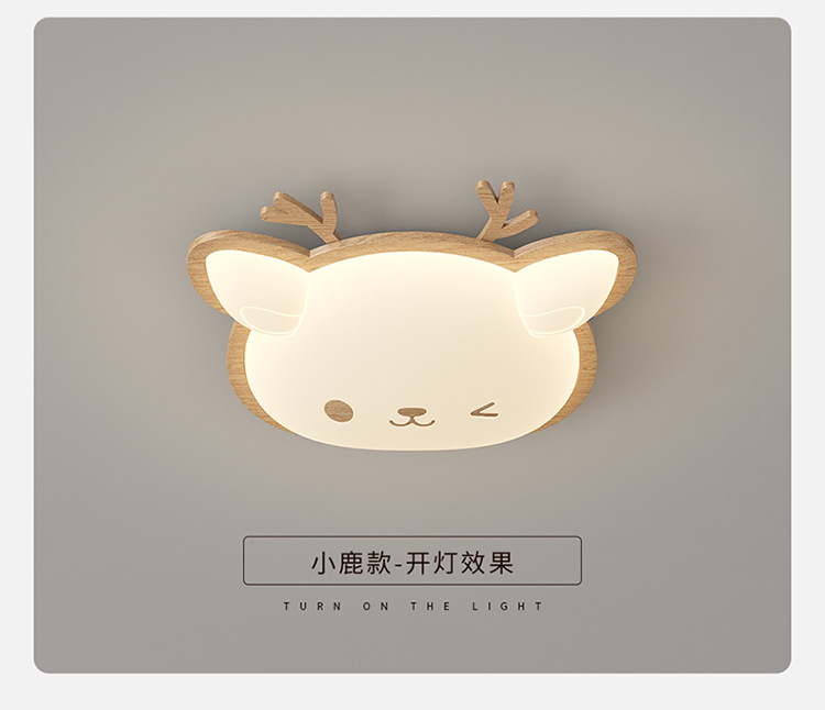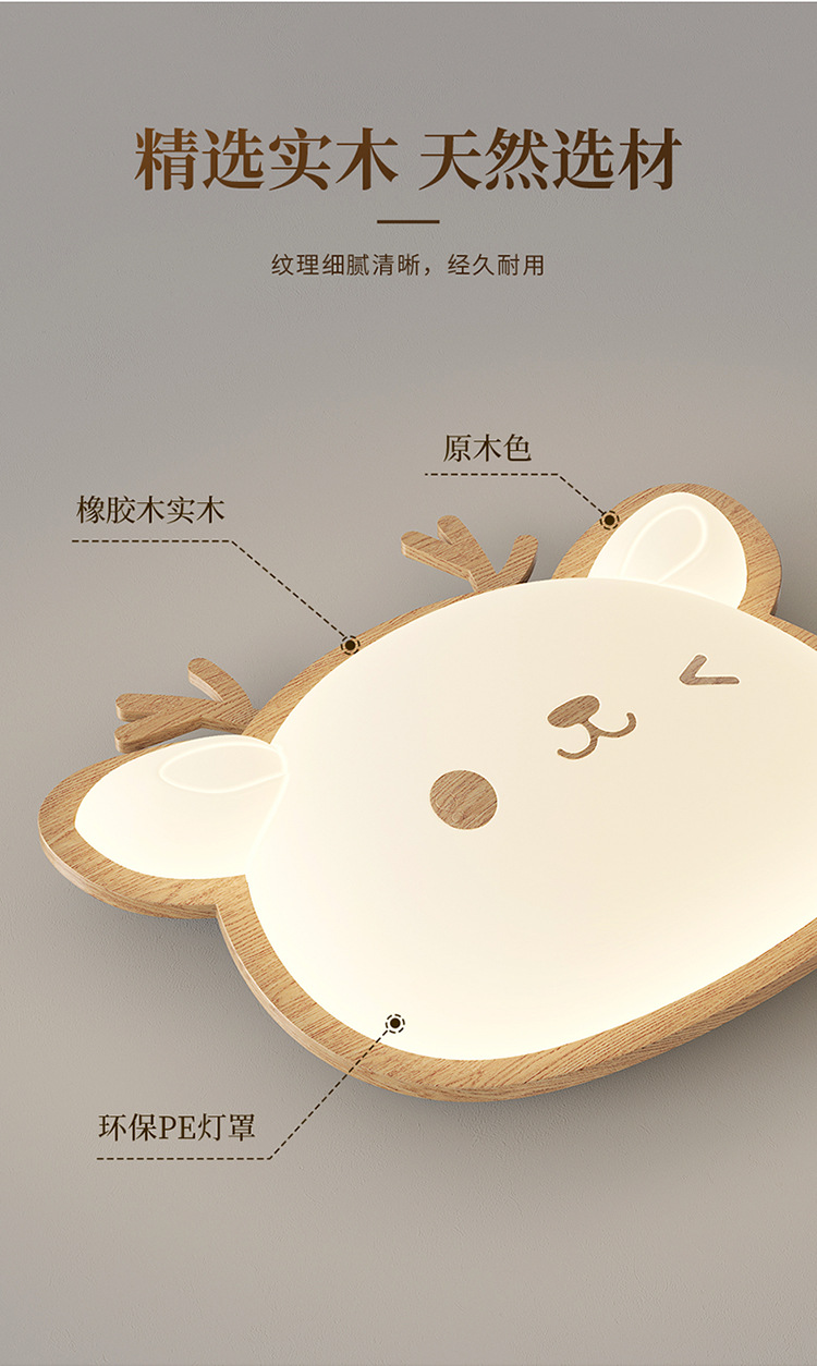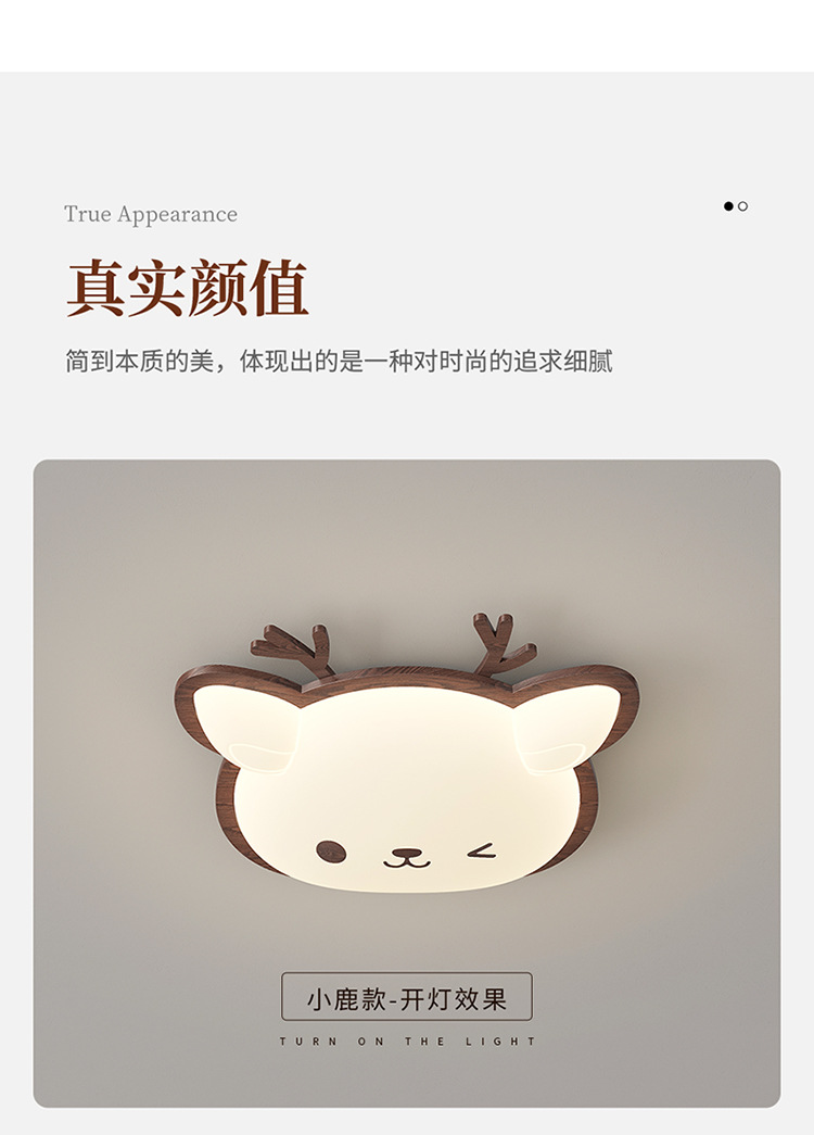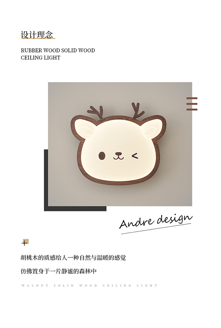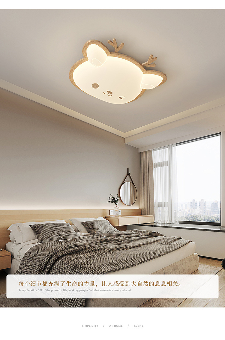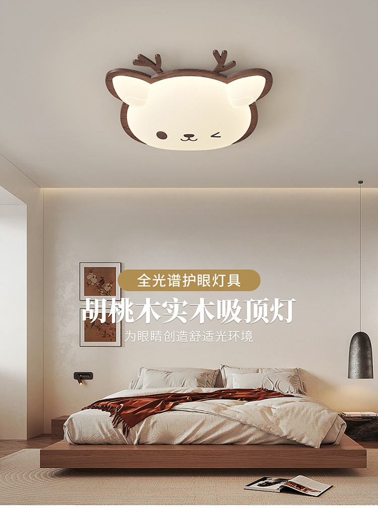 Lámpara de habitación para niños Lámpara de dormitorio principal para niños y niñas Lámpara de techo de protección ocular de espectro completo Lámpara de viento de madera de nogal crema de ciervo