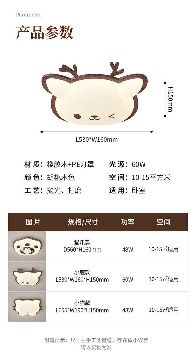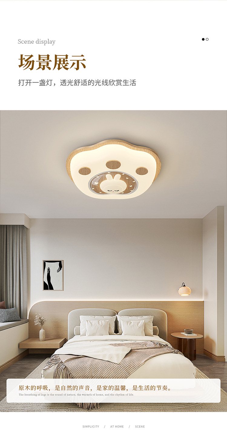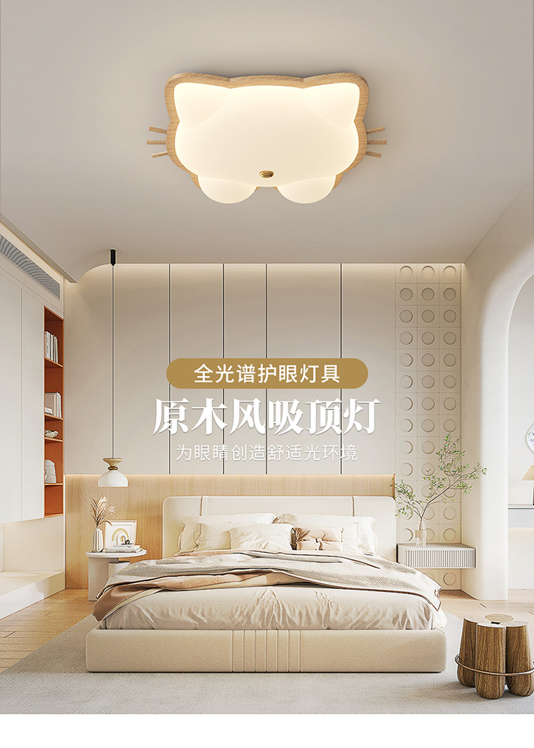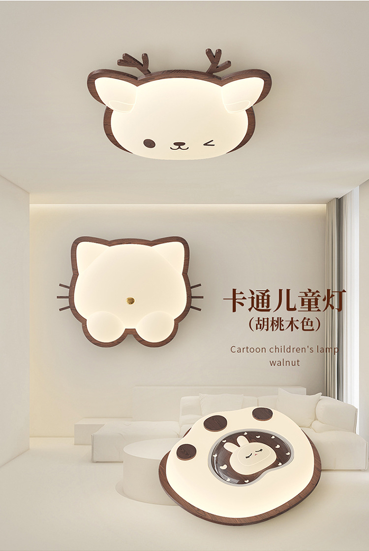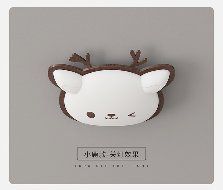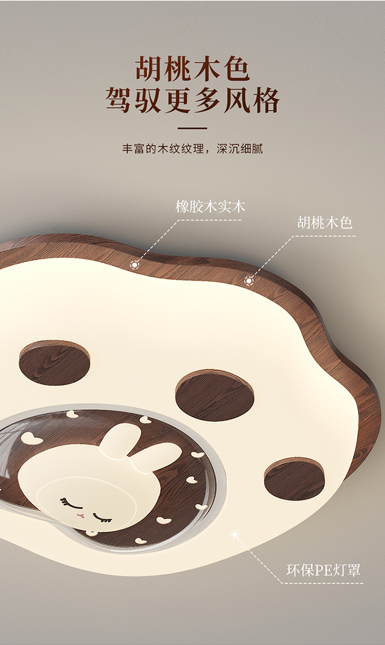 Lámpara de habitación para niños Lámpara de dormitorio principal para niños y niñas Lámpara de techo de protección ocular de espectro completo Lámpara de viento de madera de nogal crema de ciervo