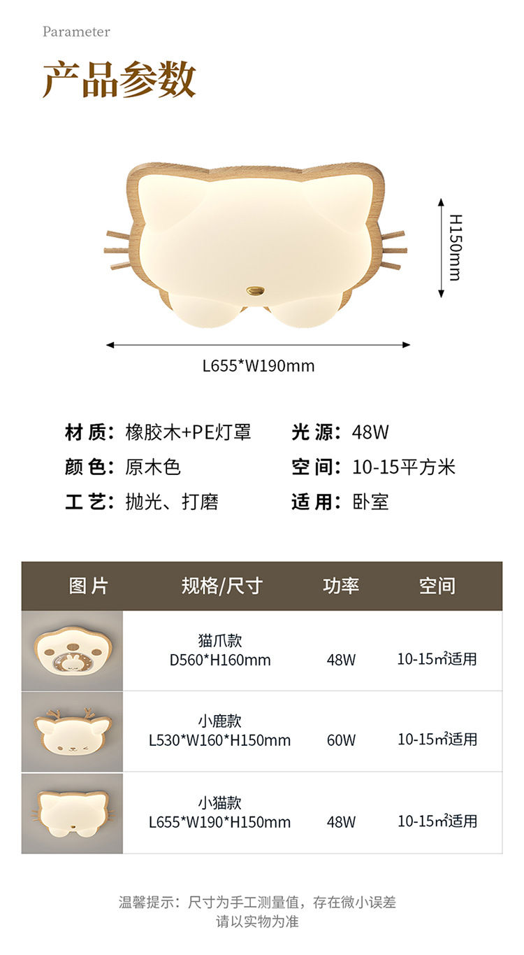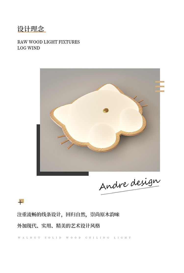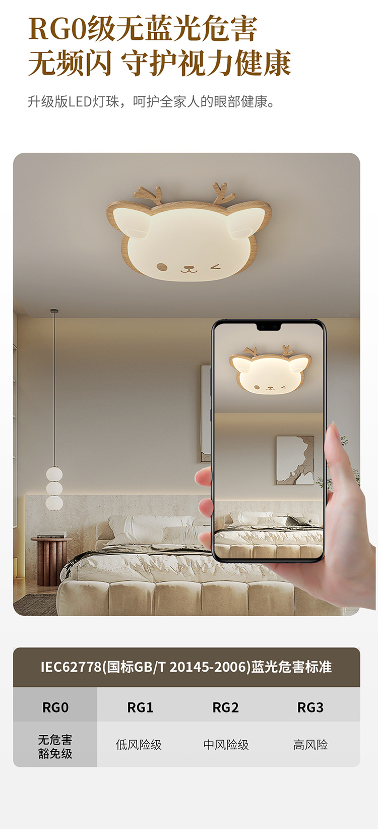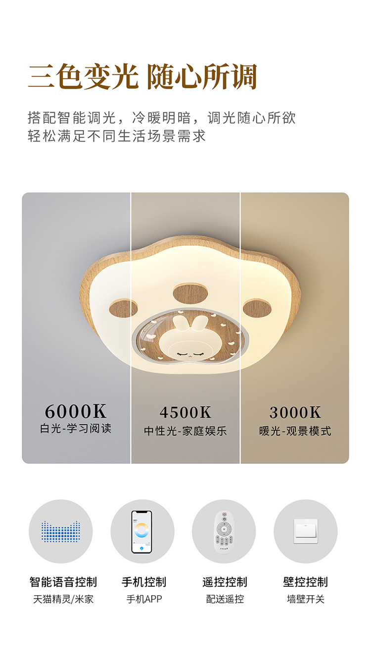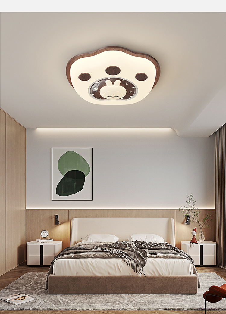 Lámpara de habitación para niños Lámpara de dormitorio principal para niños y niñas Lámpara de techo de protección ocular de espectro completo Lámpara de viento de madera de nogal crema de ciervo