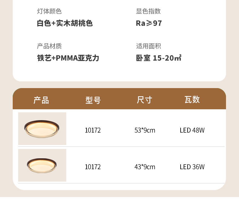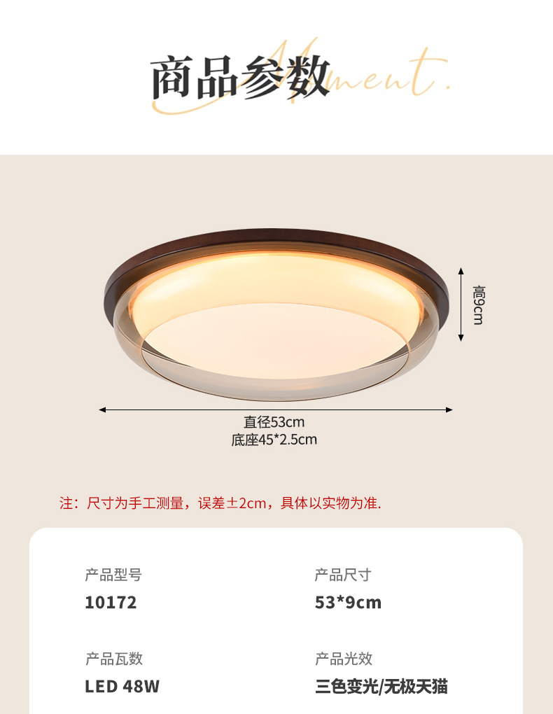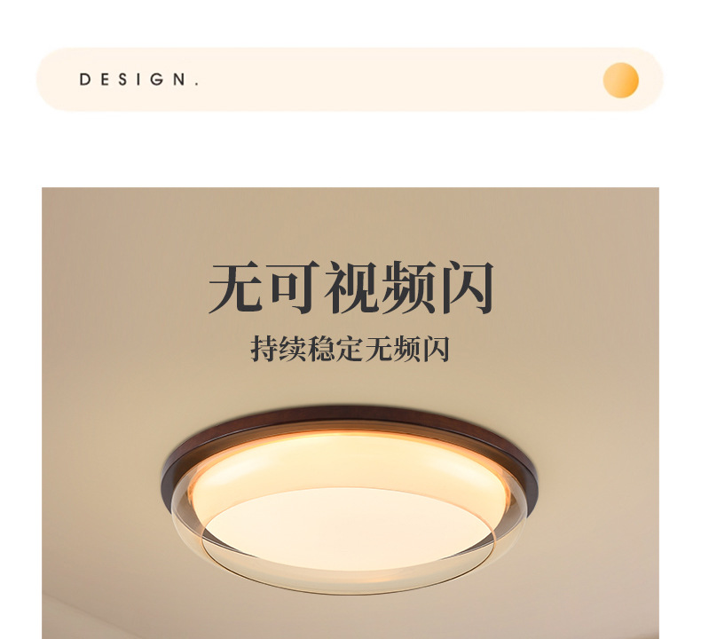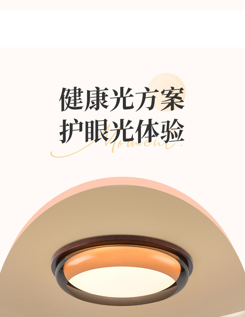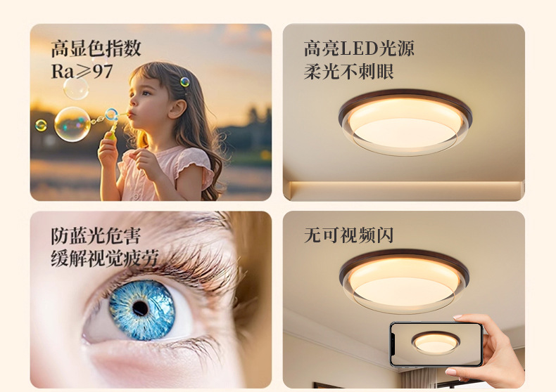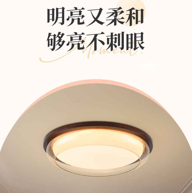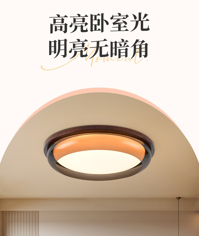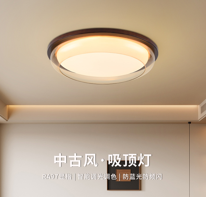 Lámpara de techo de estilo antiguo, lámpara de dormitorio de protección ocular de espectro completo, madera de nogal negro, lámpara de comedor minimalista moderna, lámpara de Zhongshan