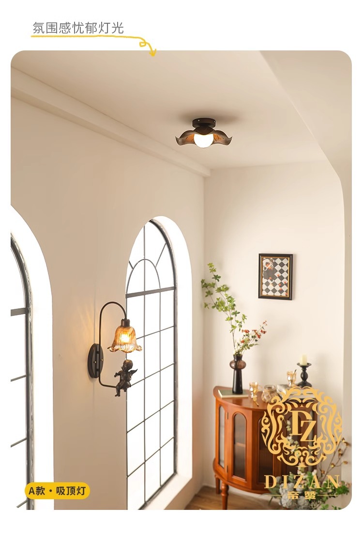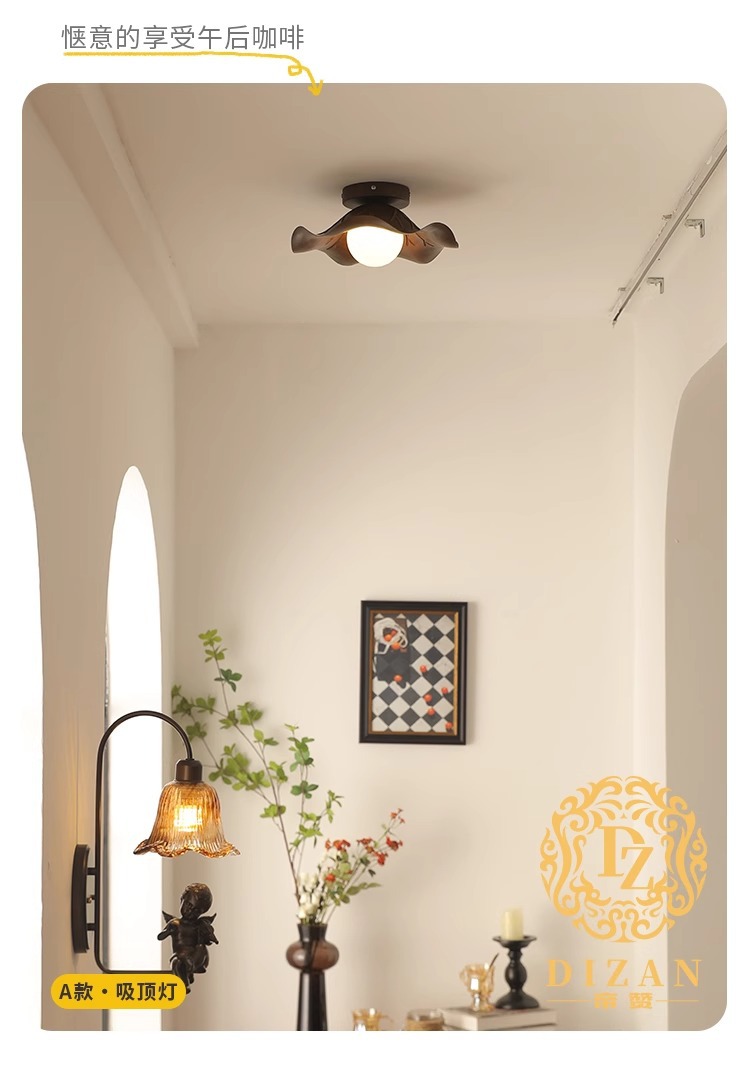 Luz de pasillo de entrada francesa Flor antigua Luz de techo de balcón Estilo americano Retro 2024 Nueva luz de pasillo de guardarropa