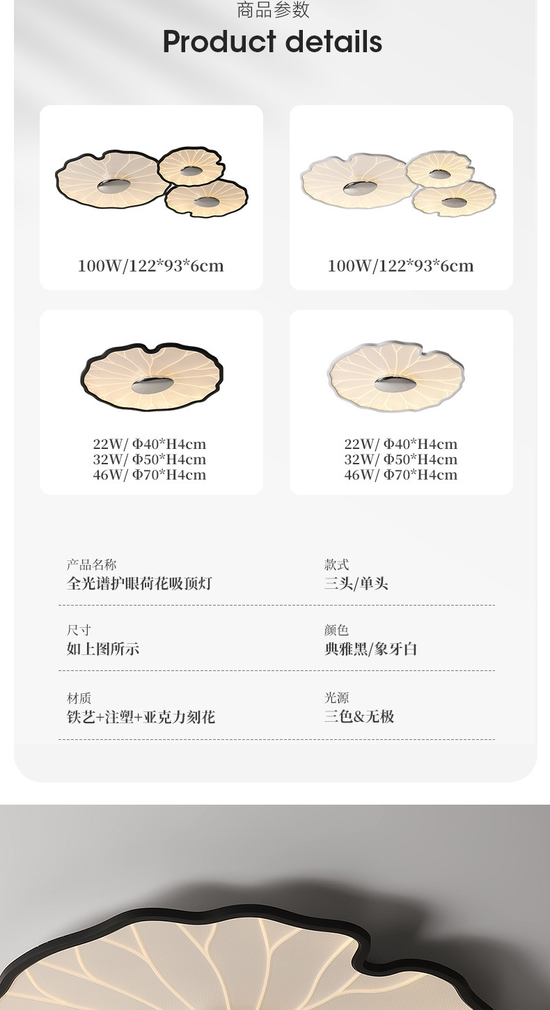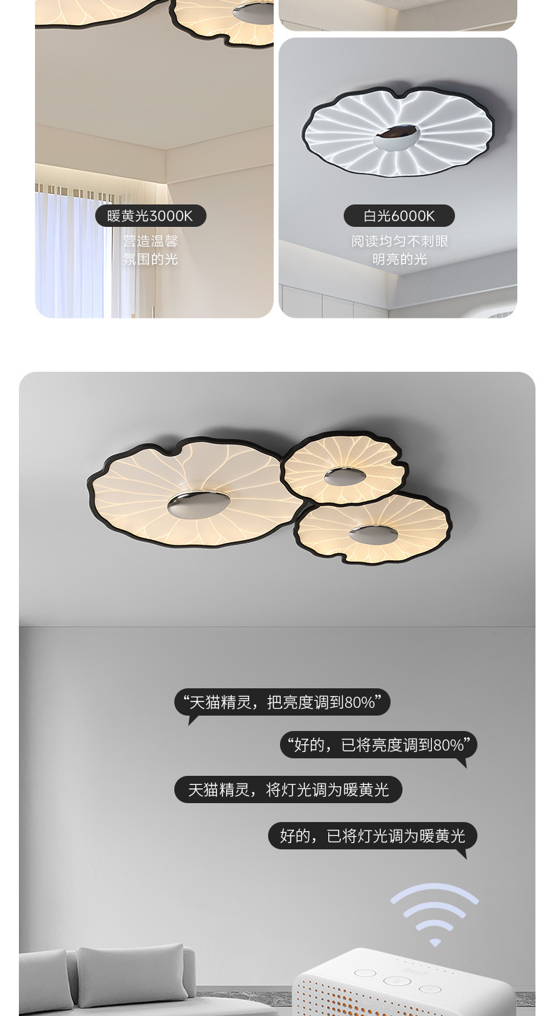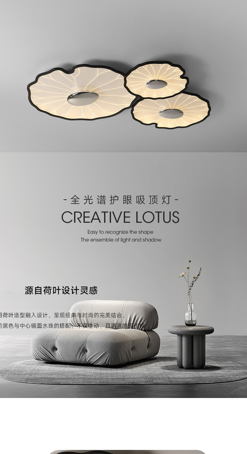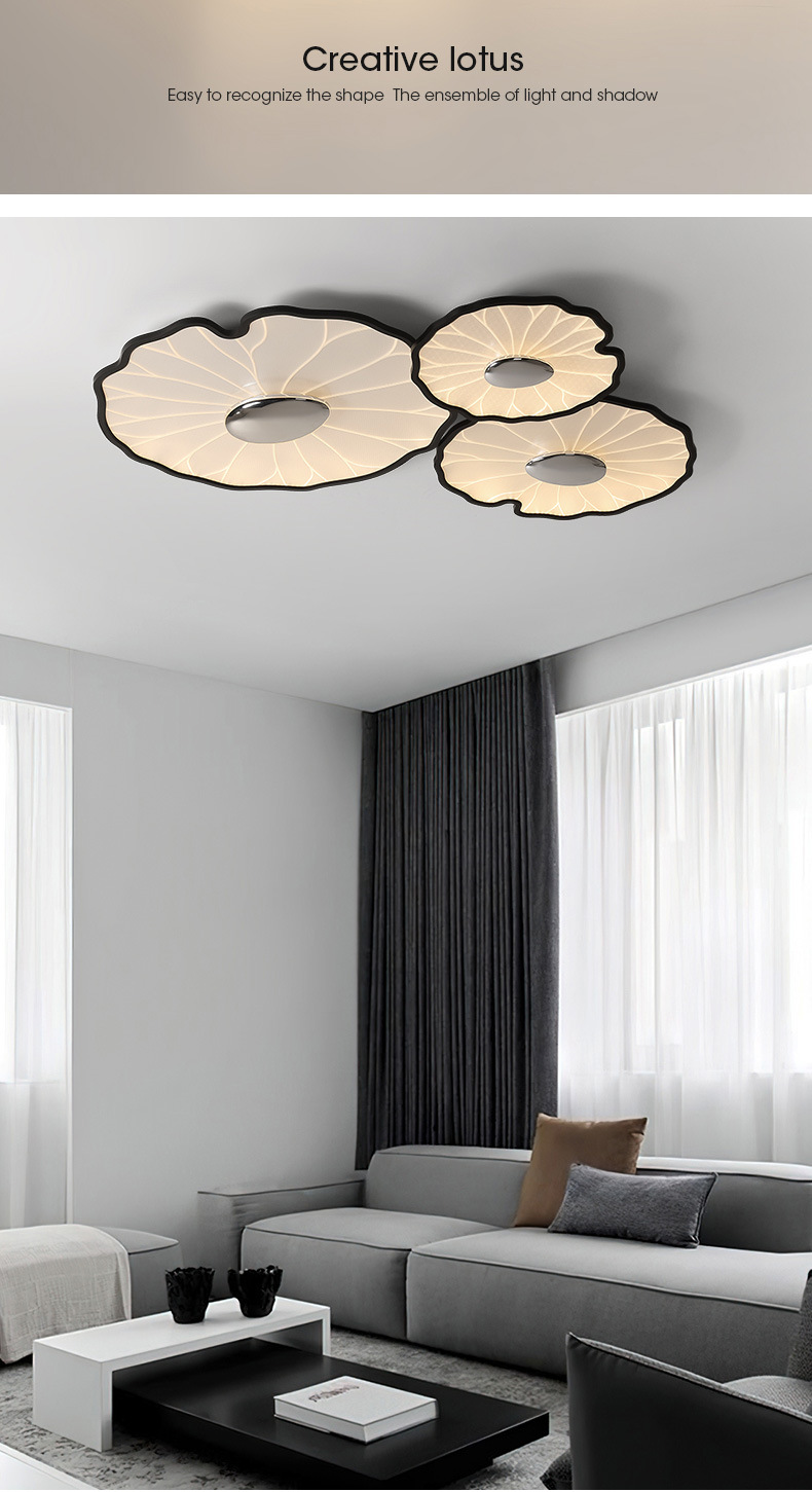 2025 nueva lámpara de techo minimalista moderna flor hoja de loto espectro completo sala de estar dormitorio comedor inteligente ultrafino protección ocular