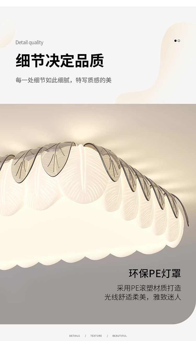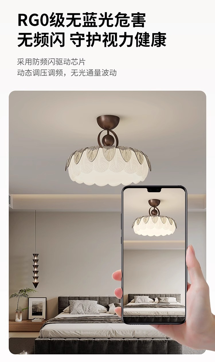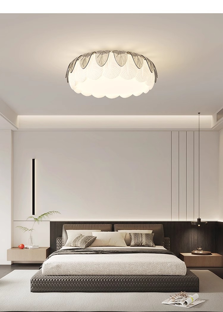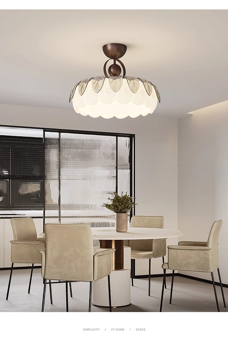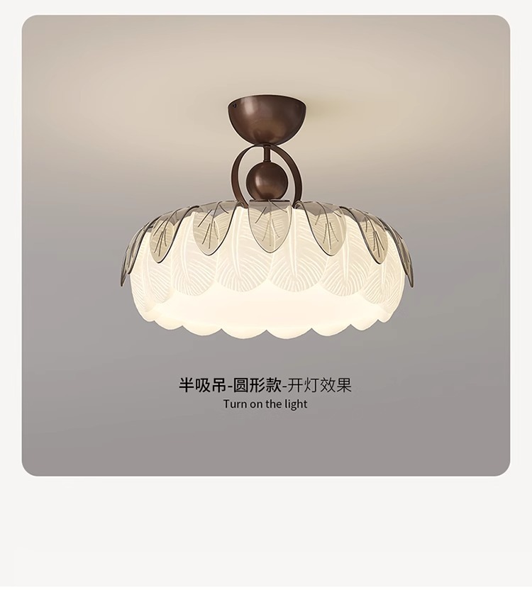 Lámpara de techo de sala de estar de hojas creativas de estilo crema, lámpara de dormitorio principal simple y moderna, lámpara de sala de estudio de comedor de habitación cálida