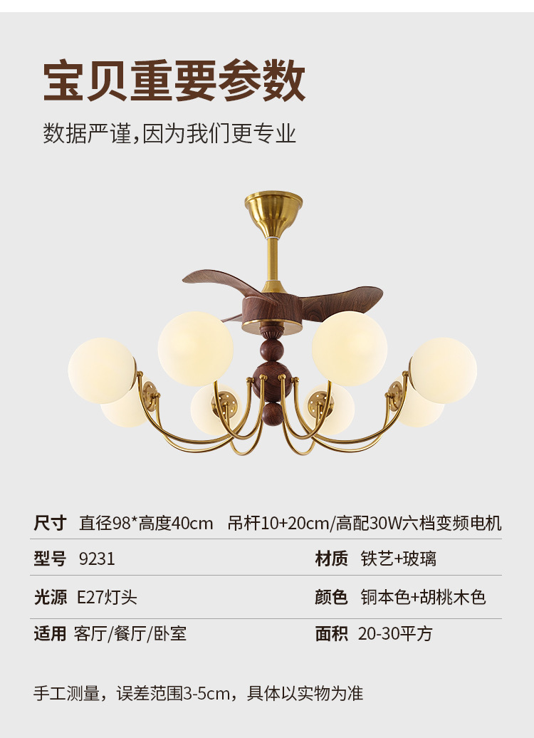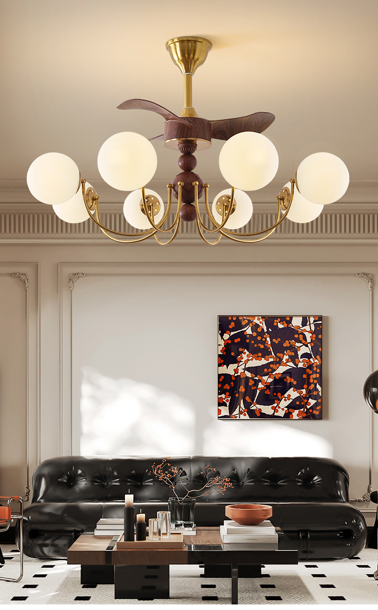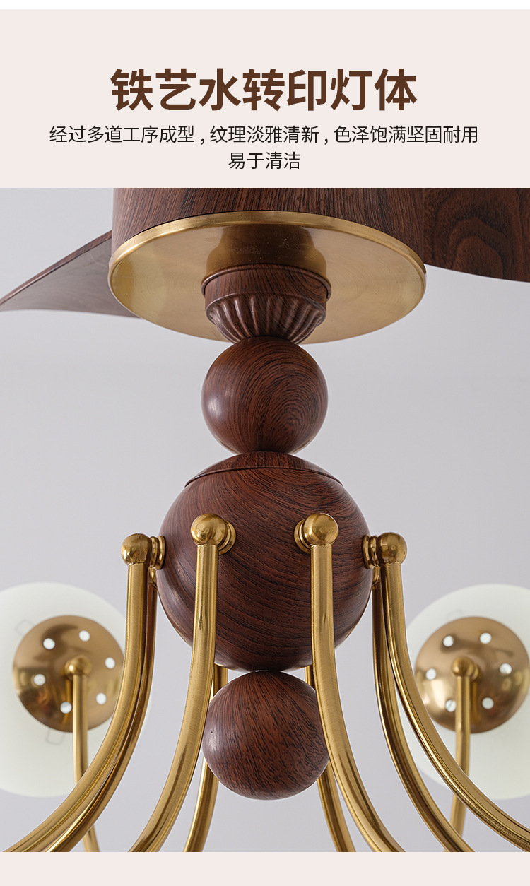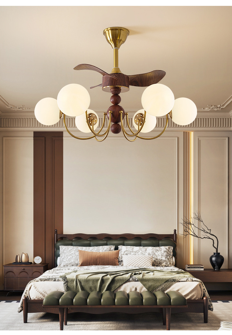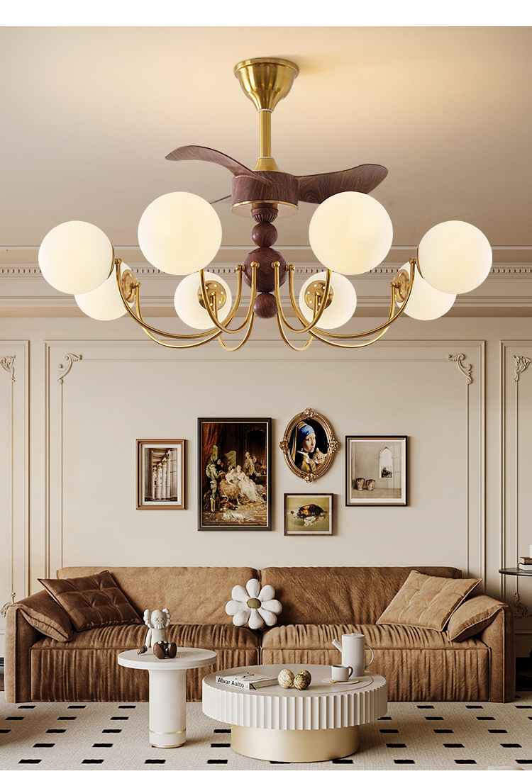 Araña de frijol mágico de estilo antiguo francés, lámpara de ventilador de techo de una pieza, sala retro americana, lámpara de ventilador de sala de estar, lámpara de araña, lámpara de comedor
