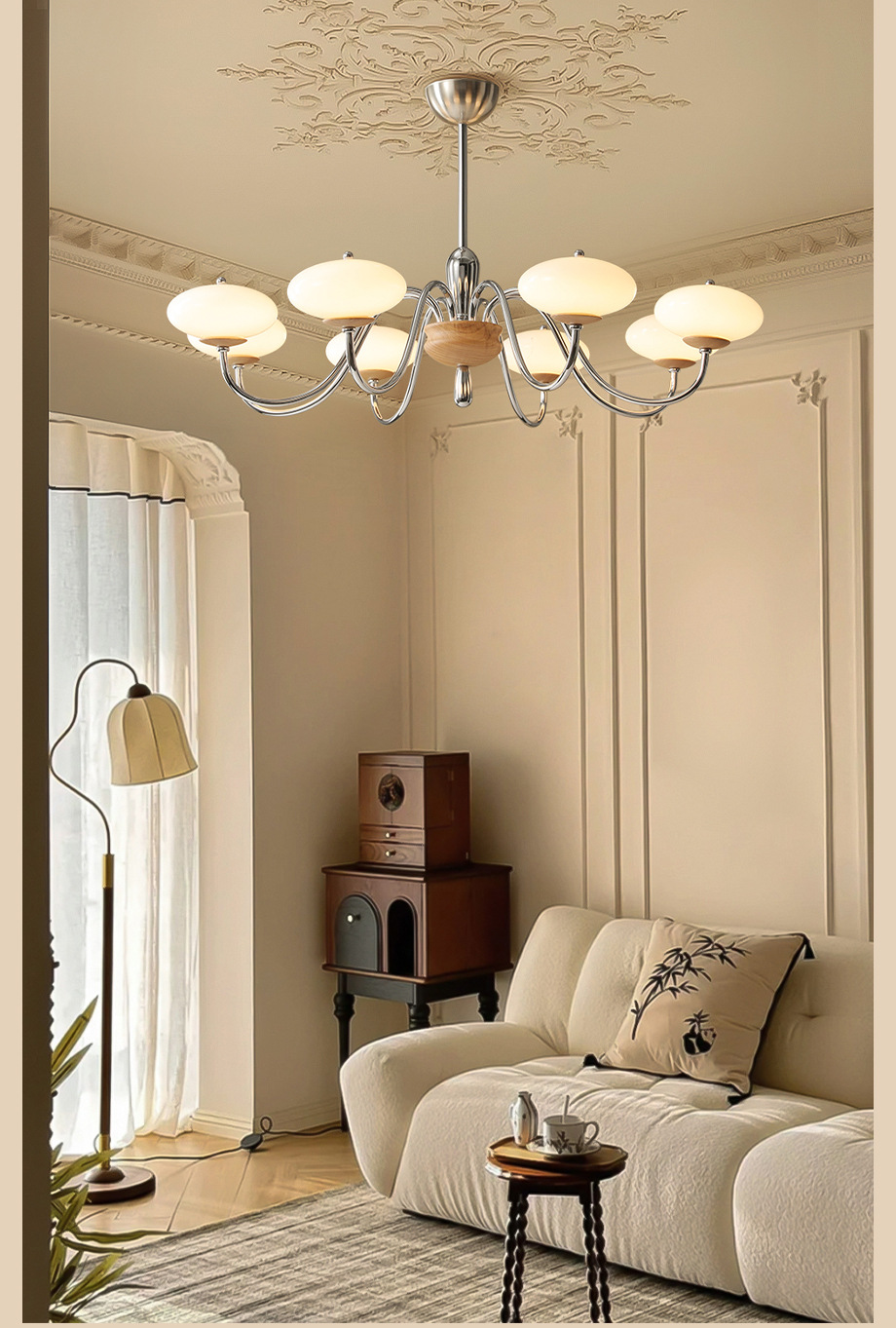 Araña retro francesa de estilo medio, lámpara principal de dormitorio y sala de estar, nueva lámpara de comedor de sala de estudio simple y de alta gama de estilo chino americano