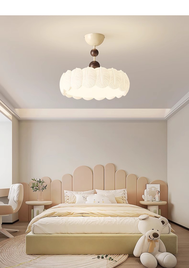 [Seleccionado] Lámpara de techo de estilo crema medieval francesa, plumas creativas retro, dormitorio principal cálido y romántico