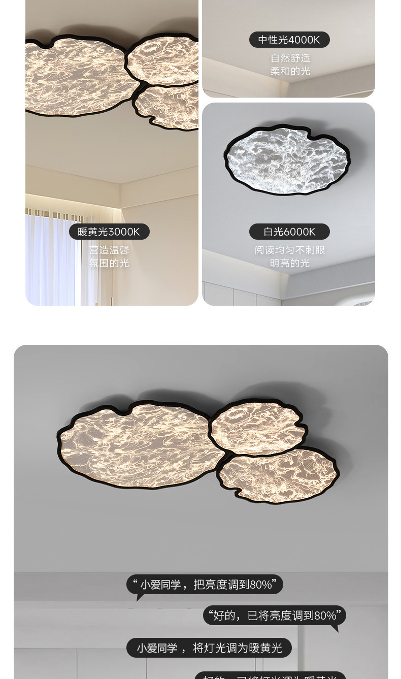 Nube 3D moderno minimalista sala de estar lámpara de techo dormitorio inteligente de espectro completo protección ocular de alto brillo lámpara inteligente para el hogar