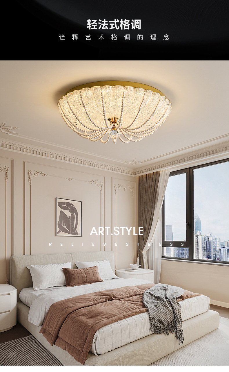 Lámpara de cristal de calabaza medieval francesa, lámpara de dormitorio principal moderna de lujo ligero, personalidad creativa, atmósfera, lámpara de techo de porche de dormitorio