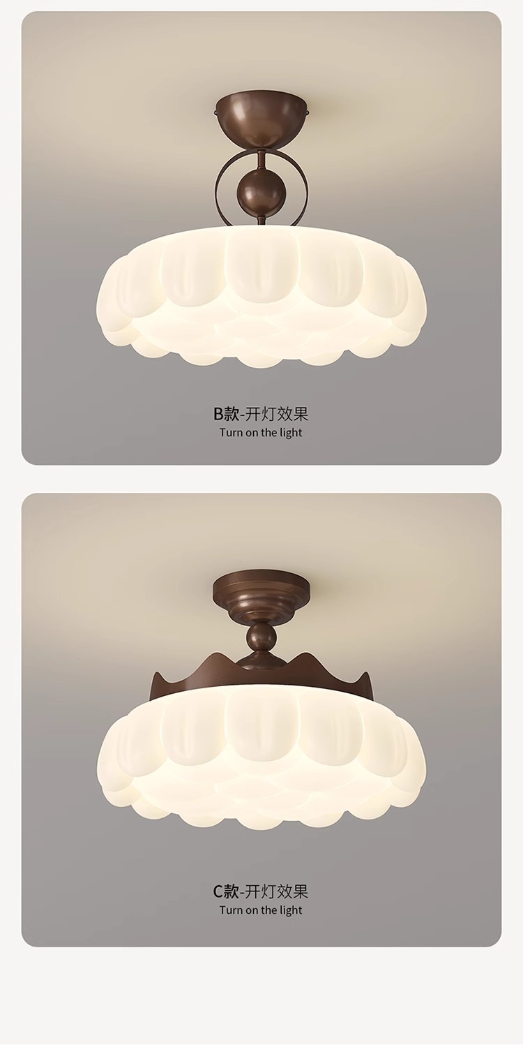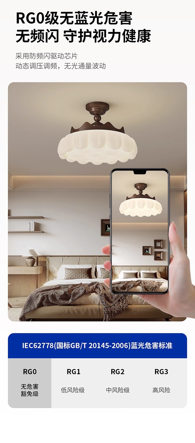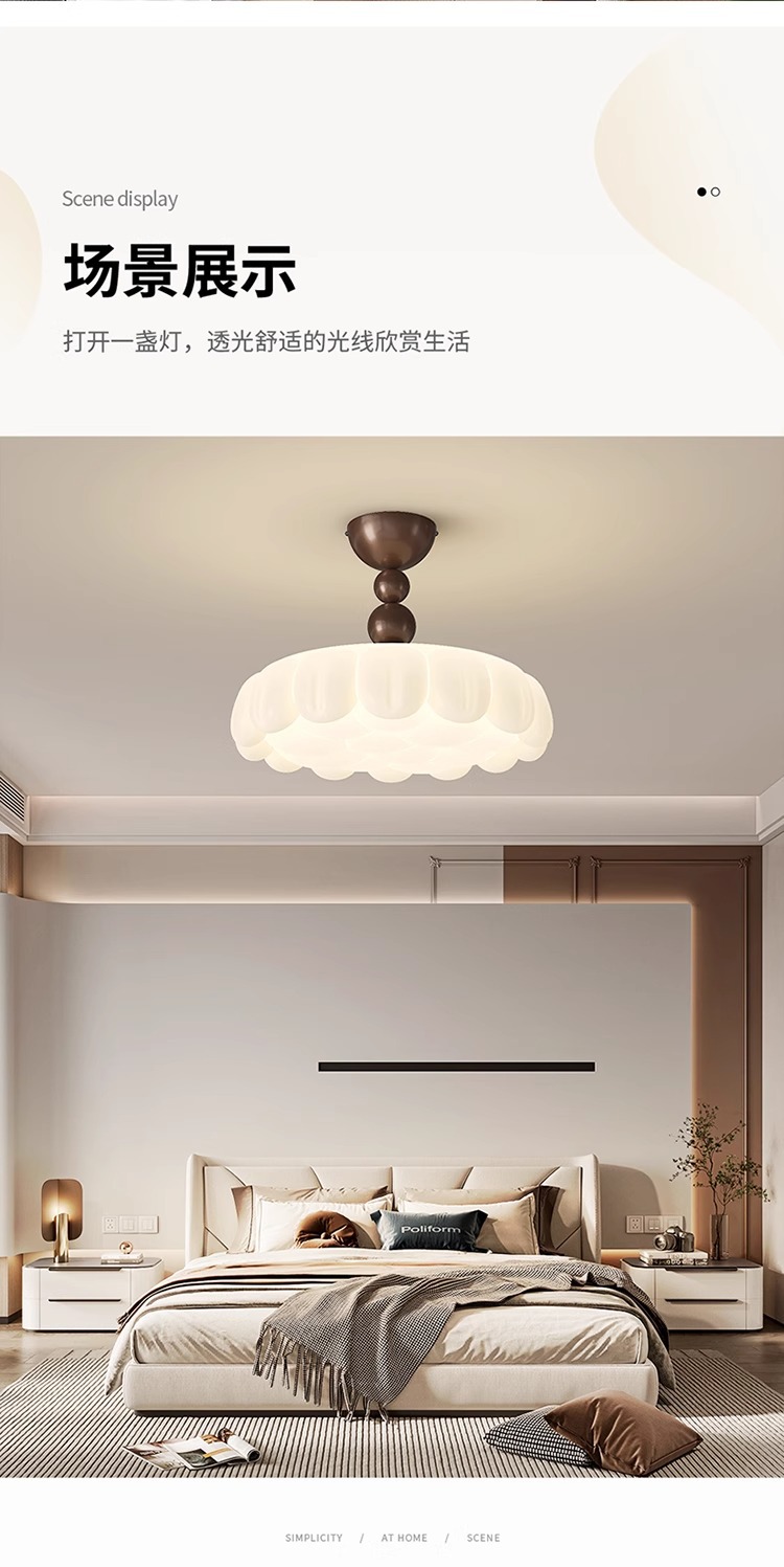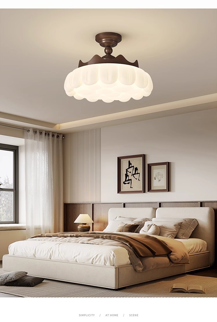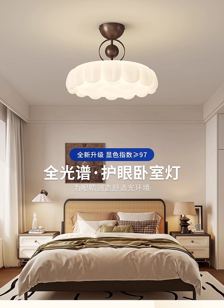 Lámpara de techo de dormitorio de estilo antiguo francés, flor de madera de nogal retro, estilo crema, lámpara de habitación del dormitorio principal 2025 nuevo