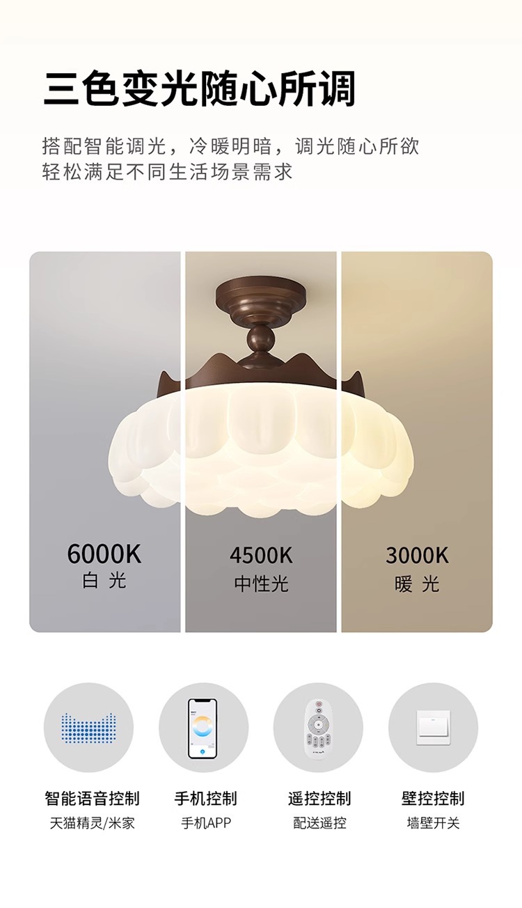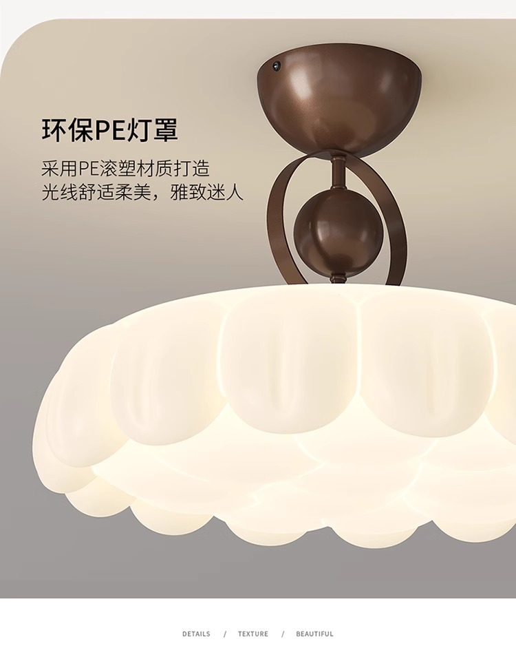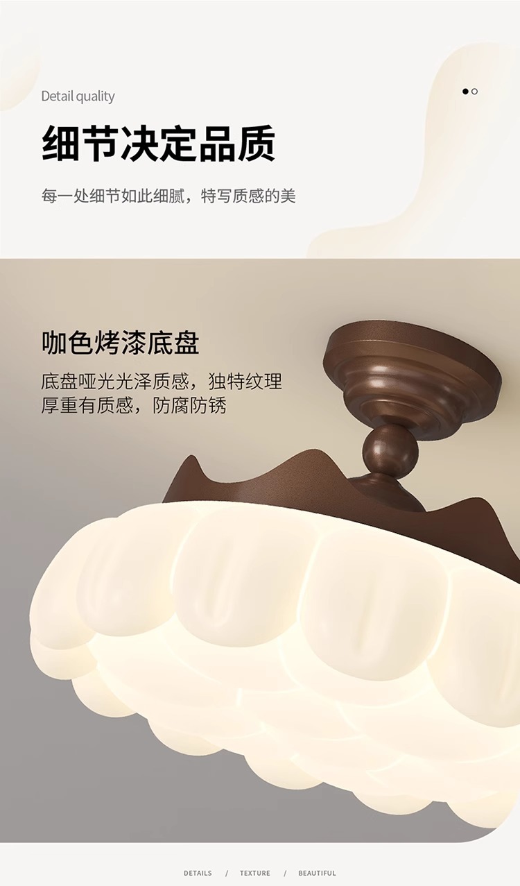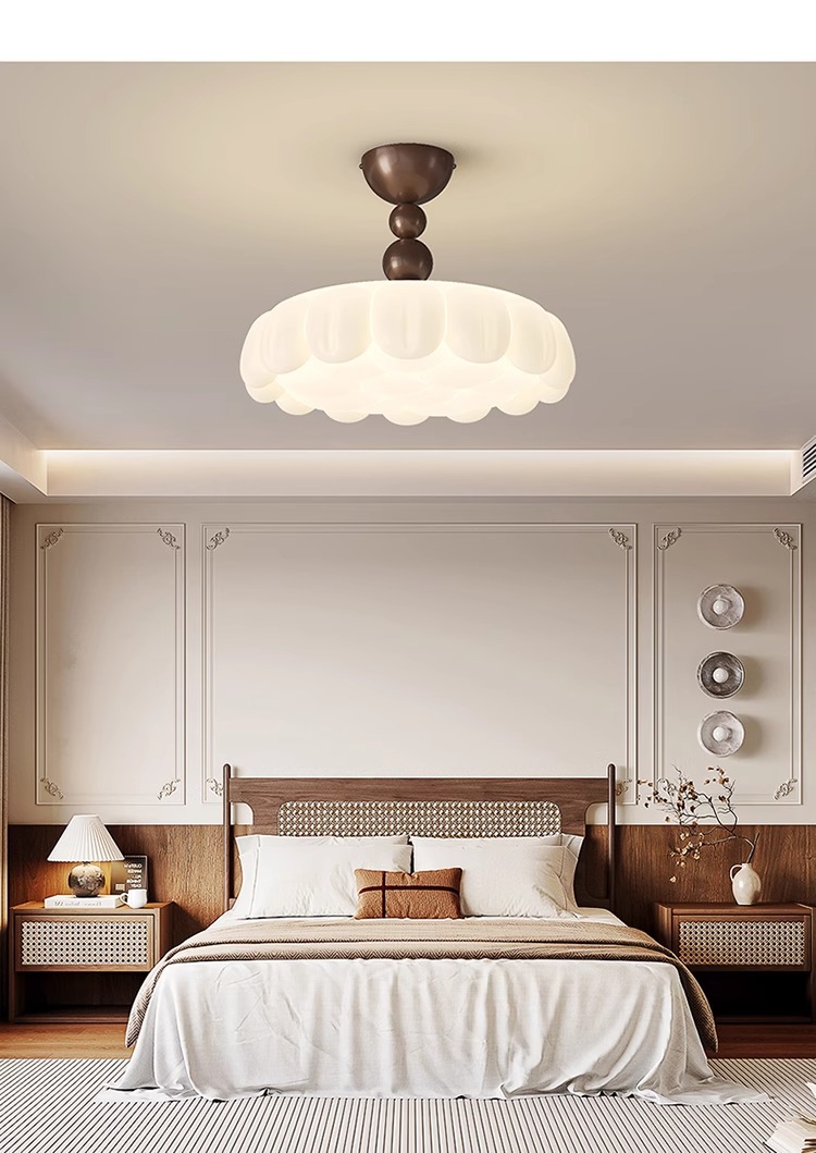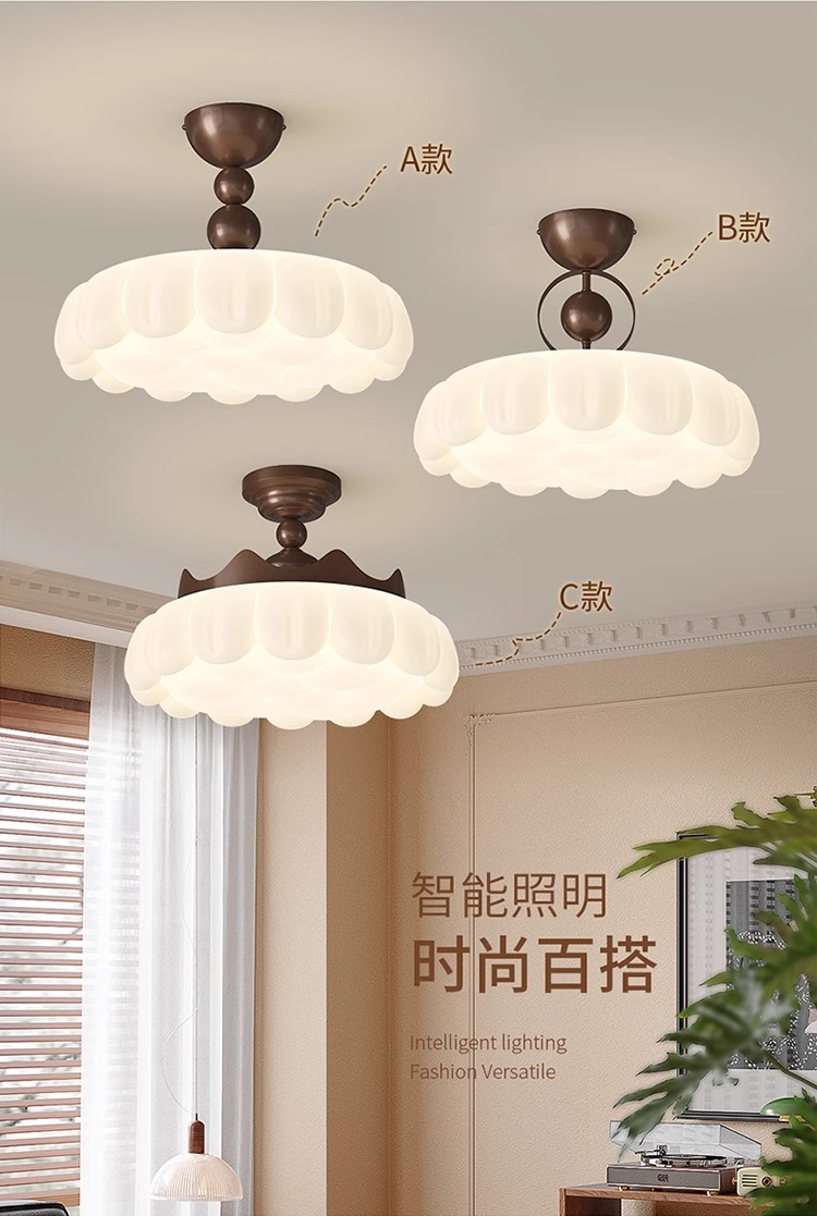 Lámpara de techo de dormitorio de estilo antiguo francés, flor de madera de nogal retro, estilo crema, lámpara de habitación del dormitorio principal 2025 nuevo
