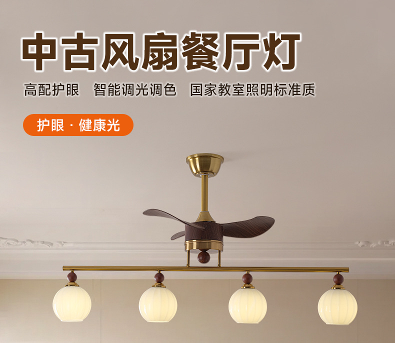 Lámpara de ventilador medieval, dormitorio principal de restaurante, lámpara de ventilador eléctrico, lámpara de ventilador de techo creativa retro francesa, lámpara de ventilador de techo de estudio americano