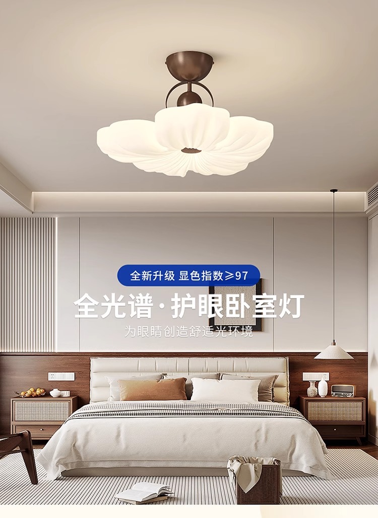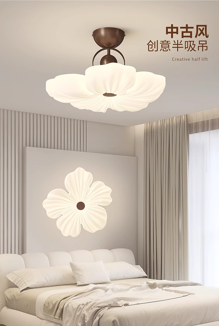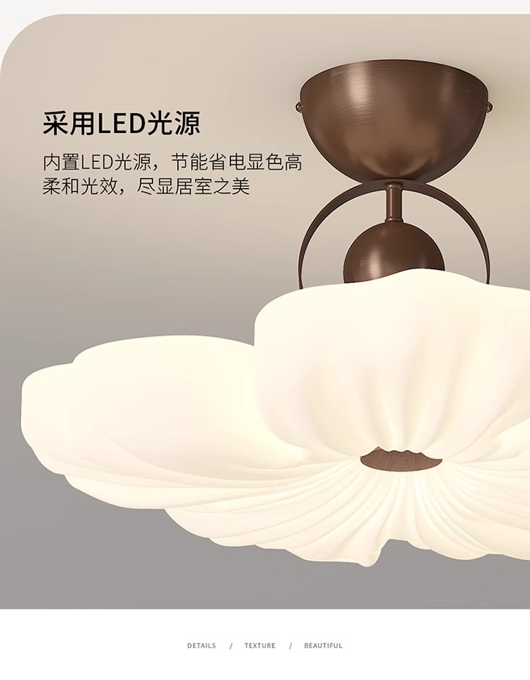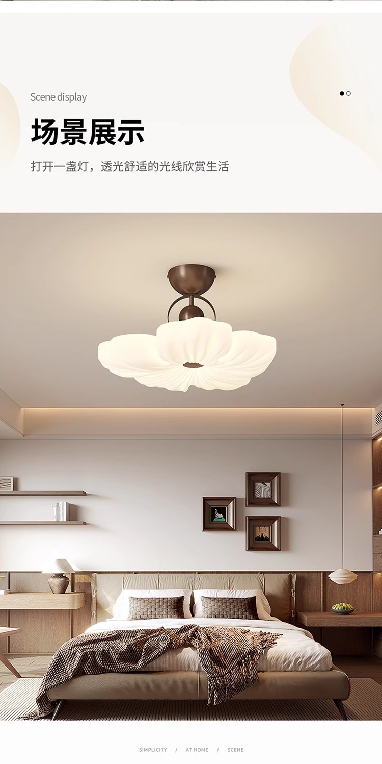 Lámpara de techo de flores de estilo medio, lámpara de habitación del dormitorio principal, restaurante retro francés, sala de estudio, salón de té, marrón de alta calidad
