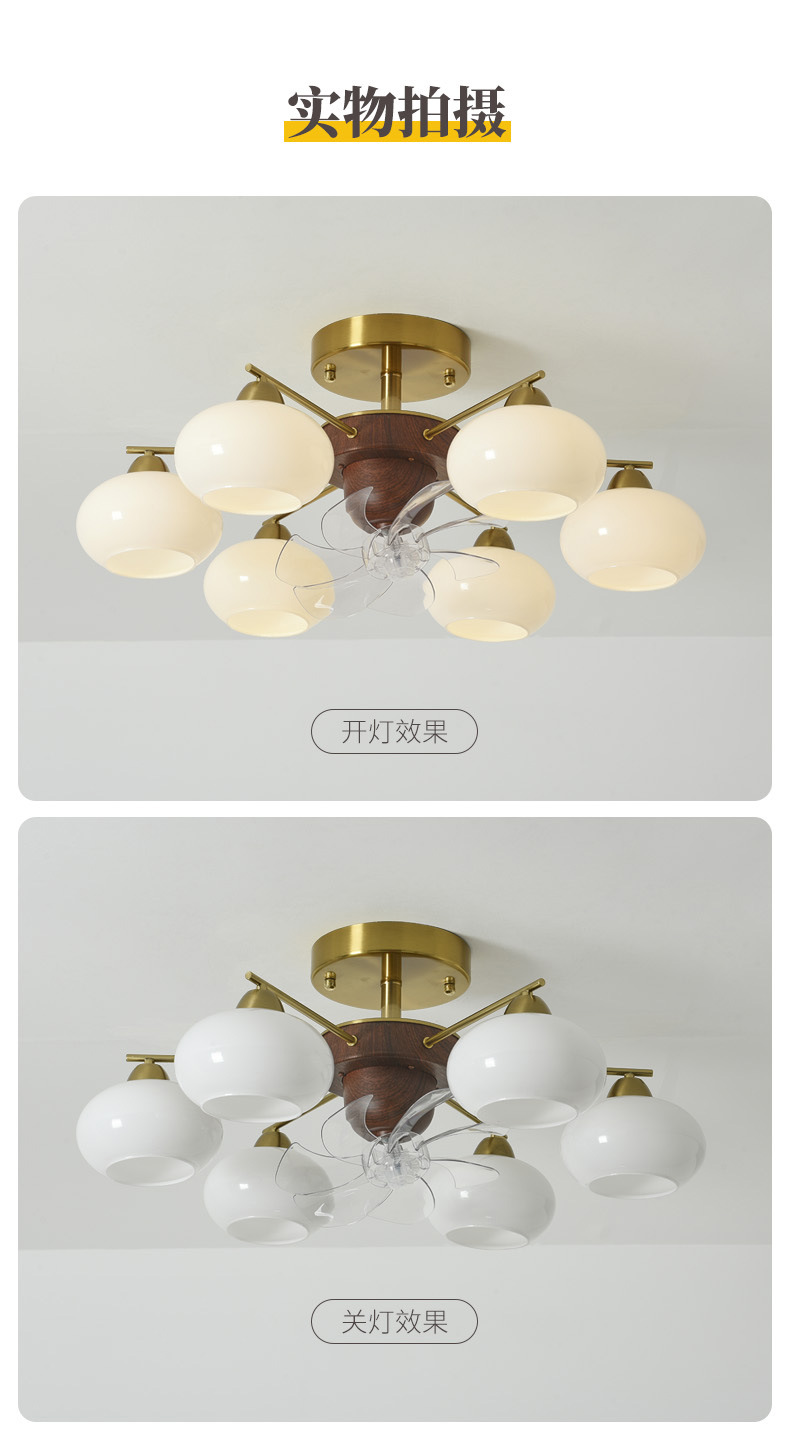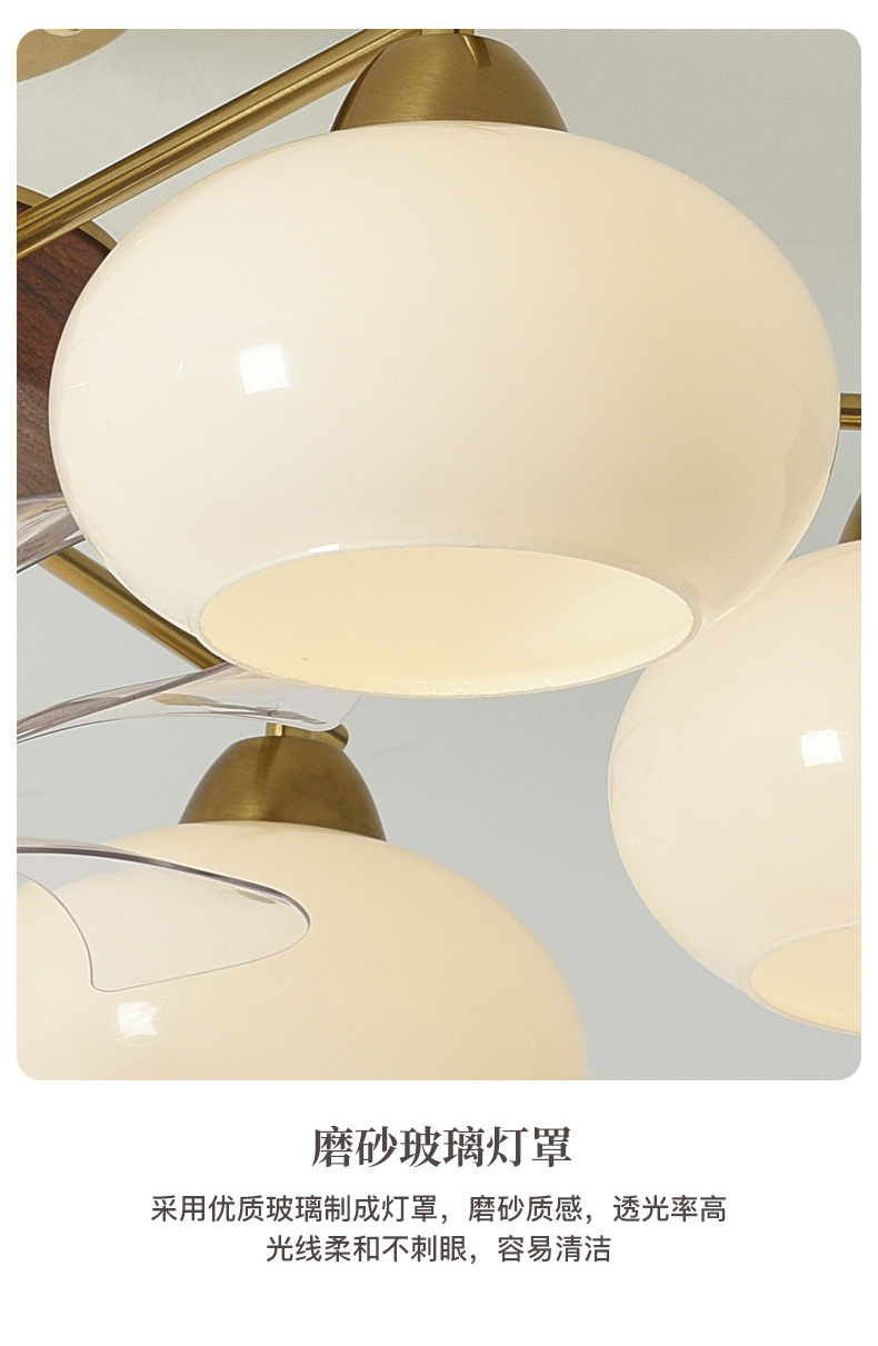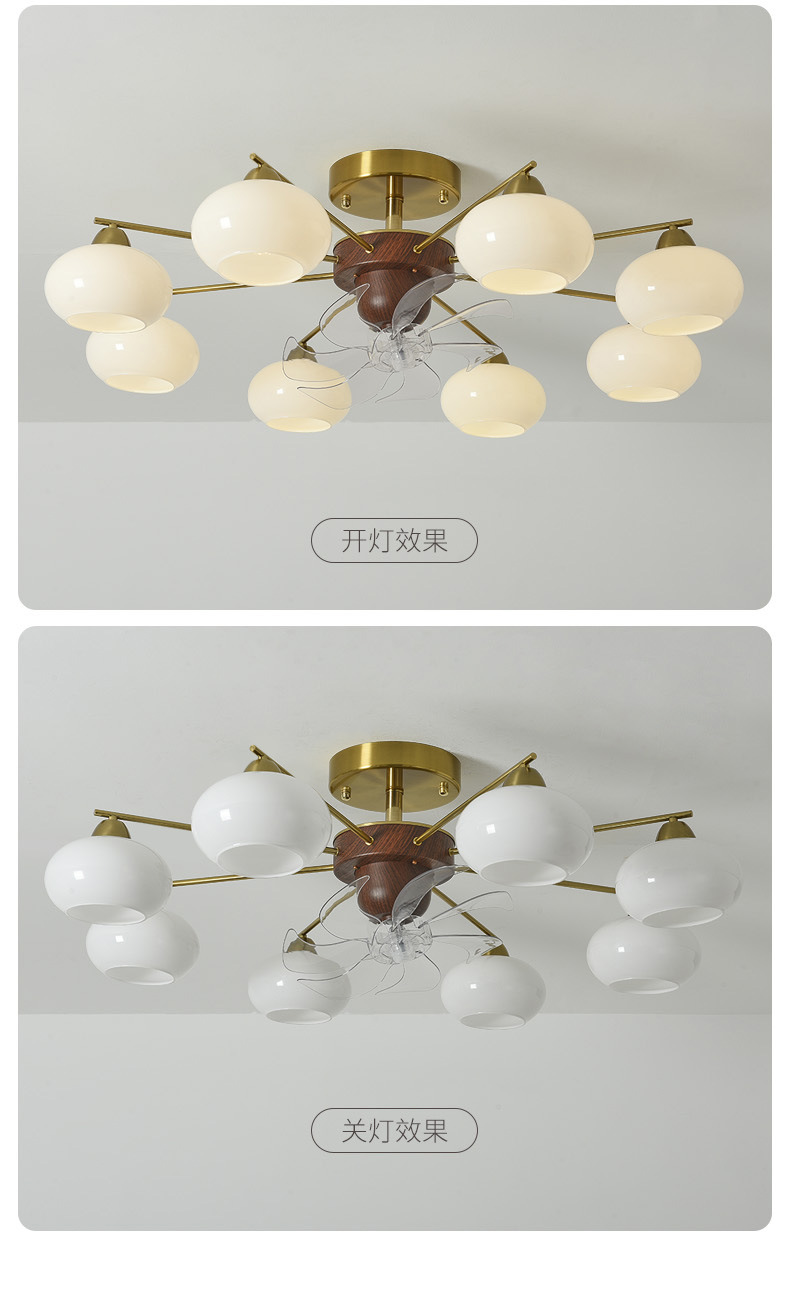 Estilo antiguo, caqui, sala de estar, techo, sacudiendo la cabeza, ventilador, nueva lámpara de vidrio de restaurante de dormitorio de estilo crema francés retro