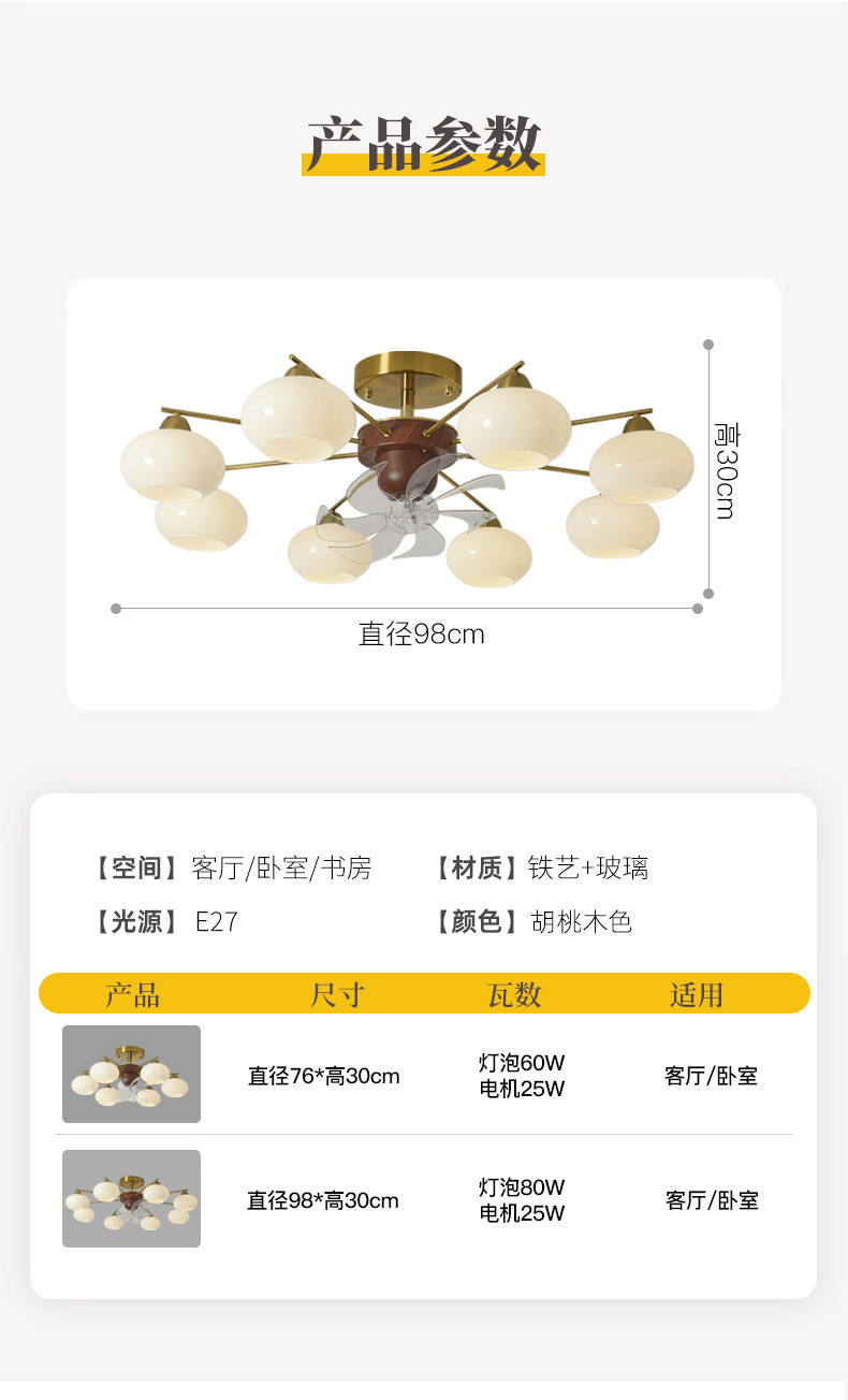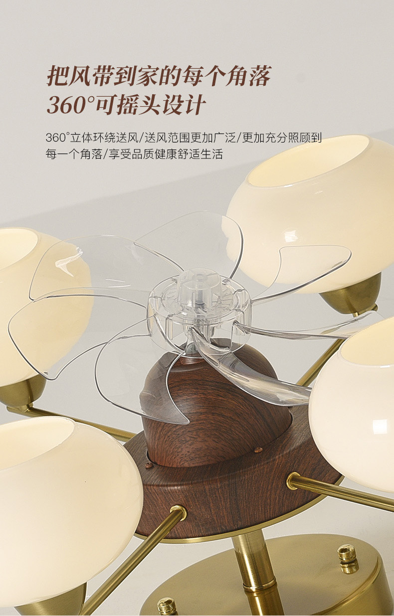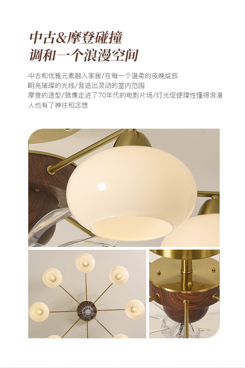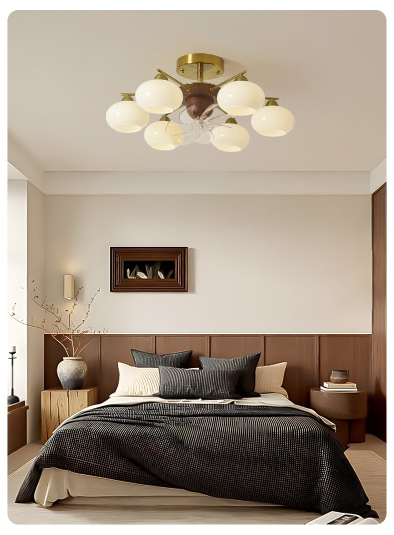Estilo antiguo, caqui, sala de estar, techo, sacudiendo la cabeza, ventilador, nueva lámpara de vidrio de restaurante de dormitorio de estilo crema francés retro