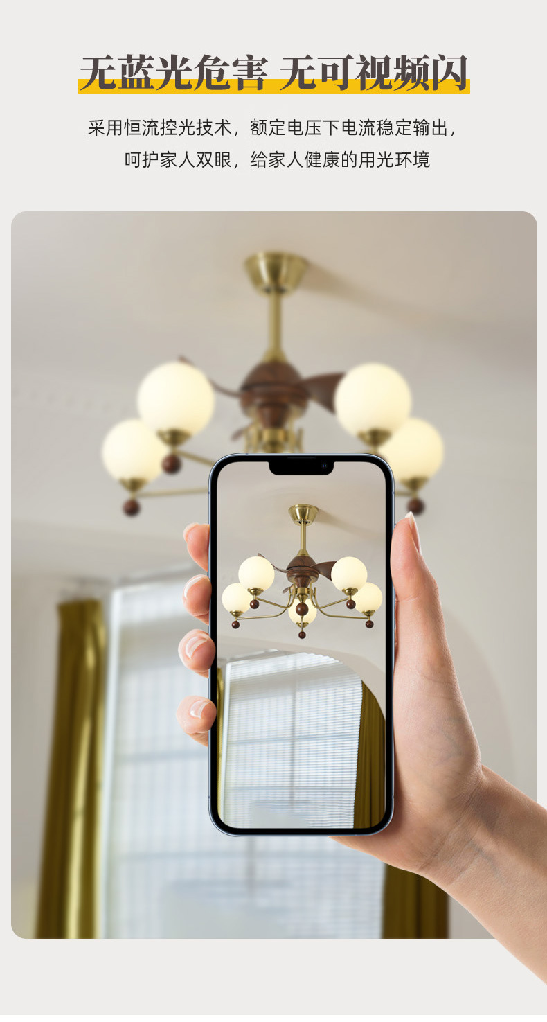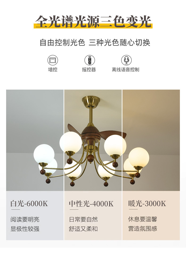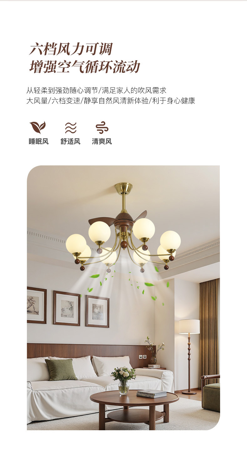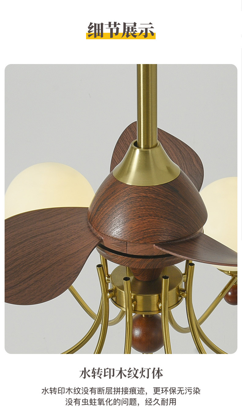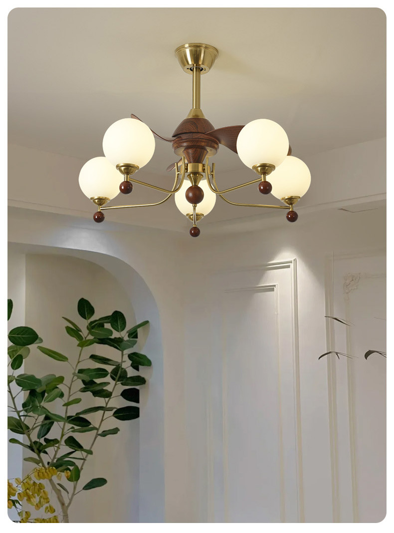 Lámpara de ventilador de techo de sala de estar de estilo antiguo, diseñador retro francés, lámpara de restaurante de frijol mágico, candelabro de ventilador de pasillo de Guangdong Zhongshan