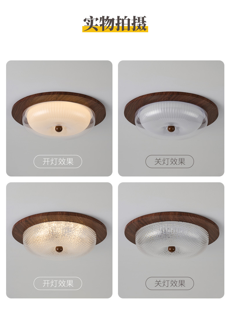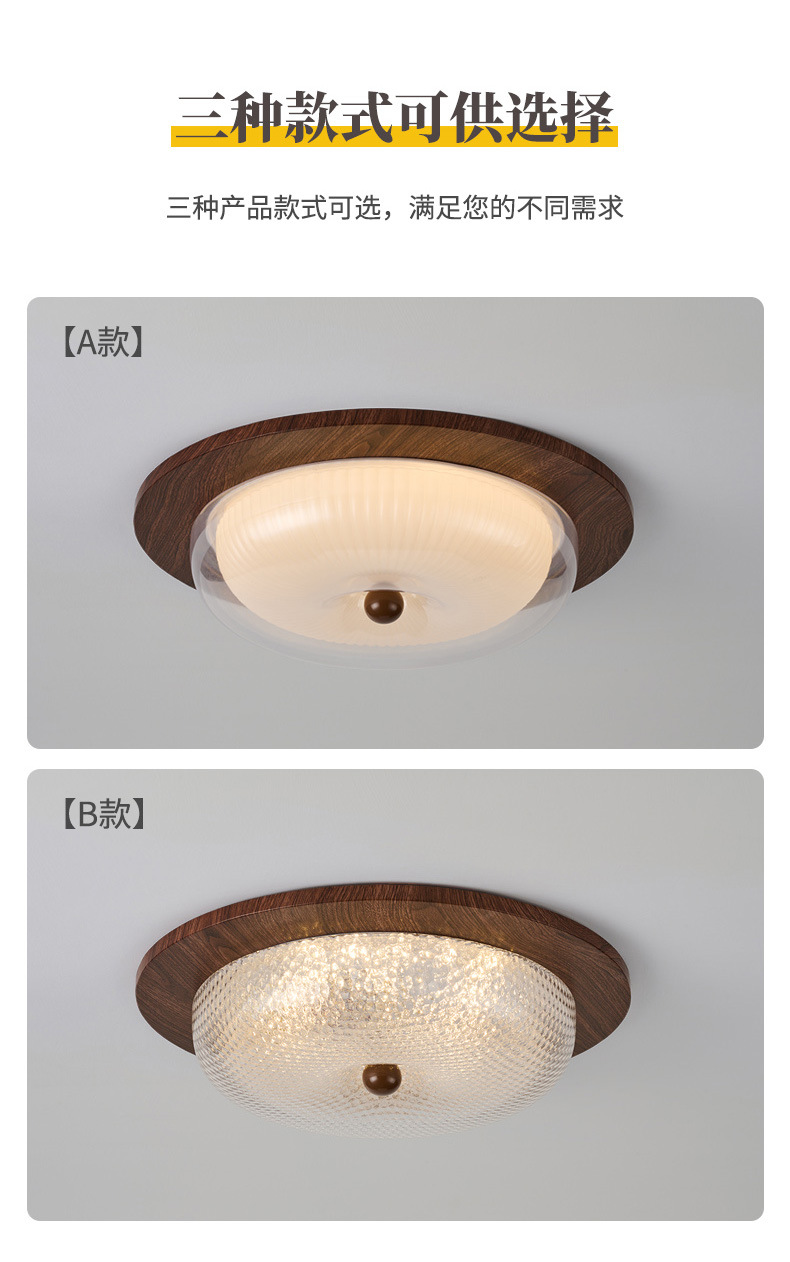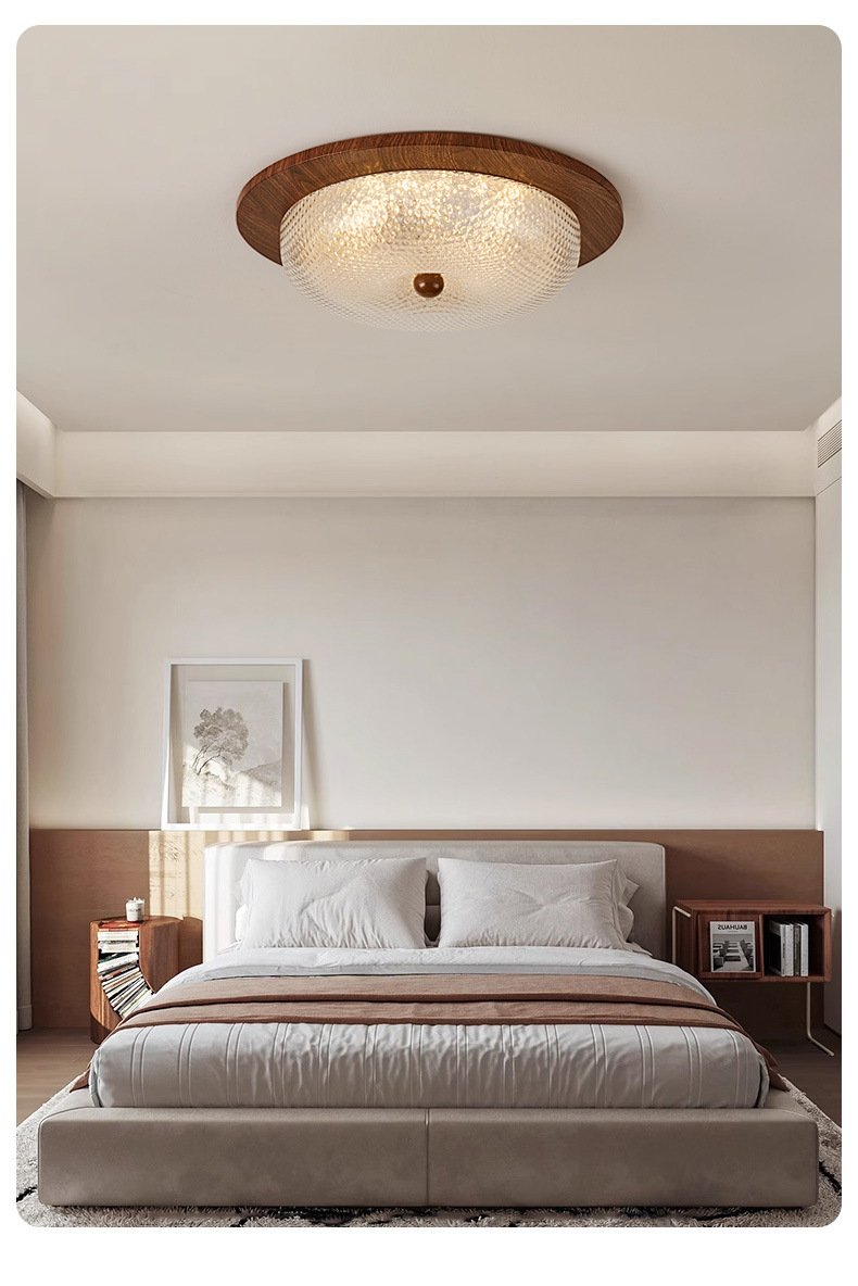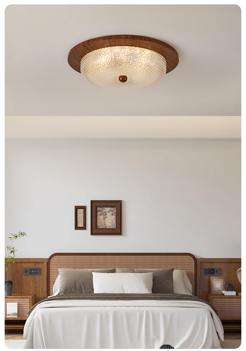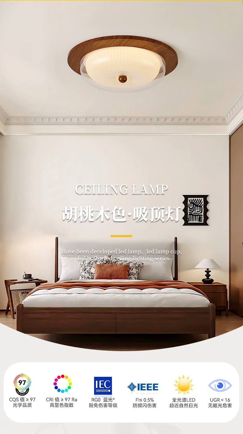 2025 nuevo estilo francés de estilo medio dormitorio lámpara de techo estudio protección ocular color nogal madera maciza lámpara de vidrio de alta calidad