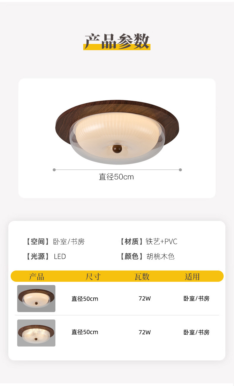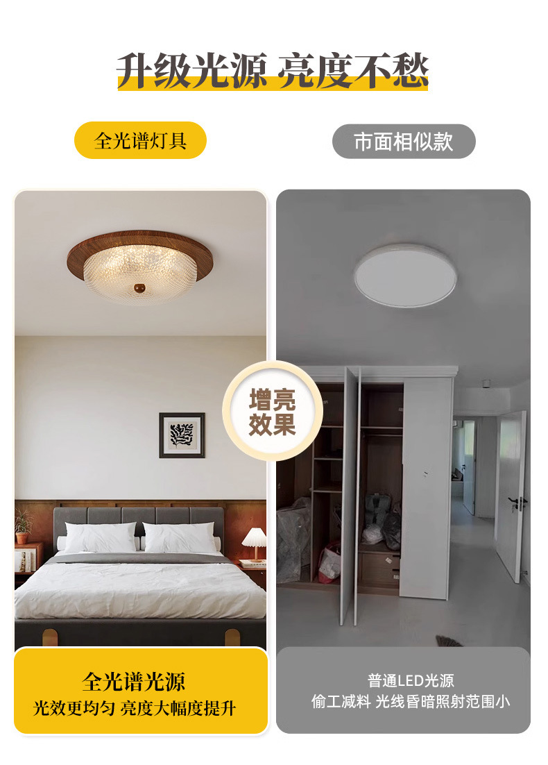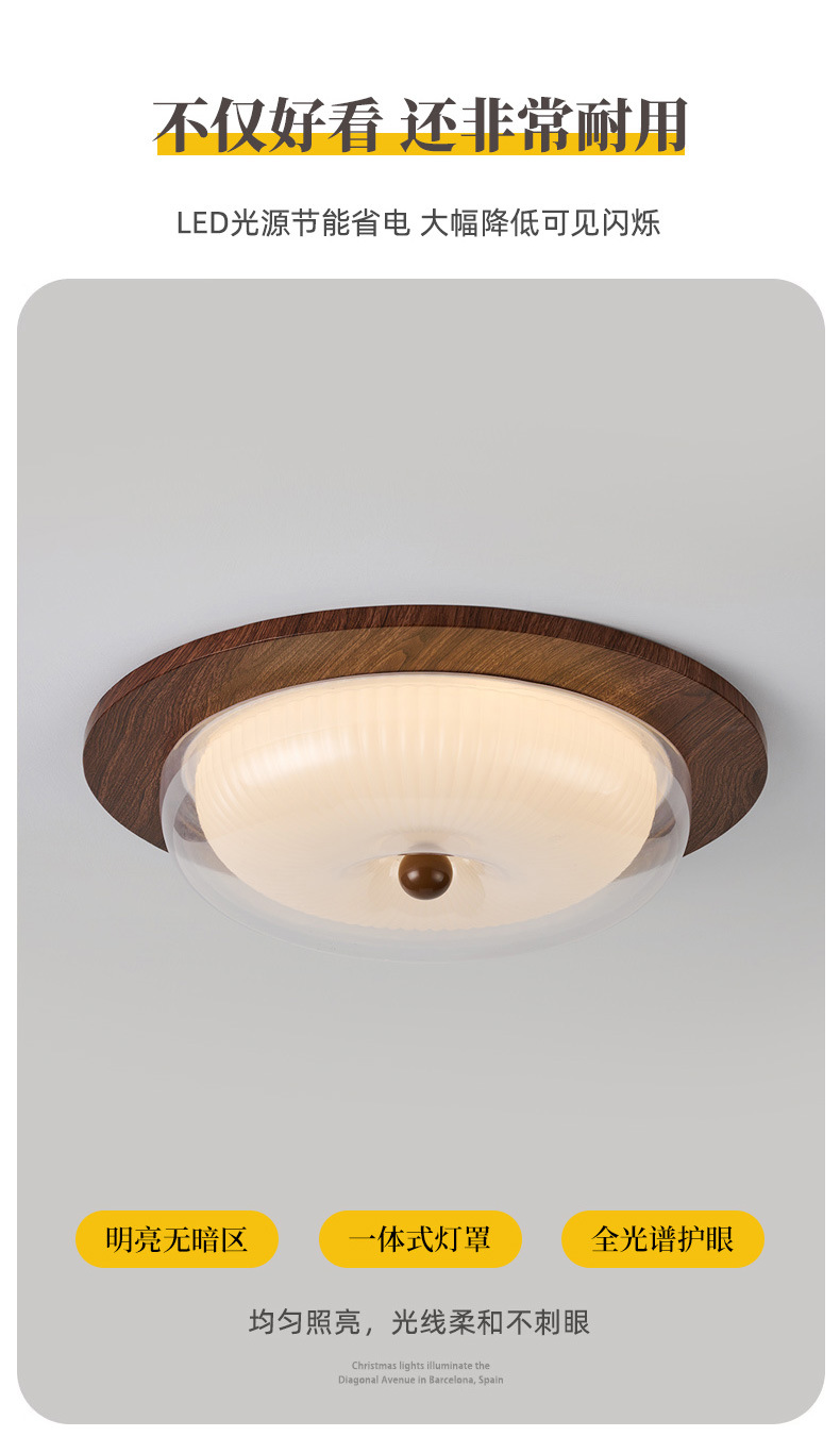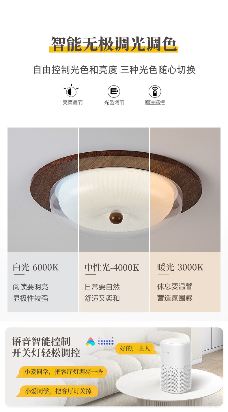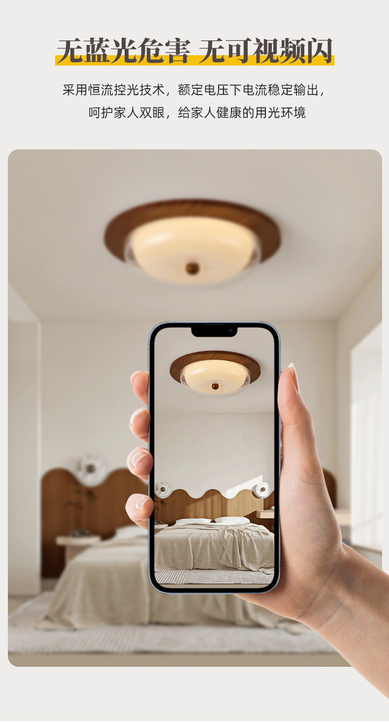 2025 nuevo estilo francés de estilo medio dormitorio lámpara de techo estudio protección ocular color nogal madera maciza lámpara de vidrio de alta calidad