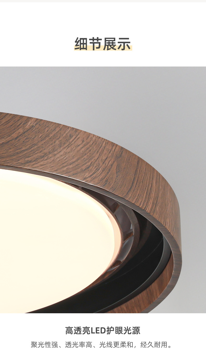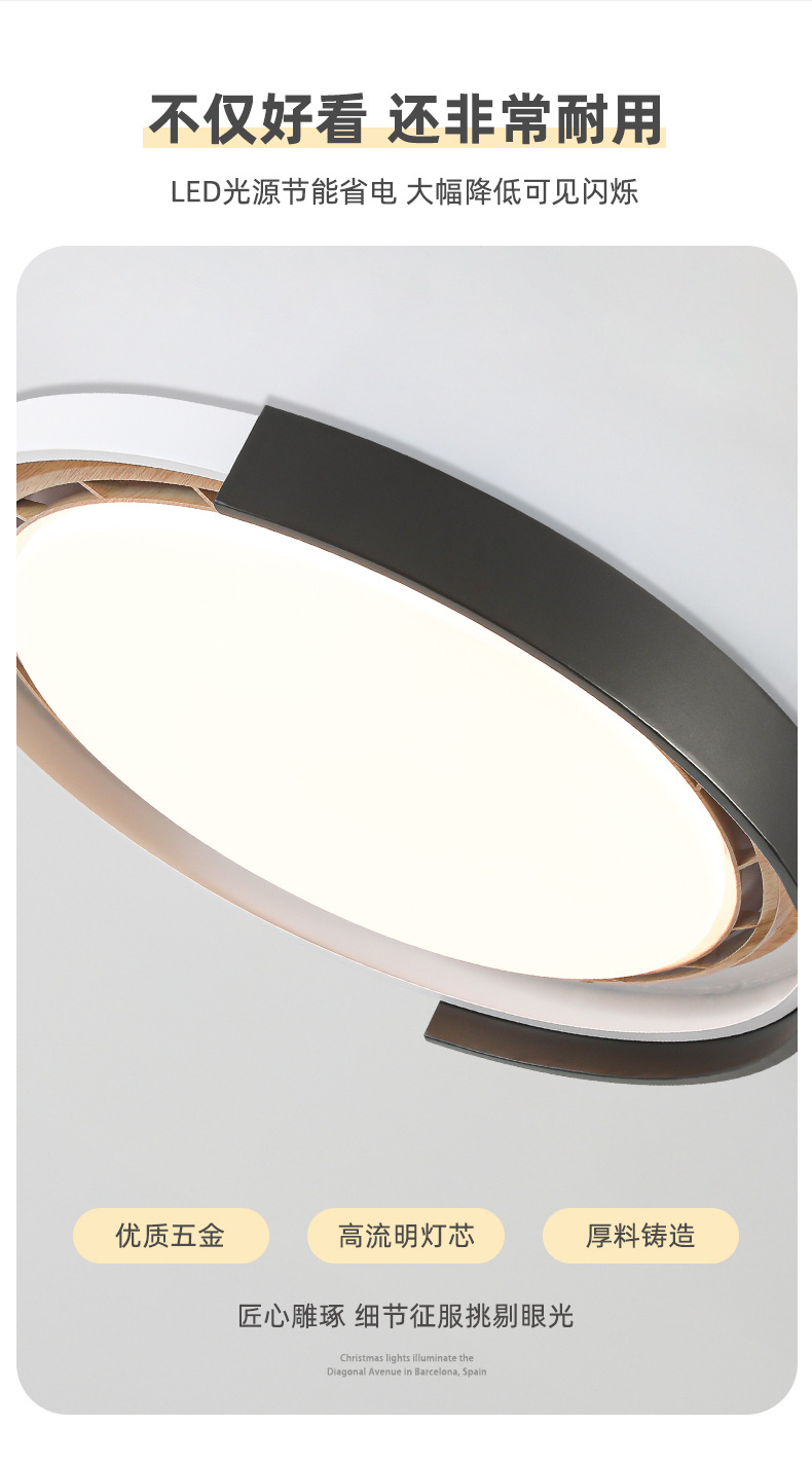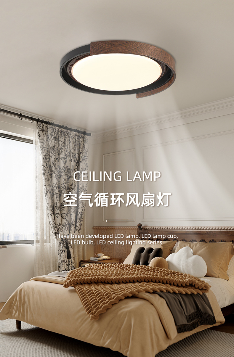 Luz de ventilador sin hoja de grano de madera de nogal, lámpara de techo de dormitorio minimalista, lámpara de ventilador de techo de estudio de dormitorio principal invisible minimalista moderna