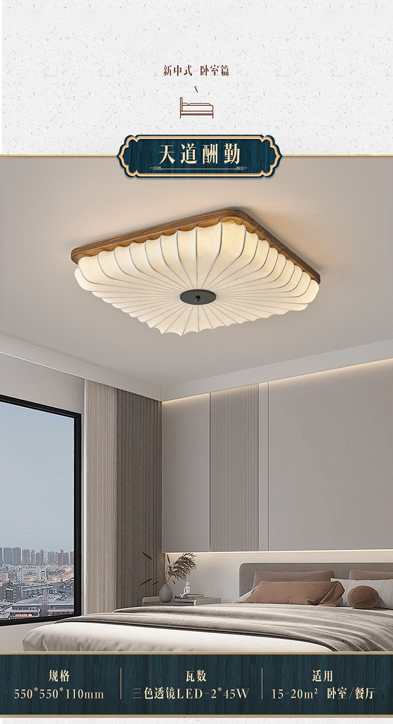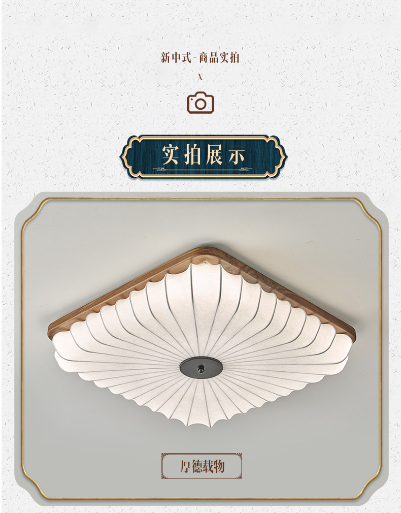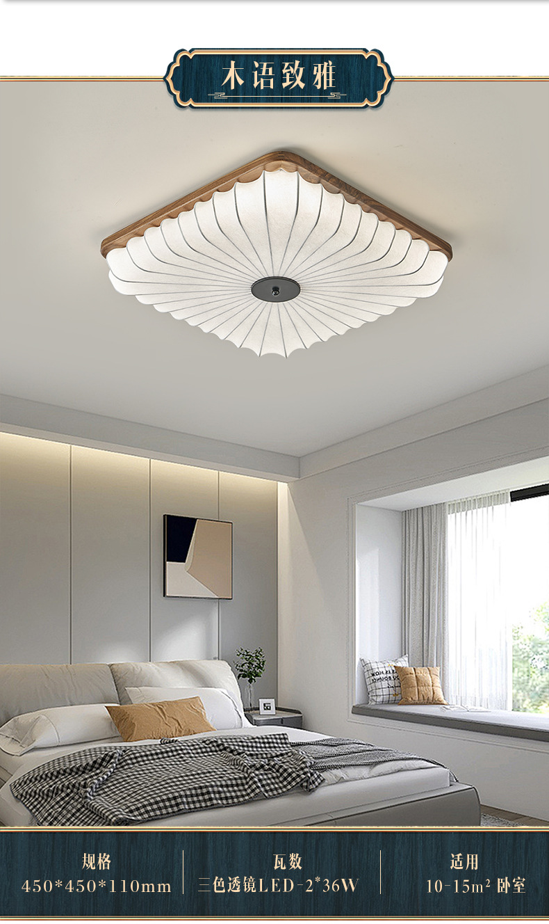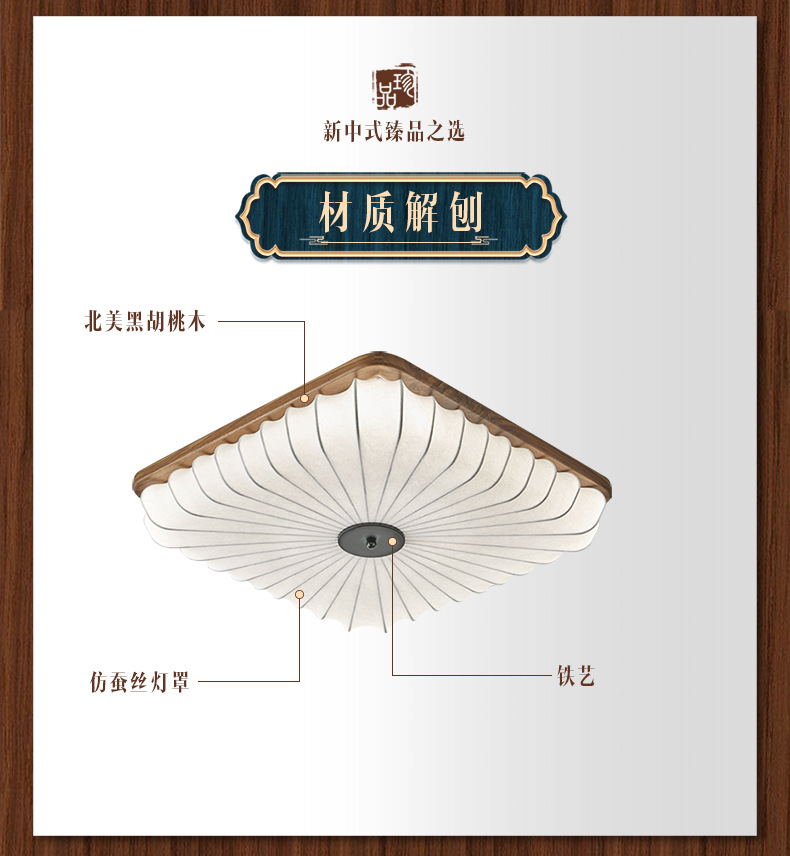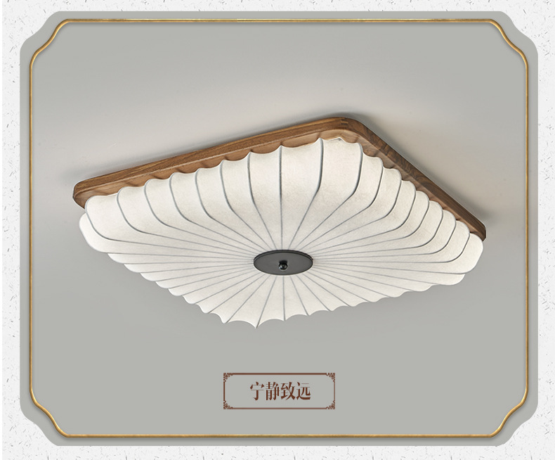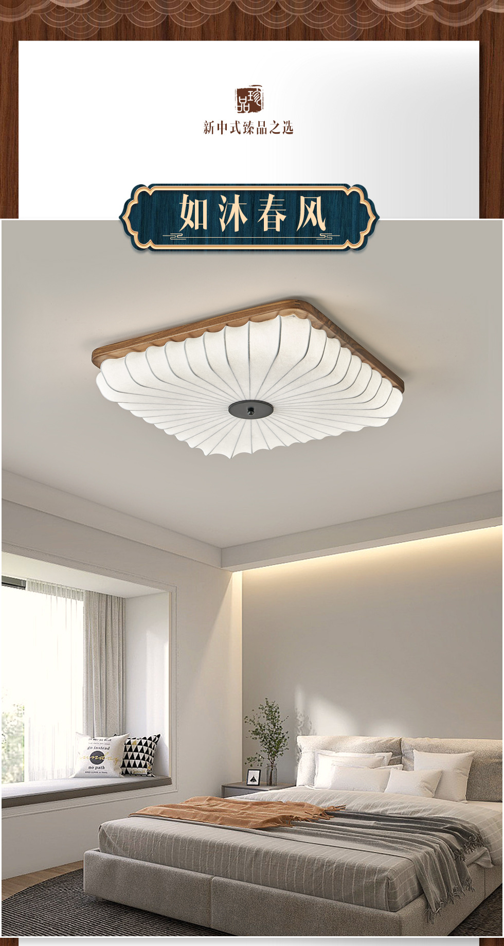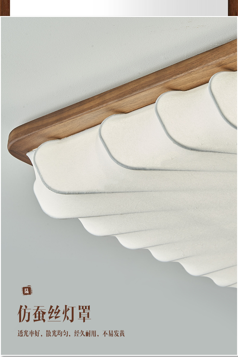 Nueva lámpara de dormitorio de nogal negro, tapa de seda de imitación, nueva habitación de libro de dormitorio principal retro chino, lámpara de techo led