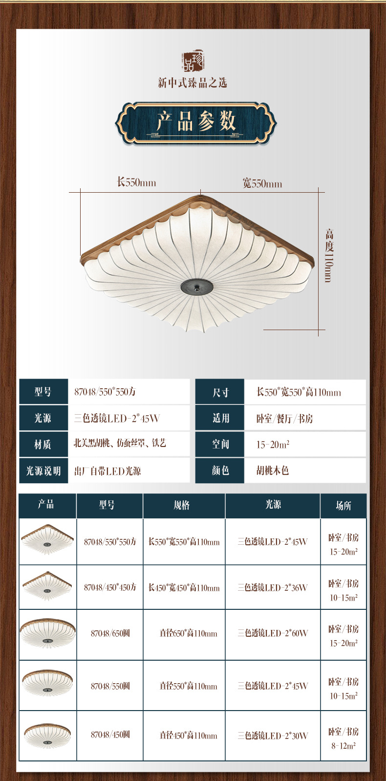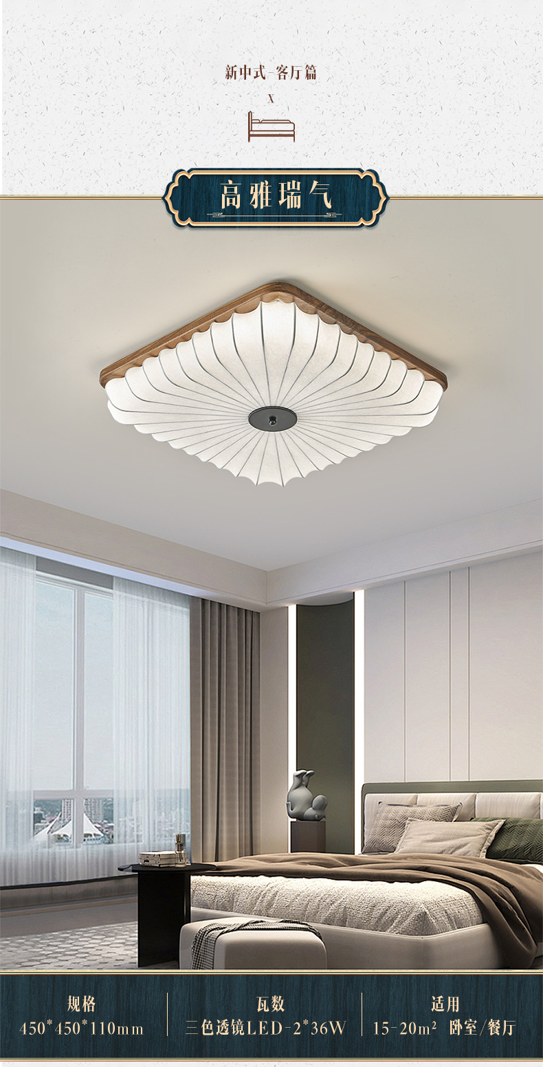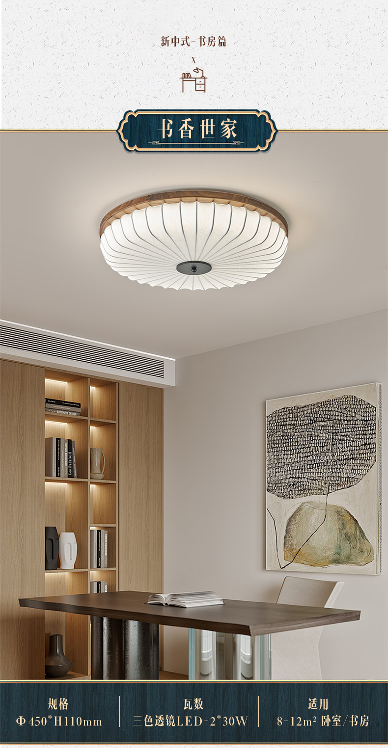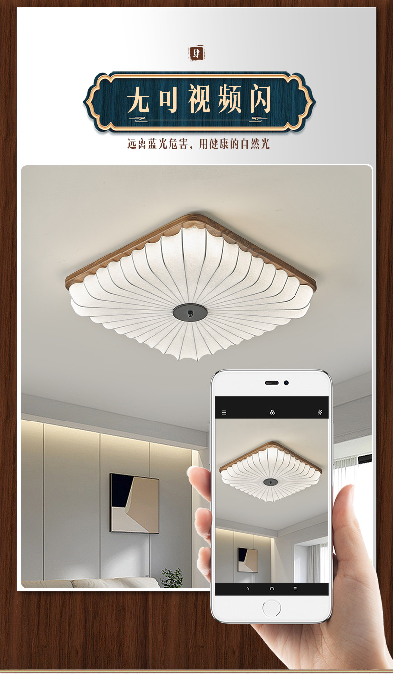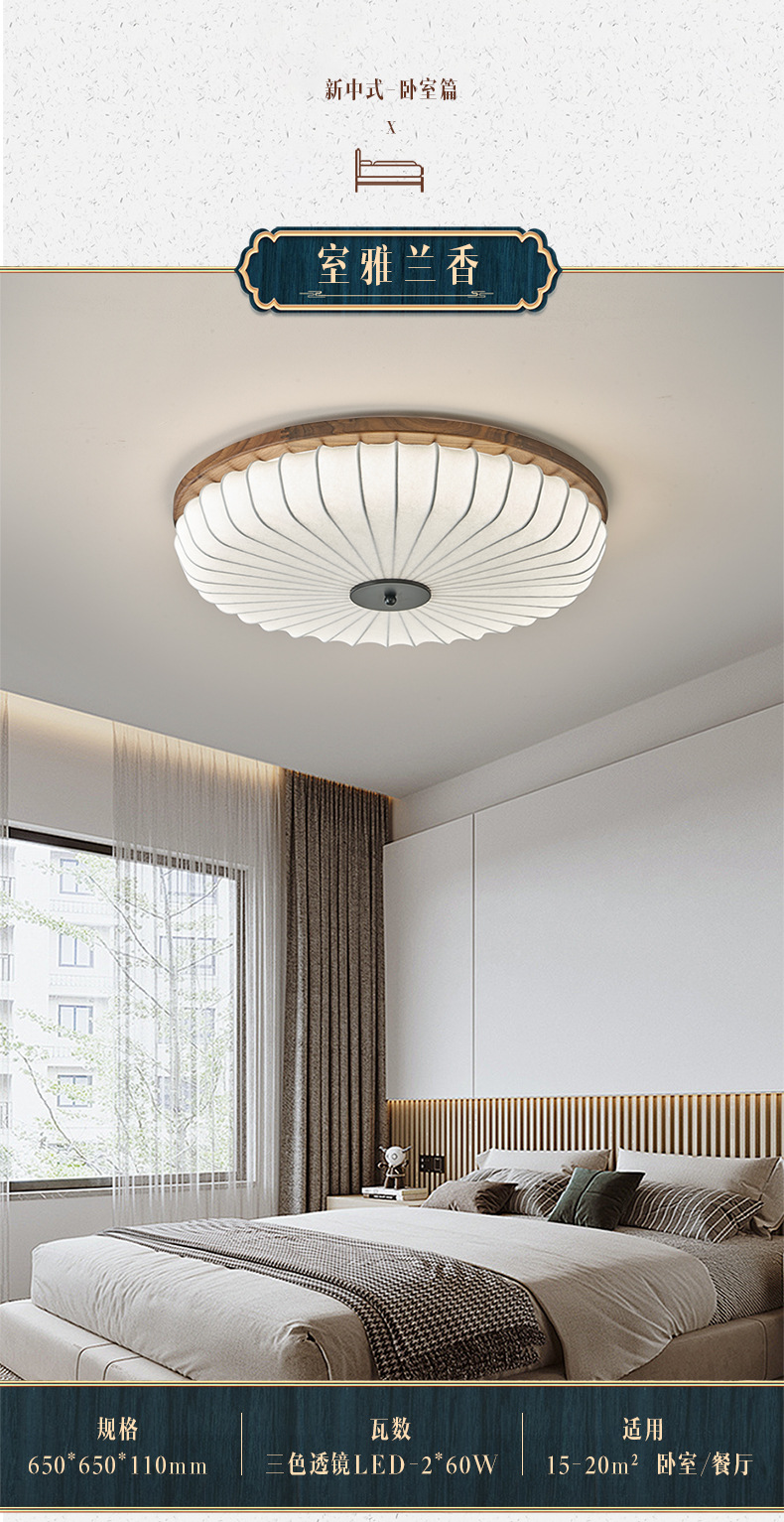 Nueva lámpara de dormitorio de nogal negro, tapa de seda de imitación, nueva habitación de libro de dormitorio principal retro chino, lámpara de techo led