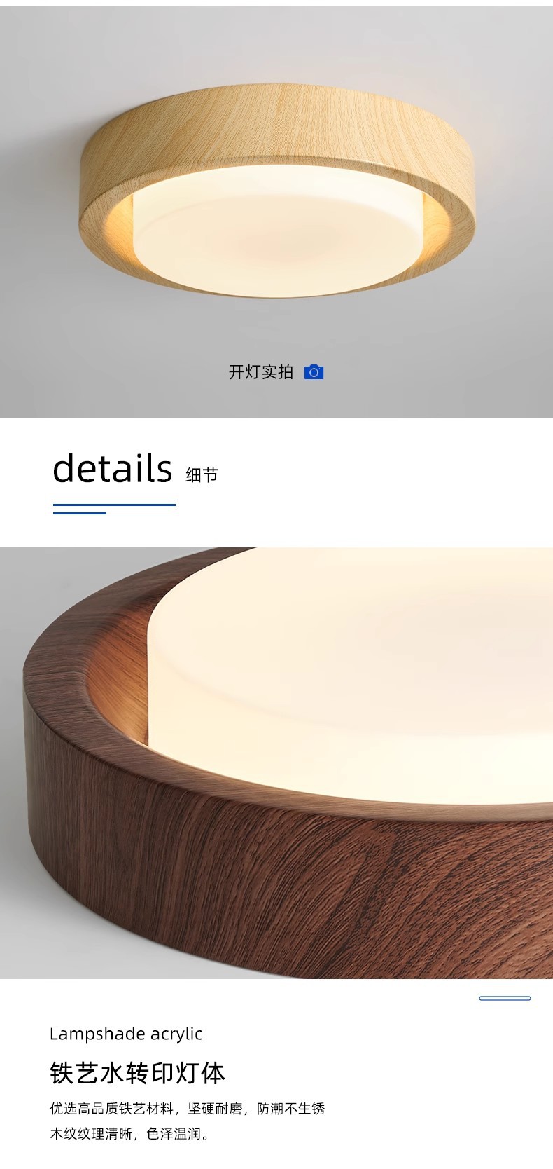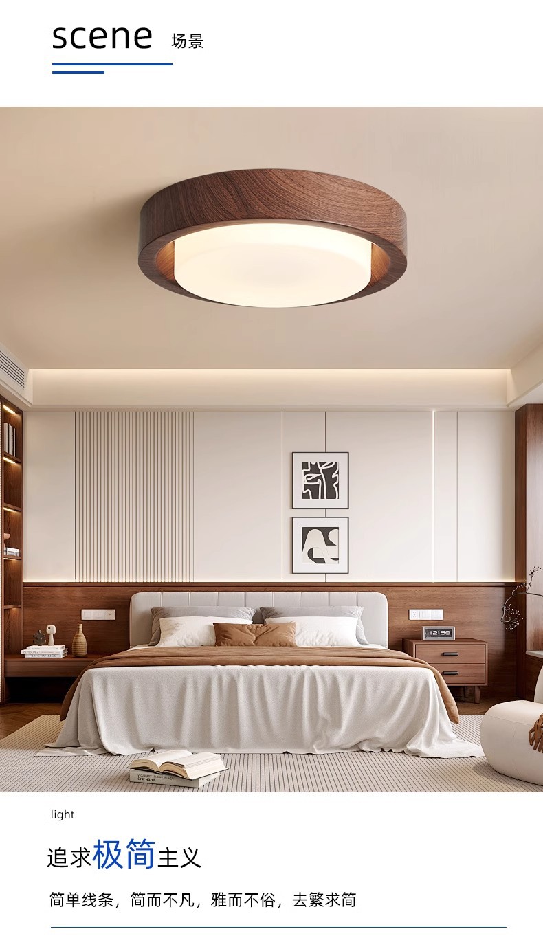 Lámpara de techo de dormitorio, estilo antiguo, pasillo de color nogal retro americano, lámpara de habitación de libro de dormitorio principal, protección ocular de espectro completo, súper brillante