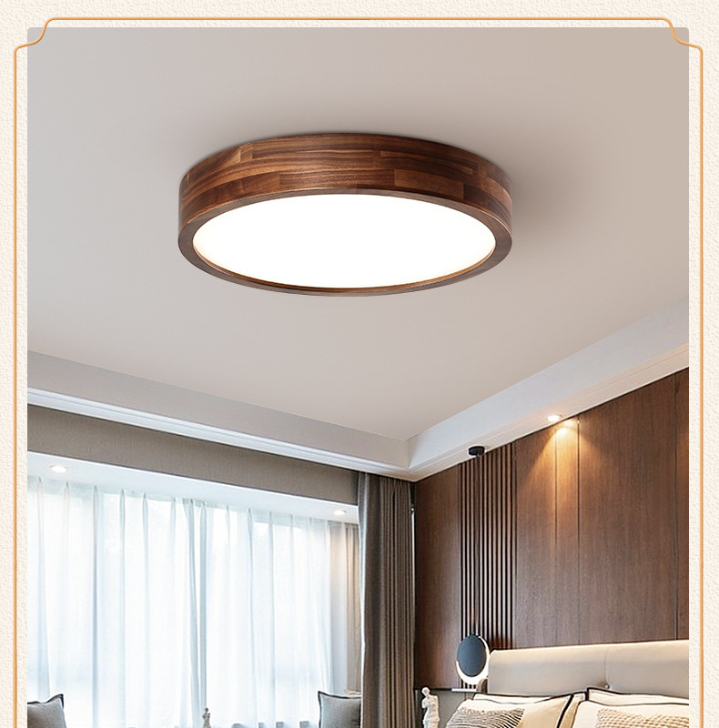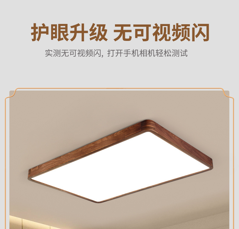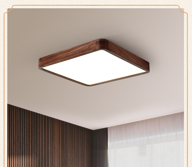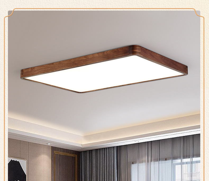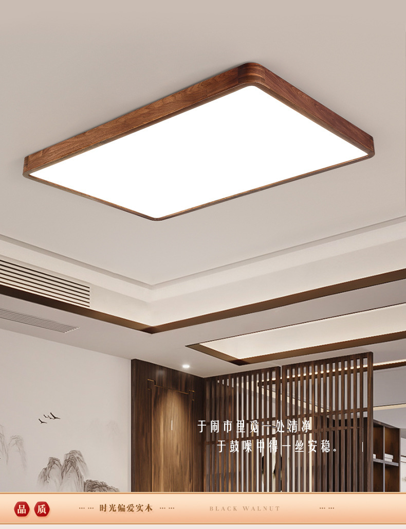 Lámpara de techo de nogal negro Nueva luz de sala de estar de madera maciza de estilo chino Lámpara de dormitorio principal ultrafina de estilo chino Paquete de casa completa